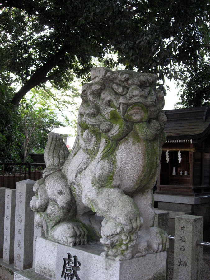 「石園坐多久豆玉神社は、本市唯一の延喜式内社。祭神は建玉依彦命、建玉依姫命の二坐を祀る。本社が安寧天皇片塩浮孔宮跡と伝承されるのは、近くの三倉堂池から発掘された土器、木棺、埴輪、七鈴鏡などにより、弥生式時代に続く古代農耕の開拓神として、宮跡と神社の結びつきが考えられる。この神社は、古くから竜王宮と称せられ、近郷の信仰が篤い。」という |