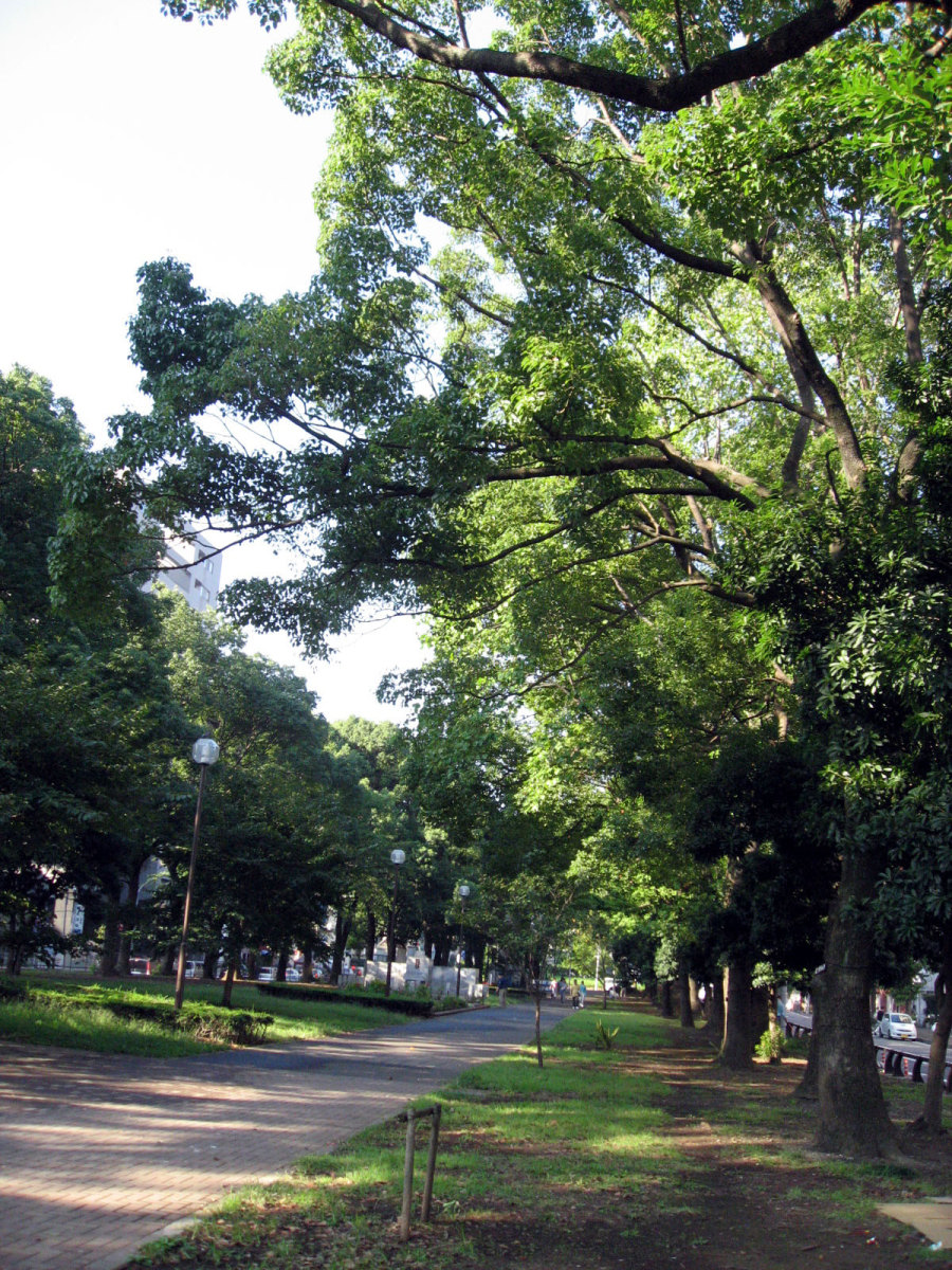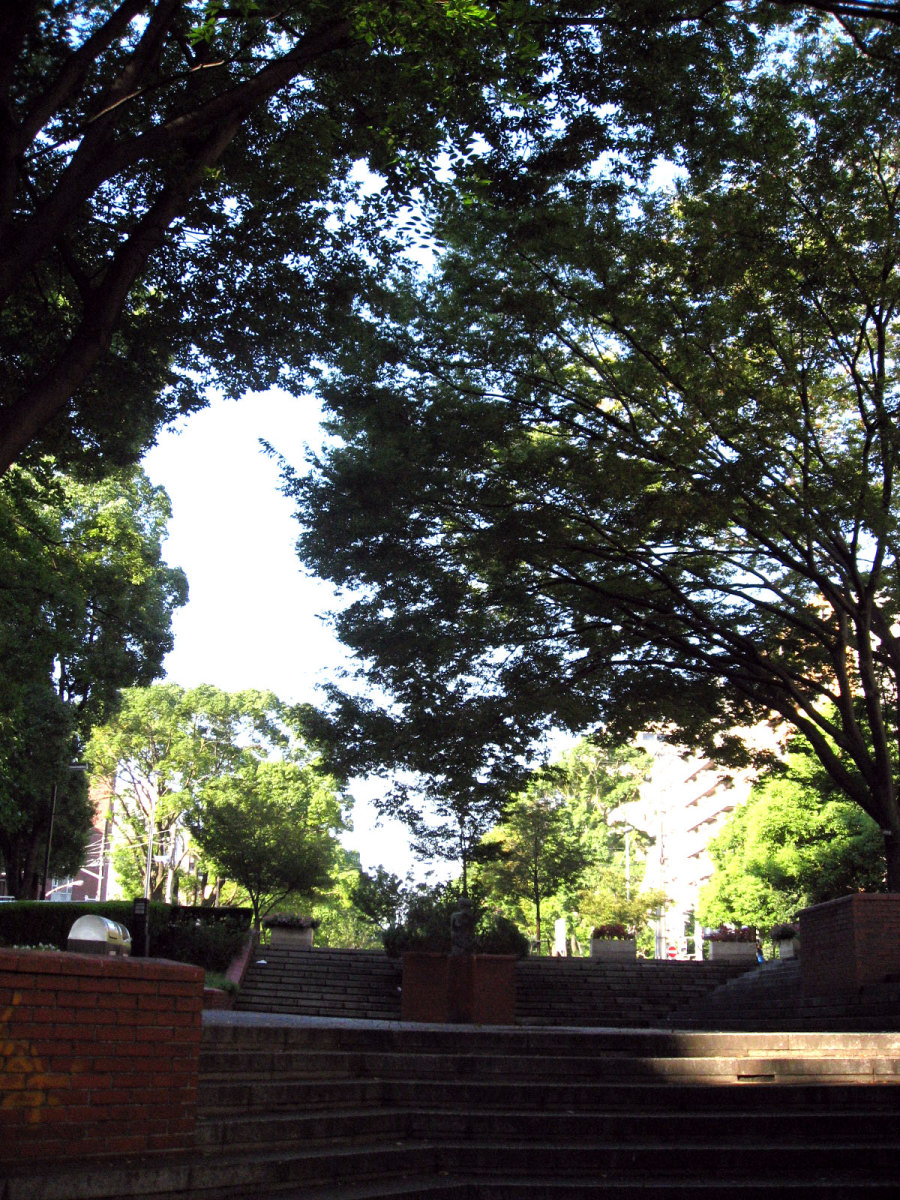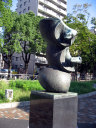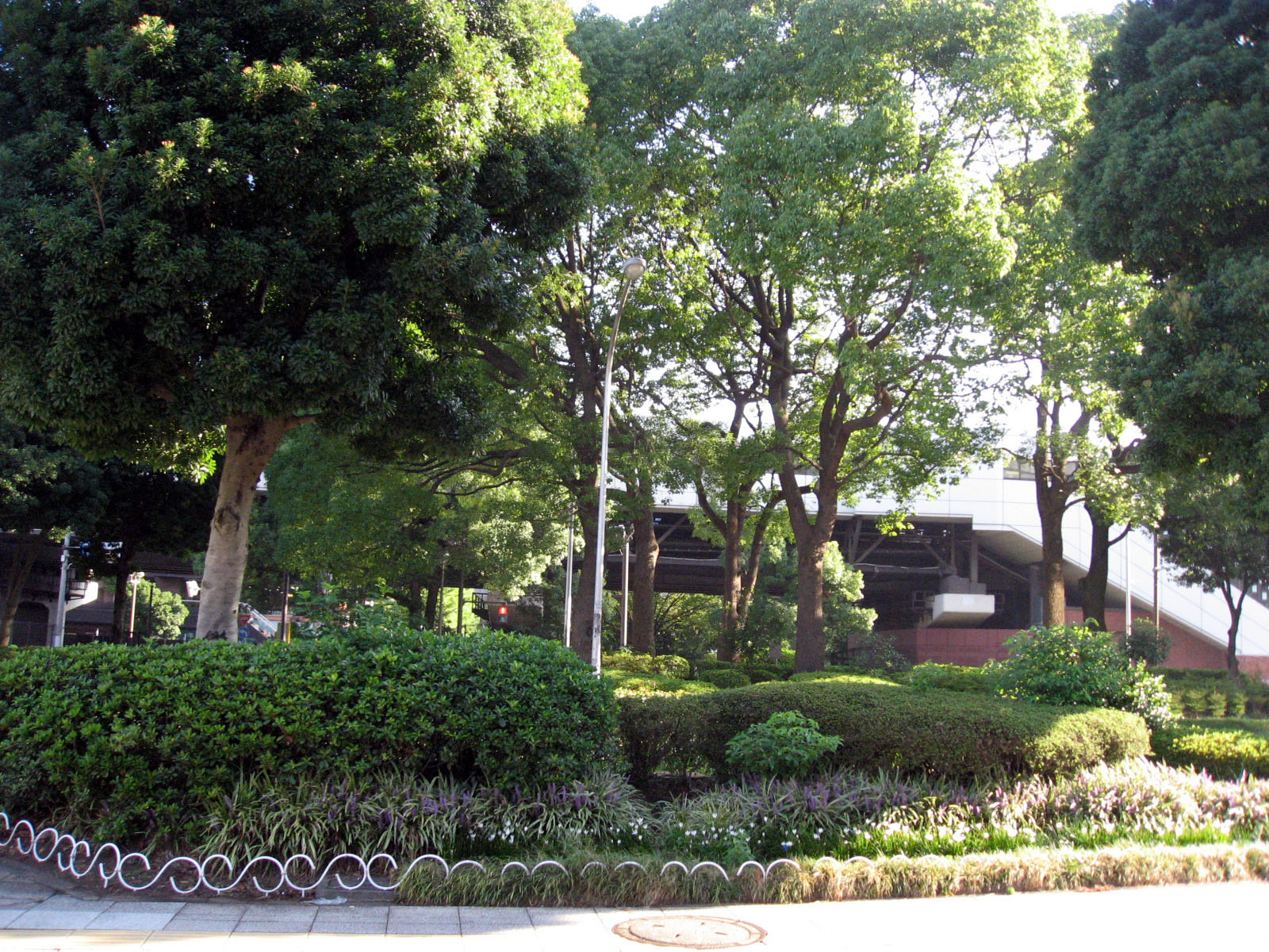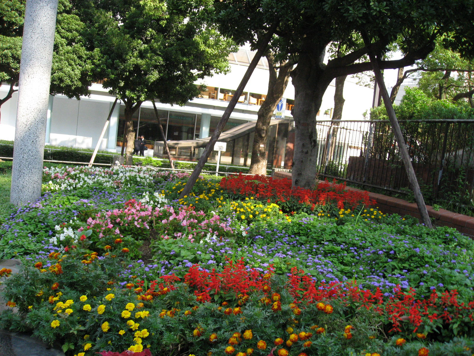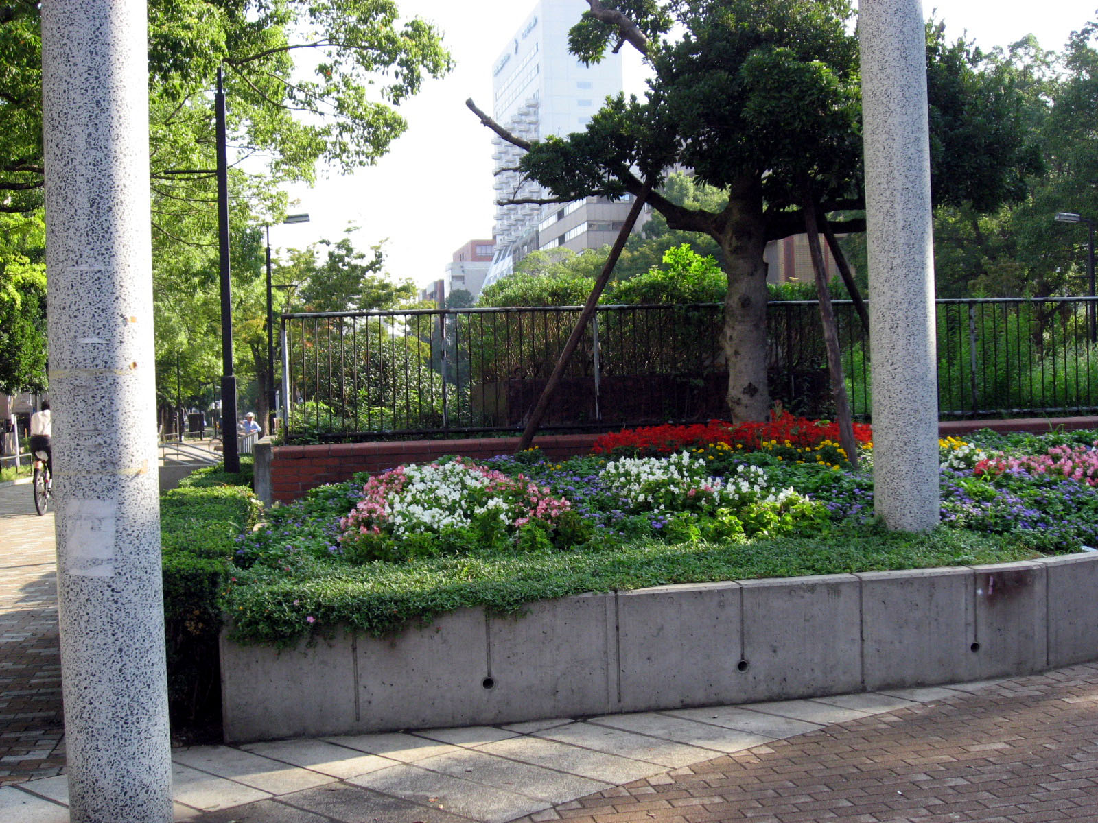 | 関内駅から,地下鉄の阪東橋辺りまで・・・背の高い木々と花々と彫刻の空間が・・・続きます。 元々は運河だったそうです・・・大通り公園です。 |