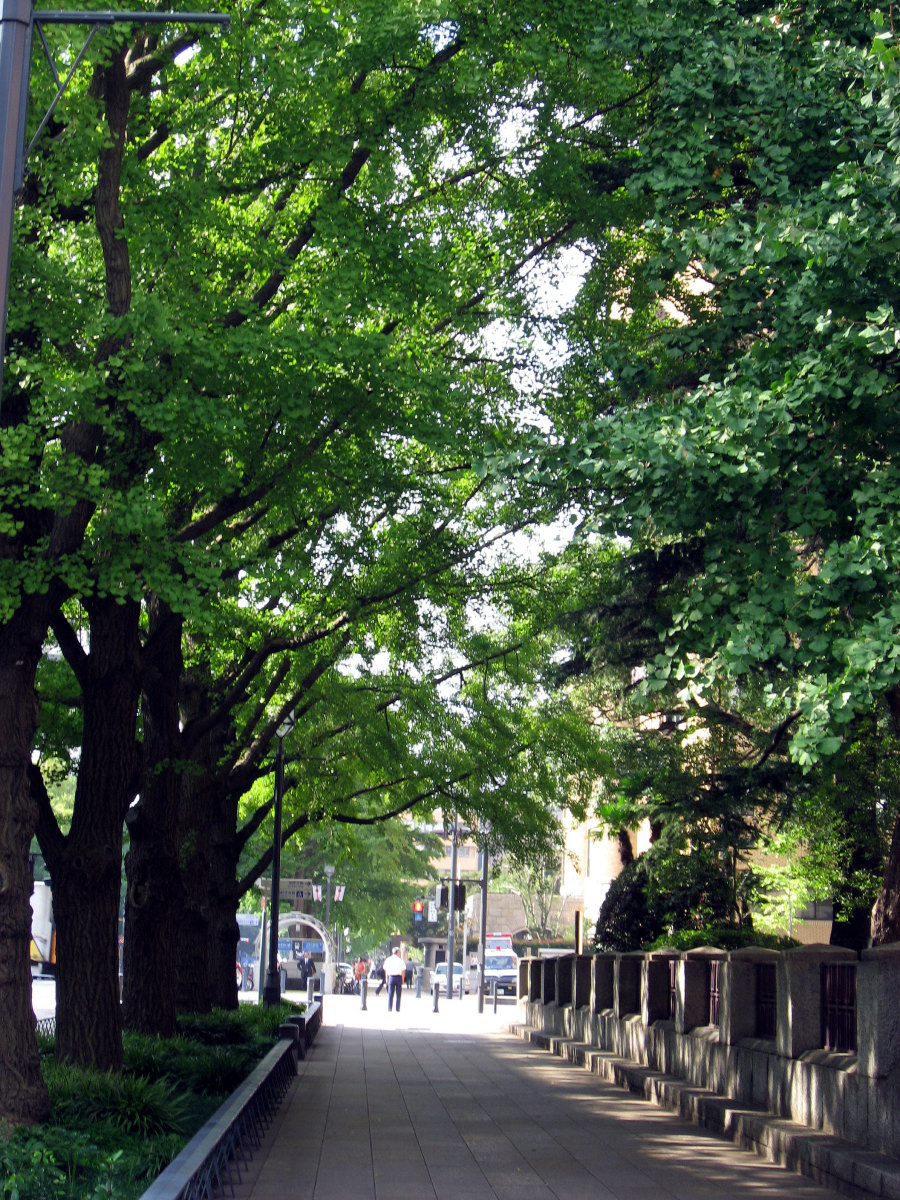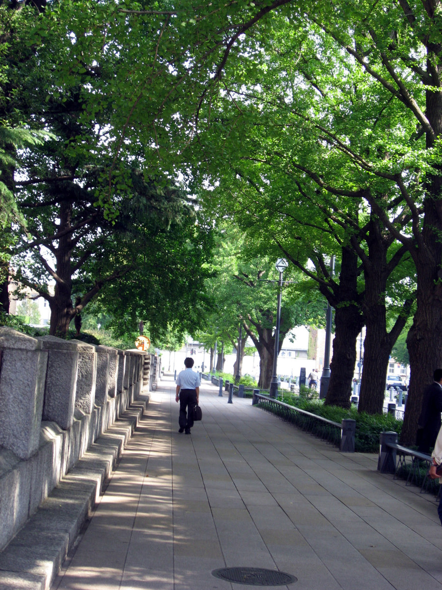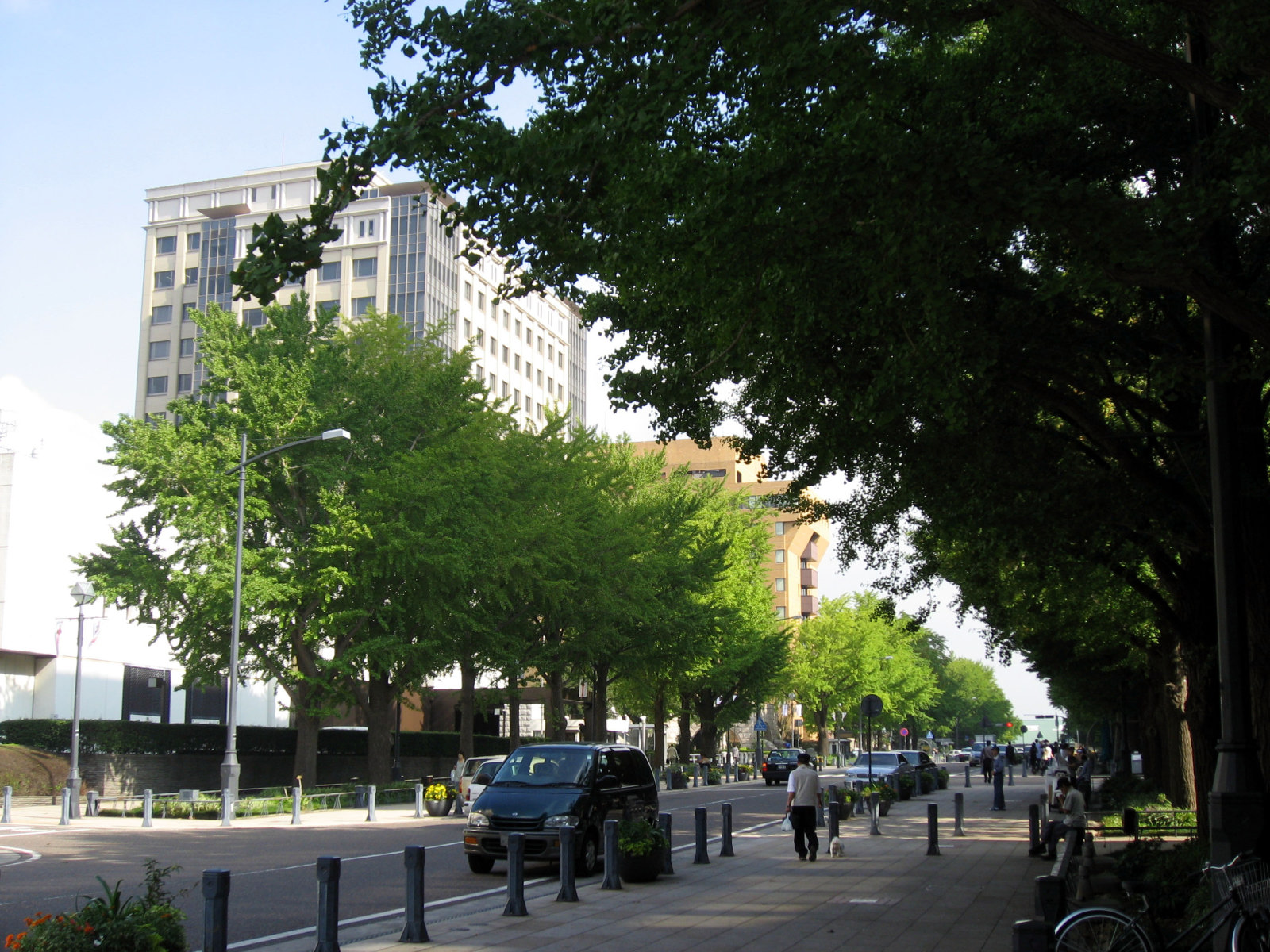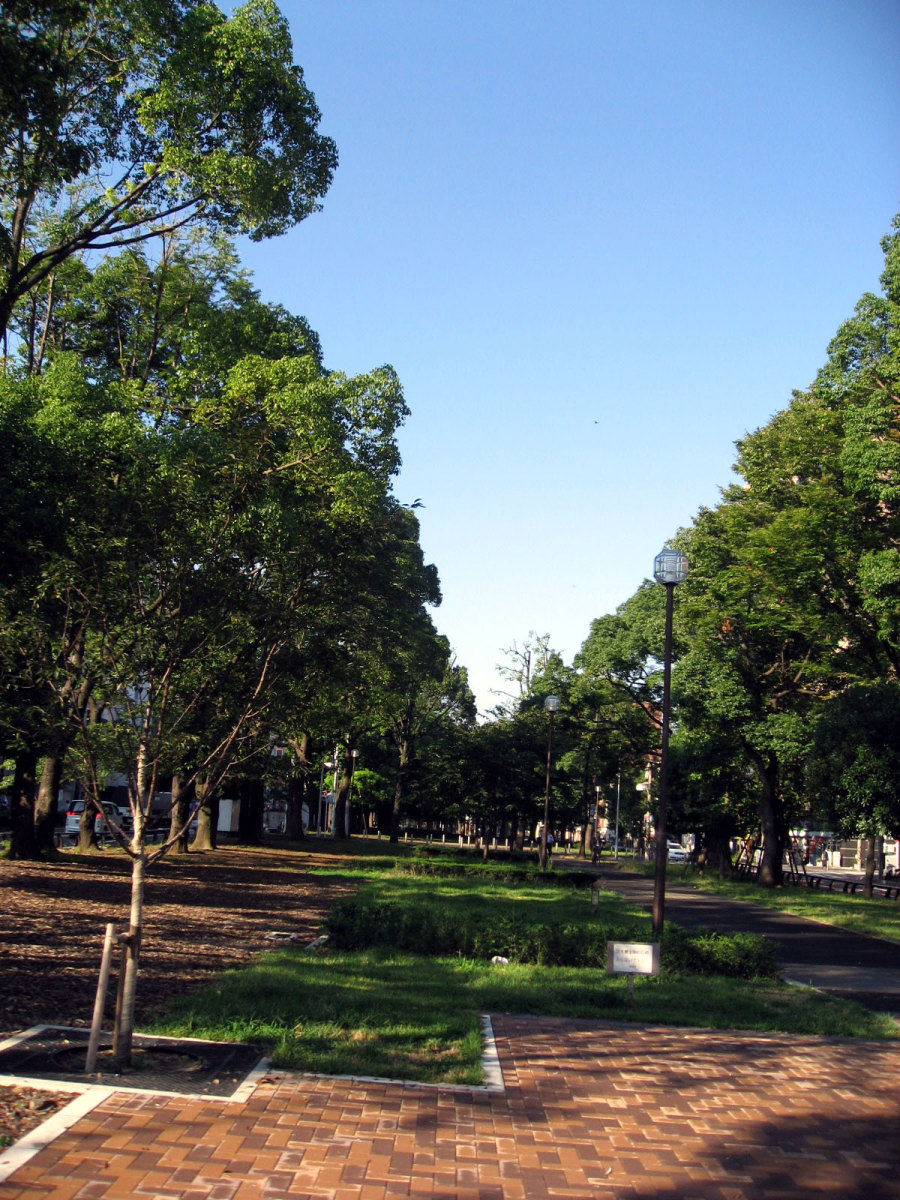 | 関内駅から,地下鉄の阪東橋辺りまで・・・背の高い木々と花々と彫刻の空間が・・・続きます。 元々は運河だったそうです・・・大通り公園です。 |