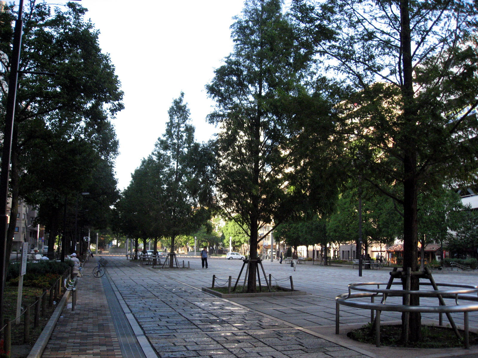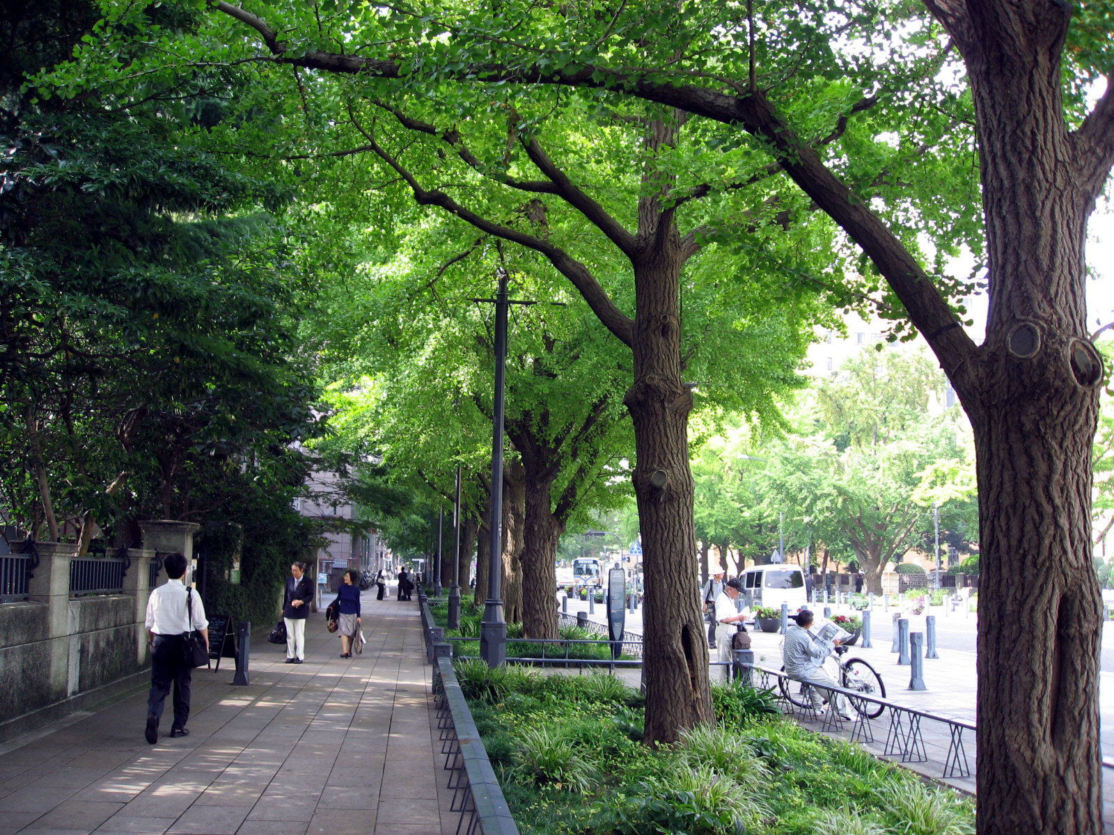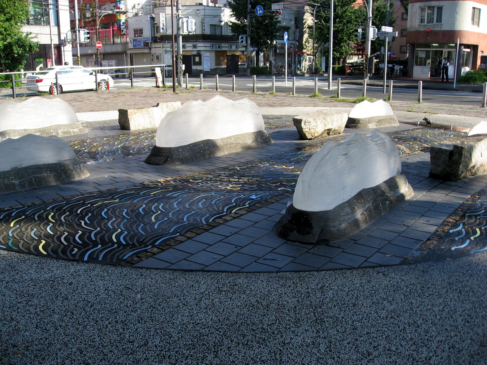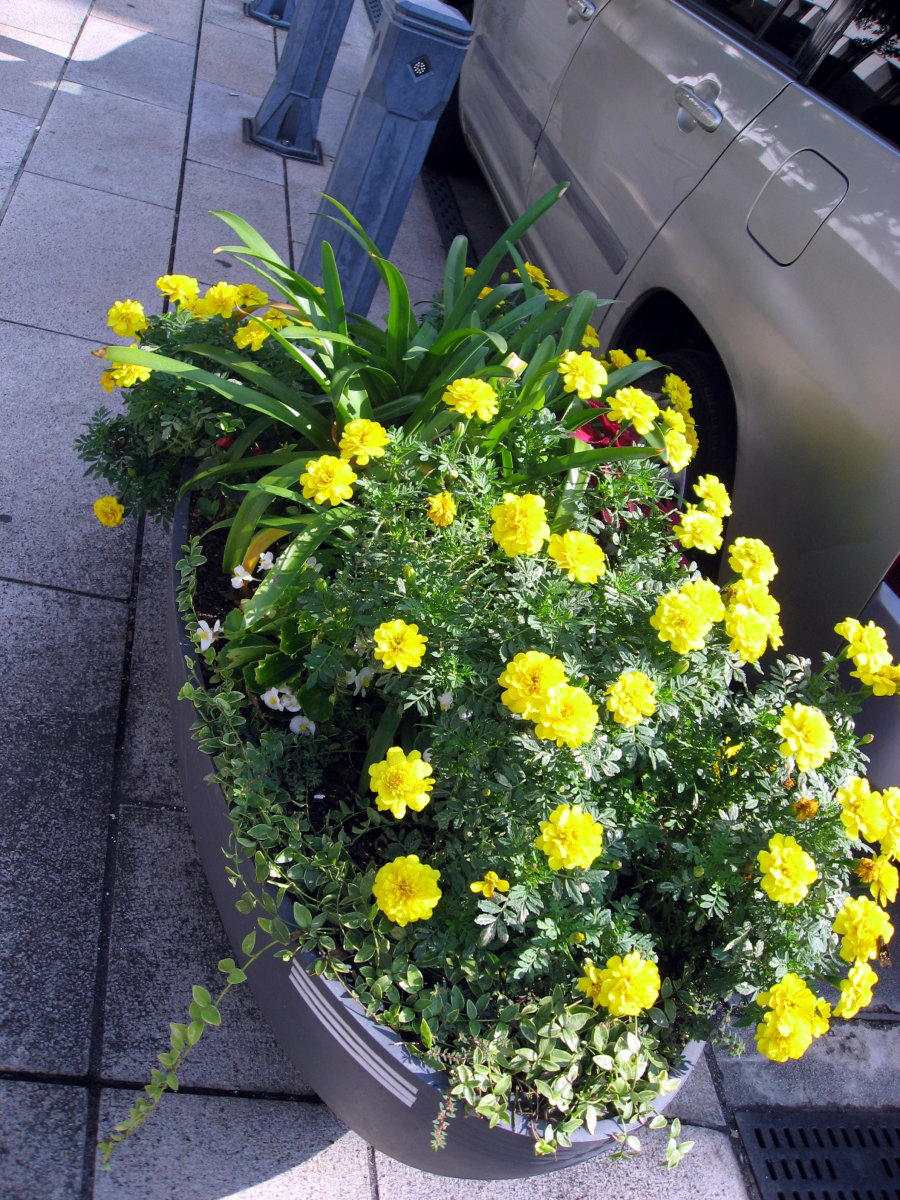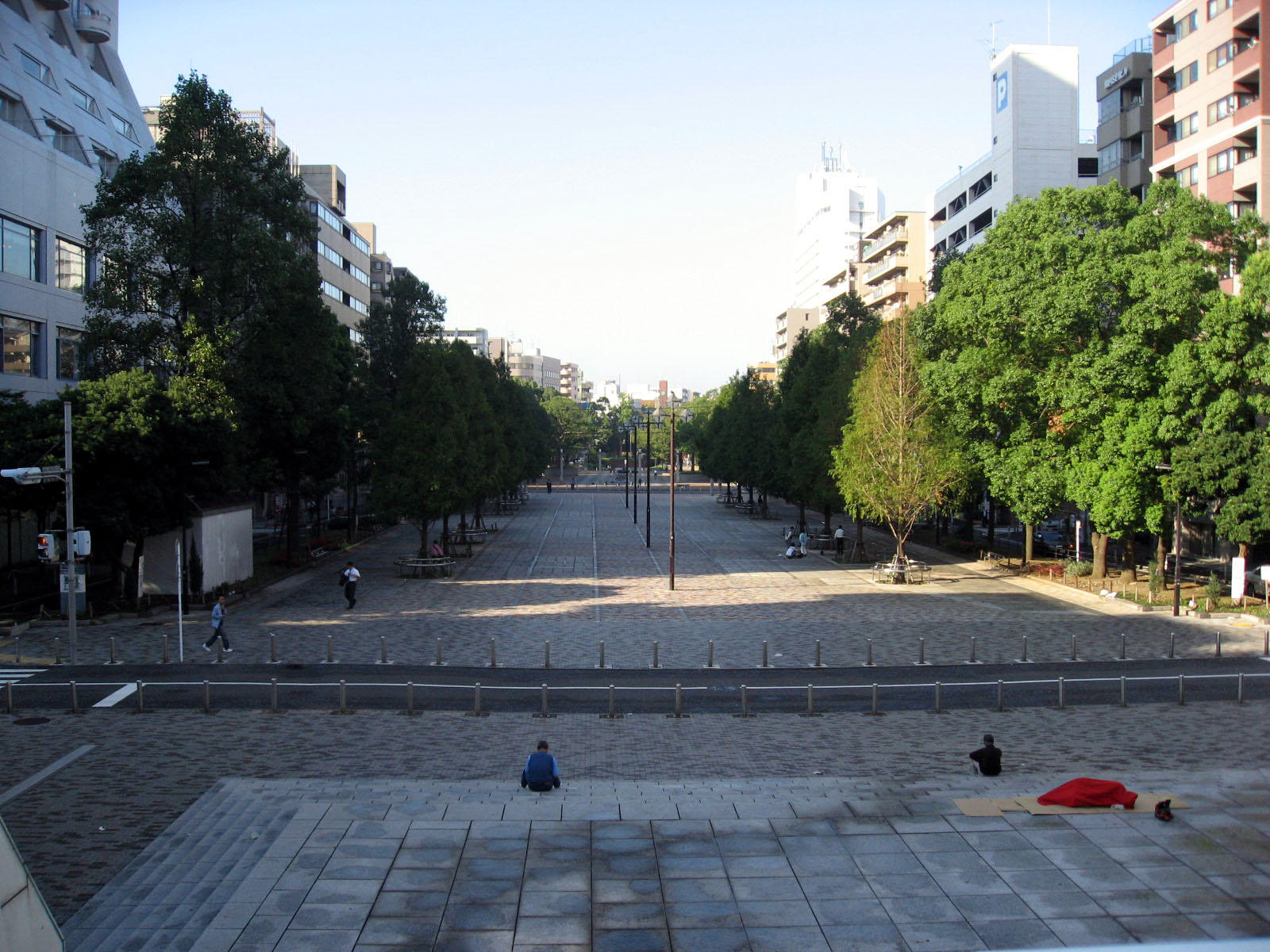| 関内駅から,地下鉄の阪東橋辺りまで・・・背の高い木々と花々と彫刻の空間が・・・続きます。 元々は運河だったそうです・・・大通り公園です。 |