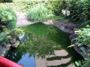 池の中には,本当にぶっとい鯉が,気配がするだけで,口をパクパクさせてやってきてました。 ごめんね,餌を持ってないよぉ・・・。 |