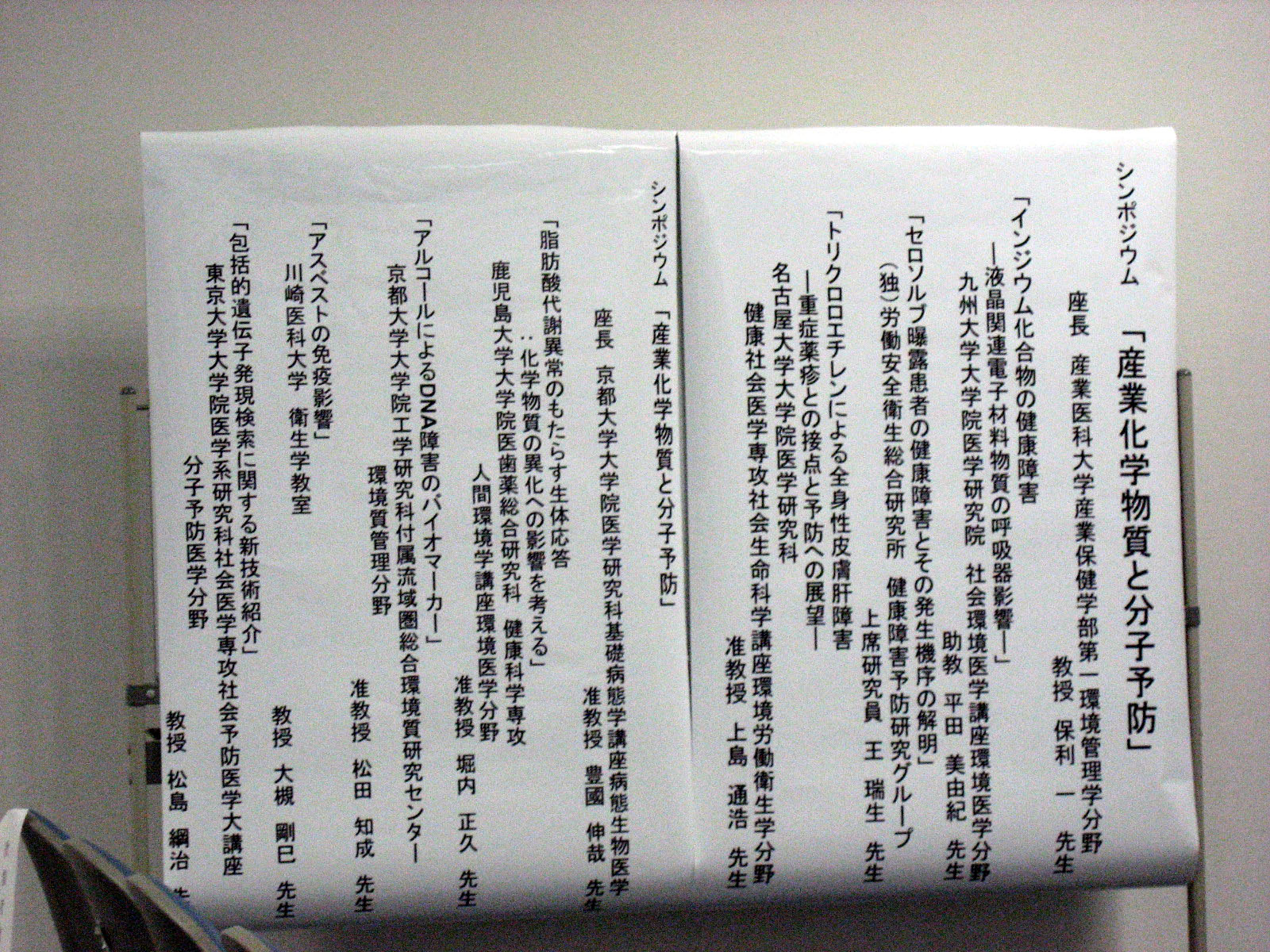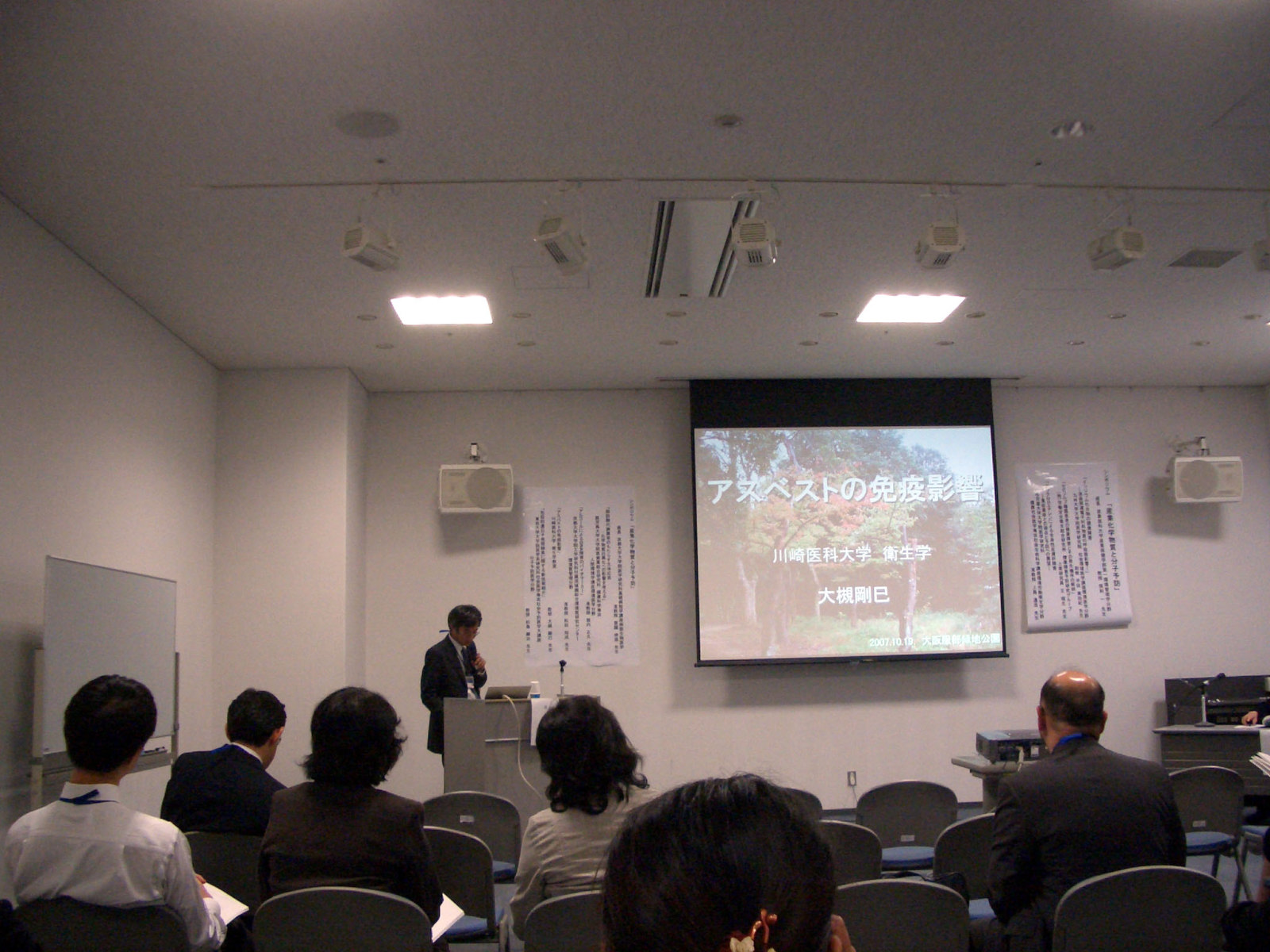 大槻は,本当は2日間参加のつもりだったのですが,3年生の基礎総合演習が入ってしまって,主任でもあるし,土曜日には帰らざるを得ませんでした。それと,丁度,この時期には,日本がん治療学会が京都で行われていて,科学技術振興調整費アスベスト班の臨床所見の全体会議が京都で,19-21時の予定で組まれていました。