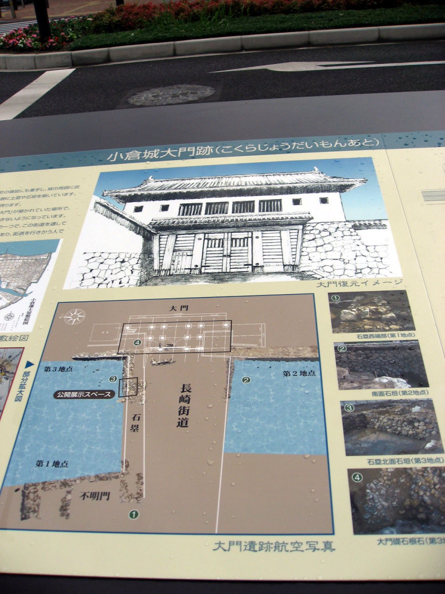 この辺りは,長崎街道・・・・その大門の跡が,舗道の中に埋まって展示されてました。