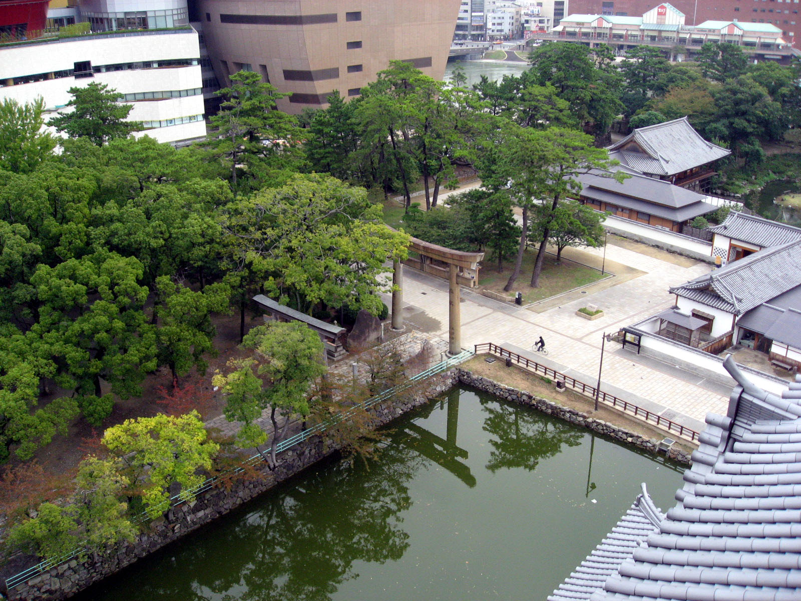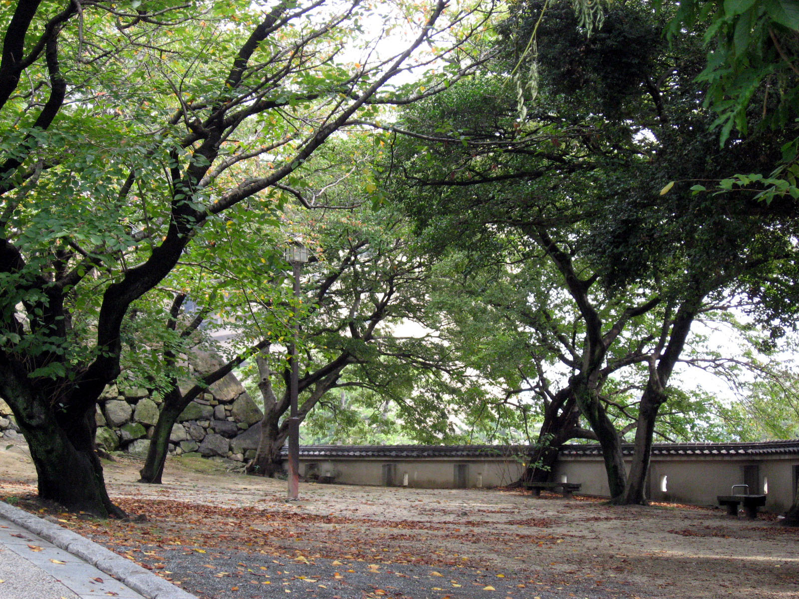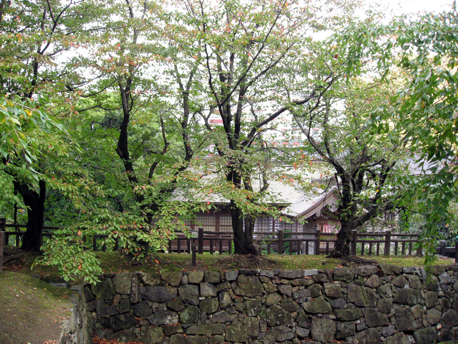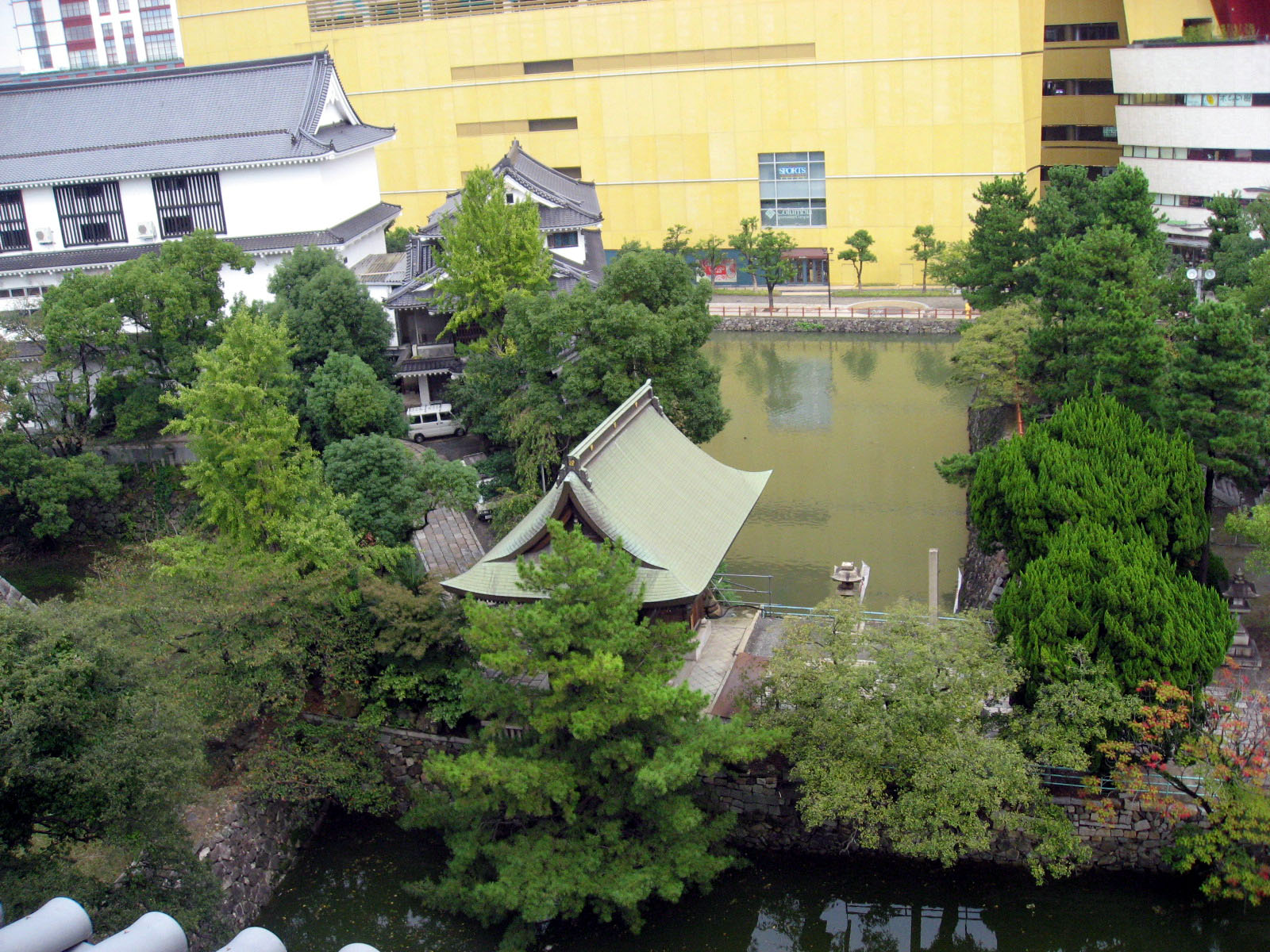 いろんな情景が境内にはあります。そして,お城の内堀や天守も垣間見えます。