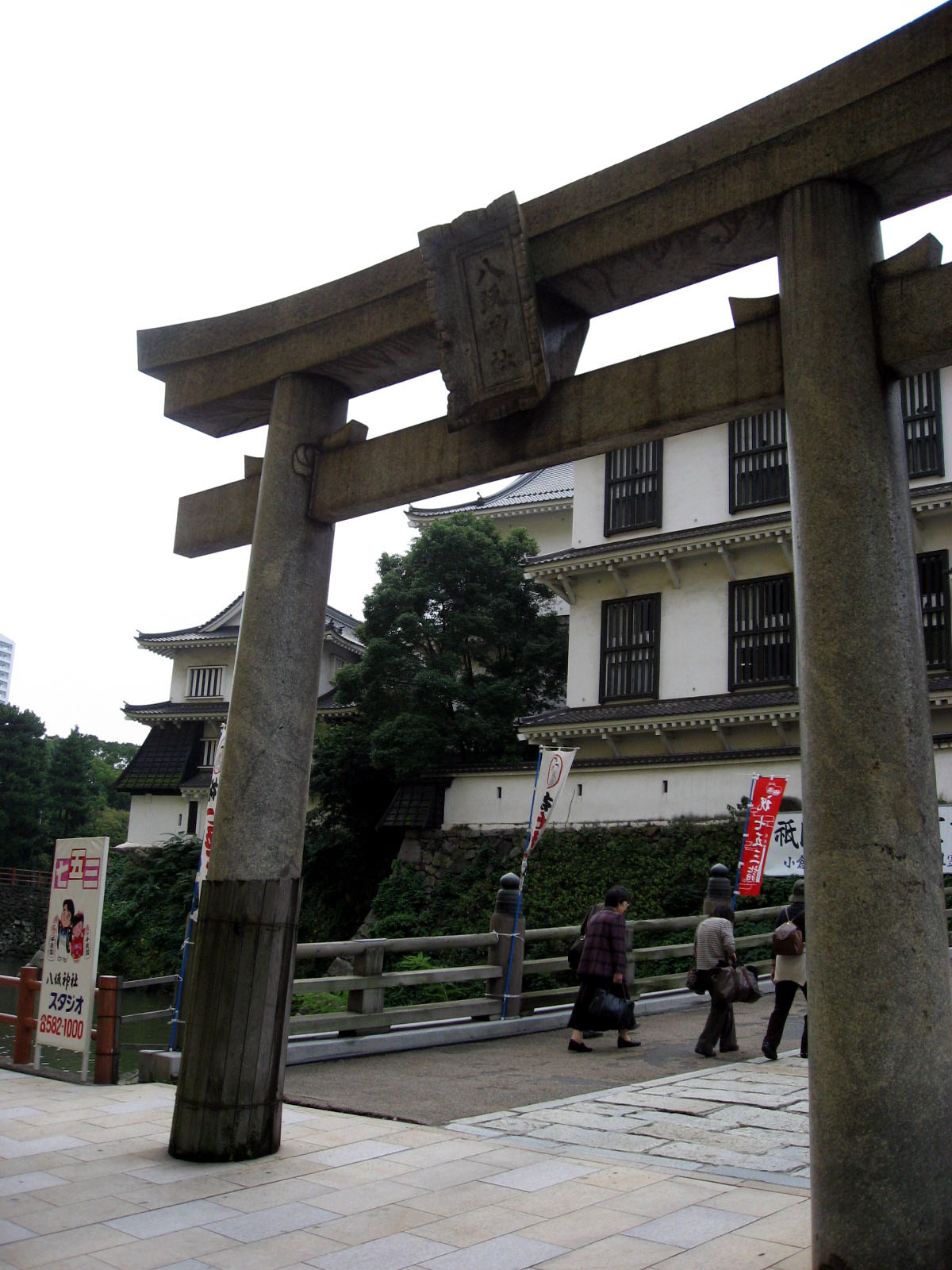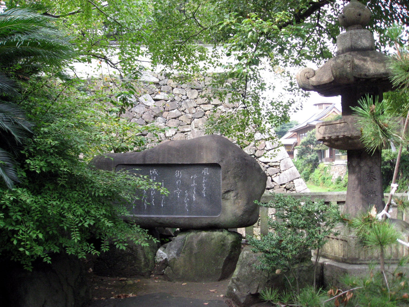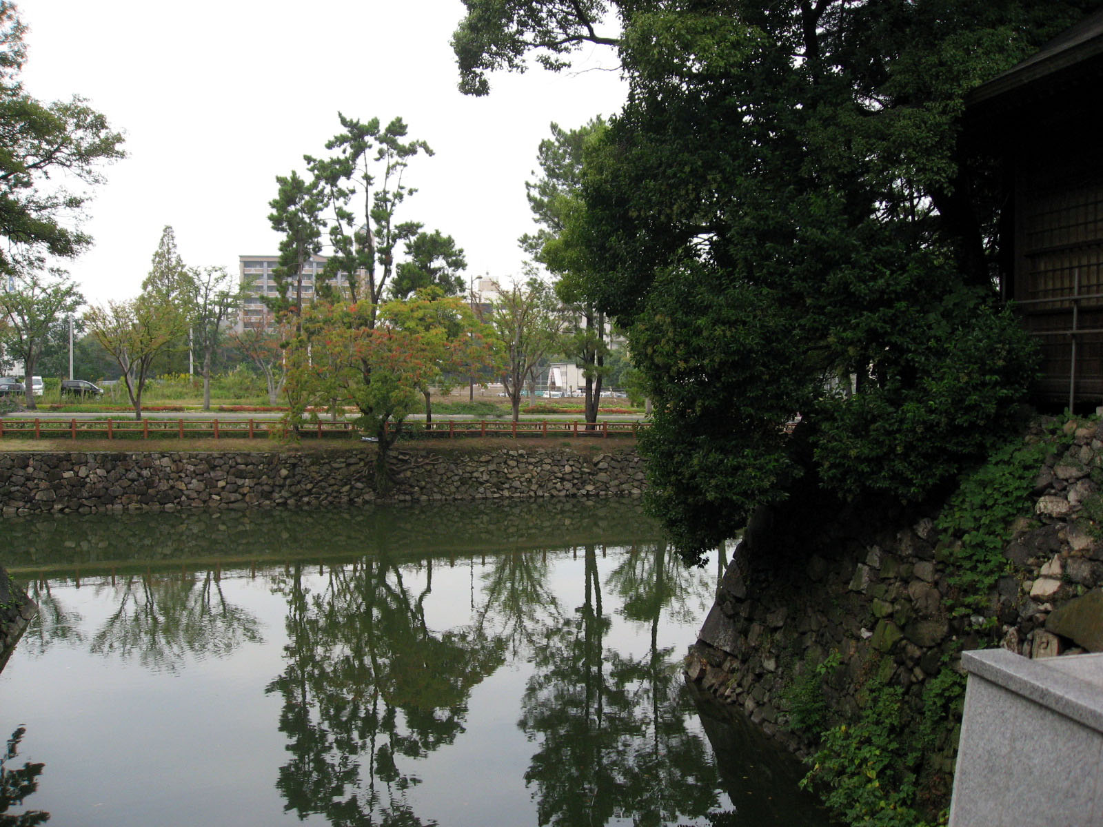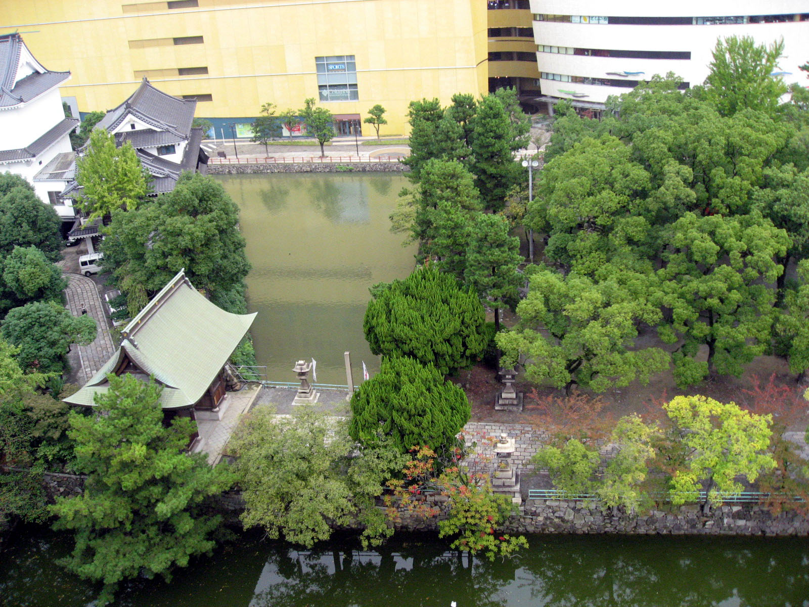 いろんな情景が境内にはあります。そして,お城の内堀や天守も垣間見えます。