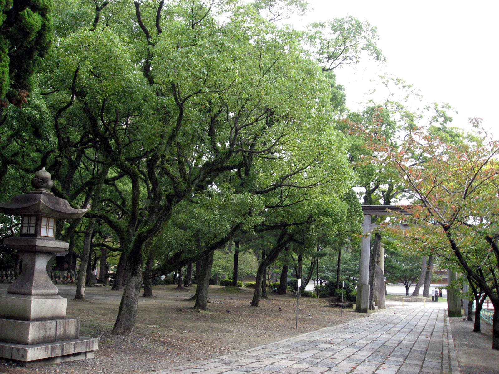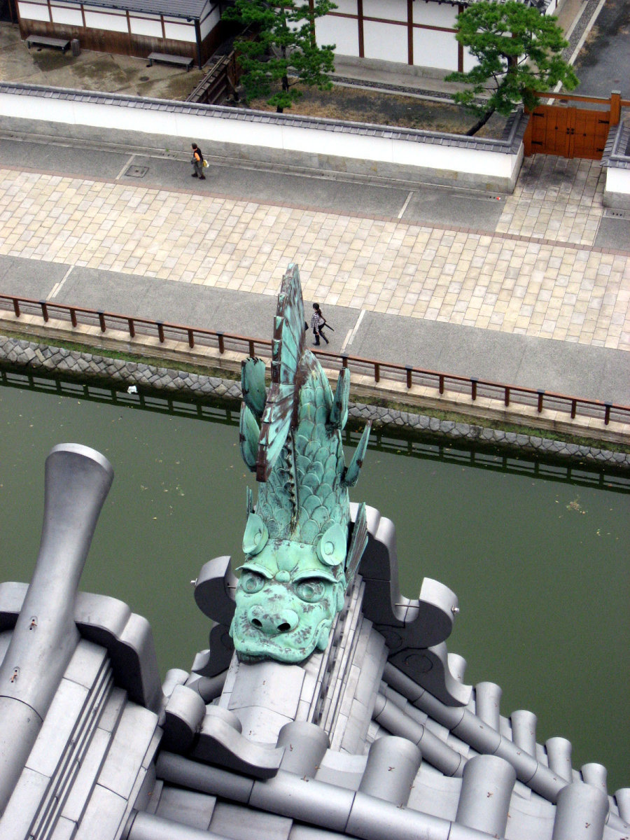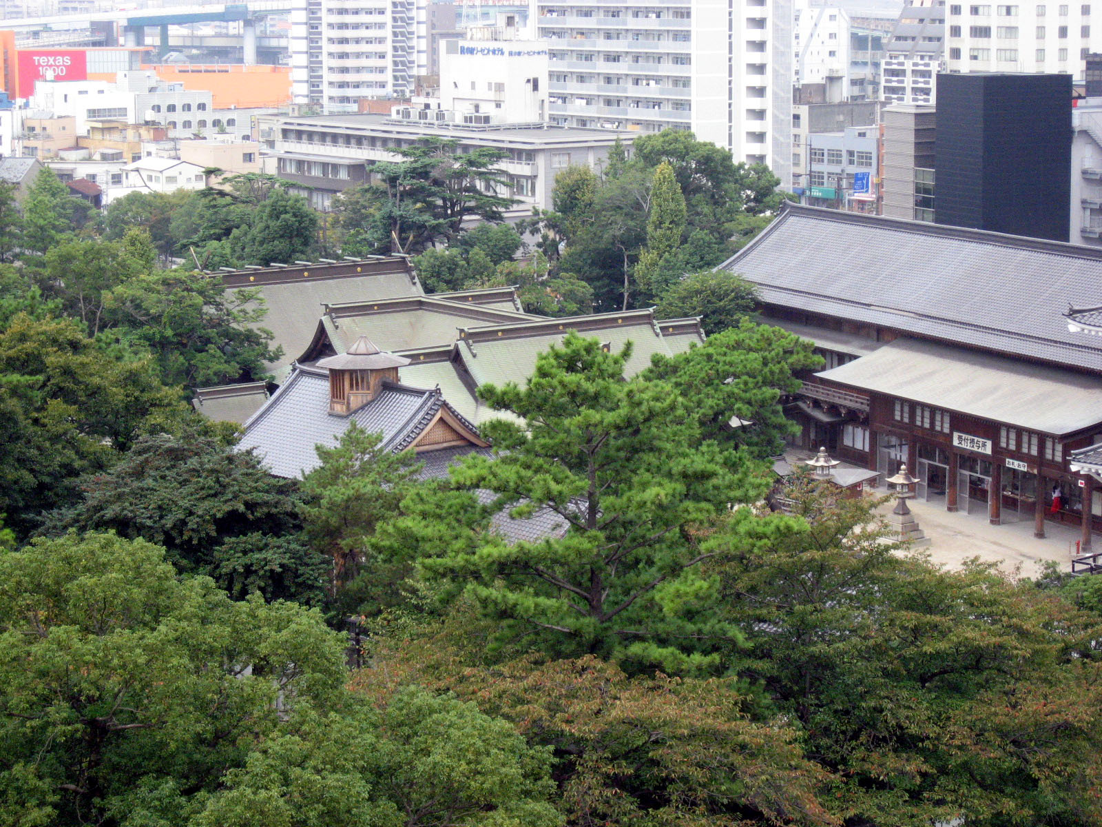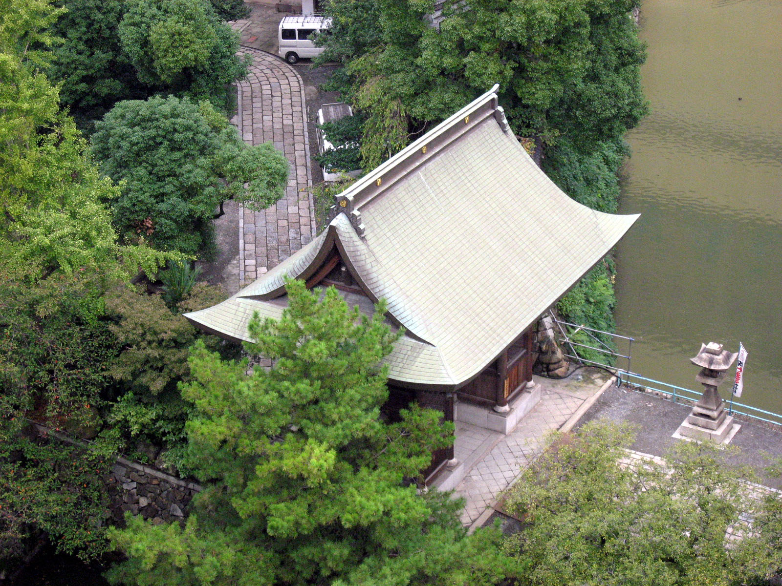 いろんな情景が境内にはあります。そして,お城の内堀や天守も垣間見えます。