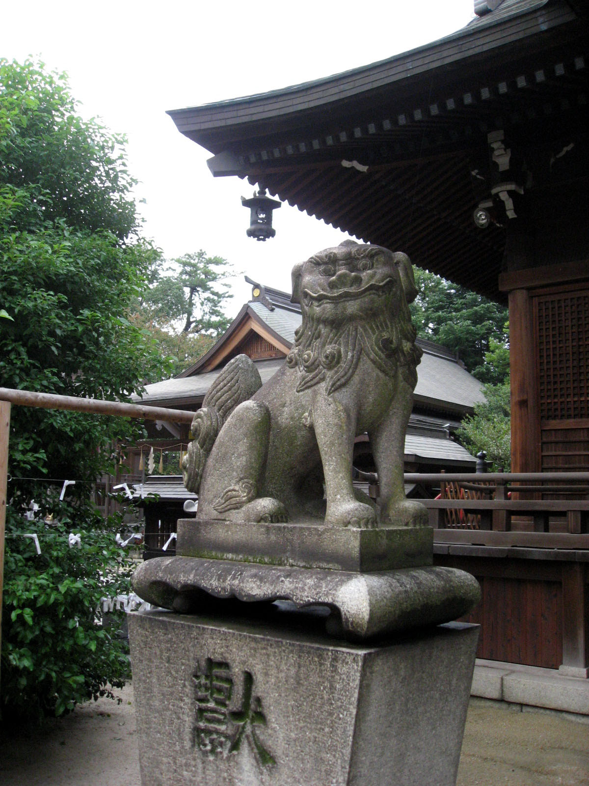 なかなかどっしりとした神殿でした。狛犬も勇壮です。