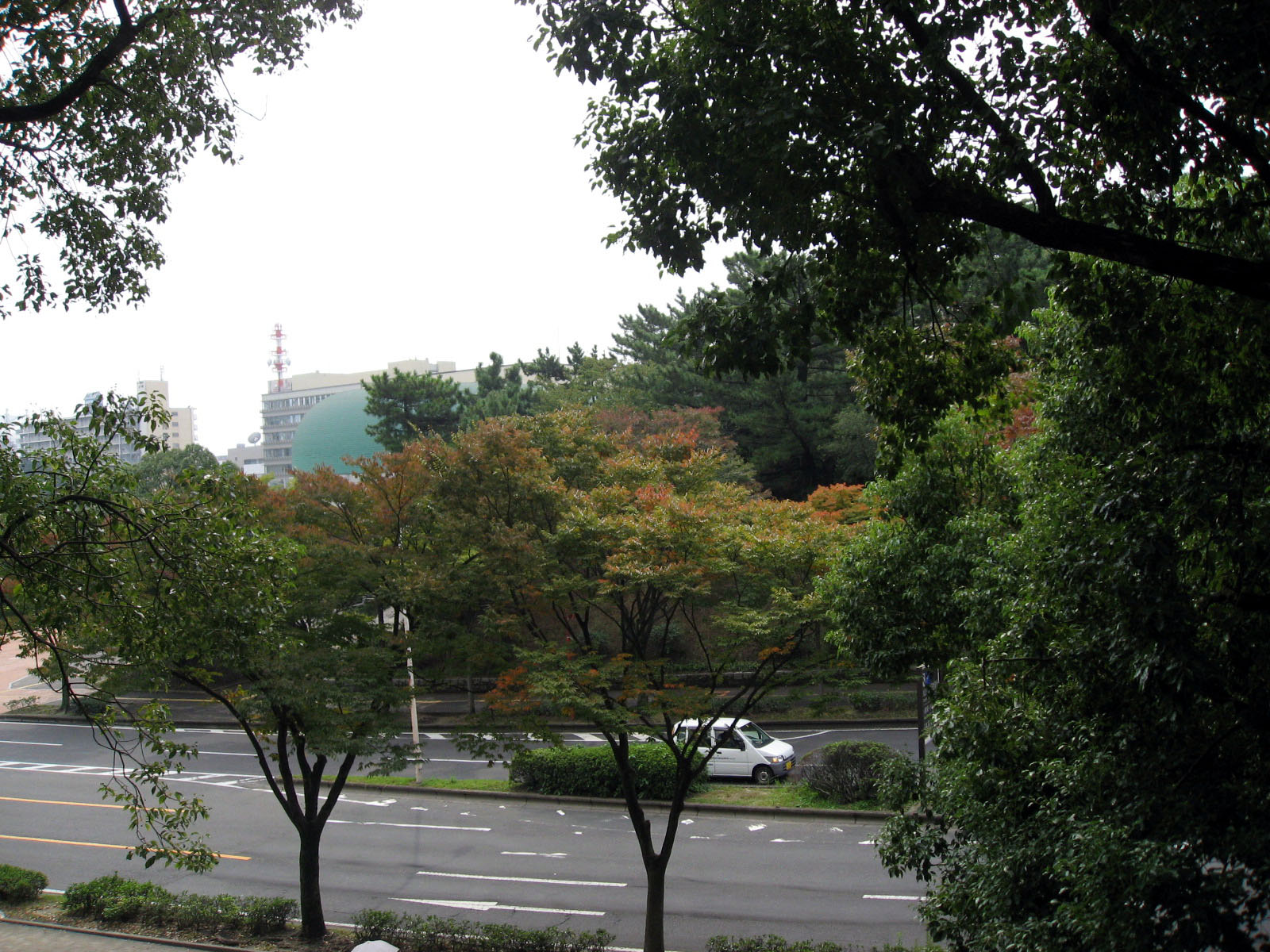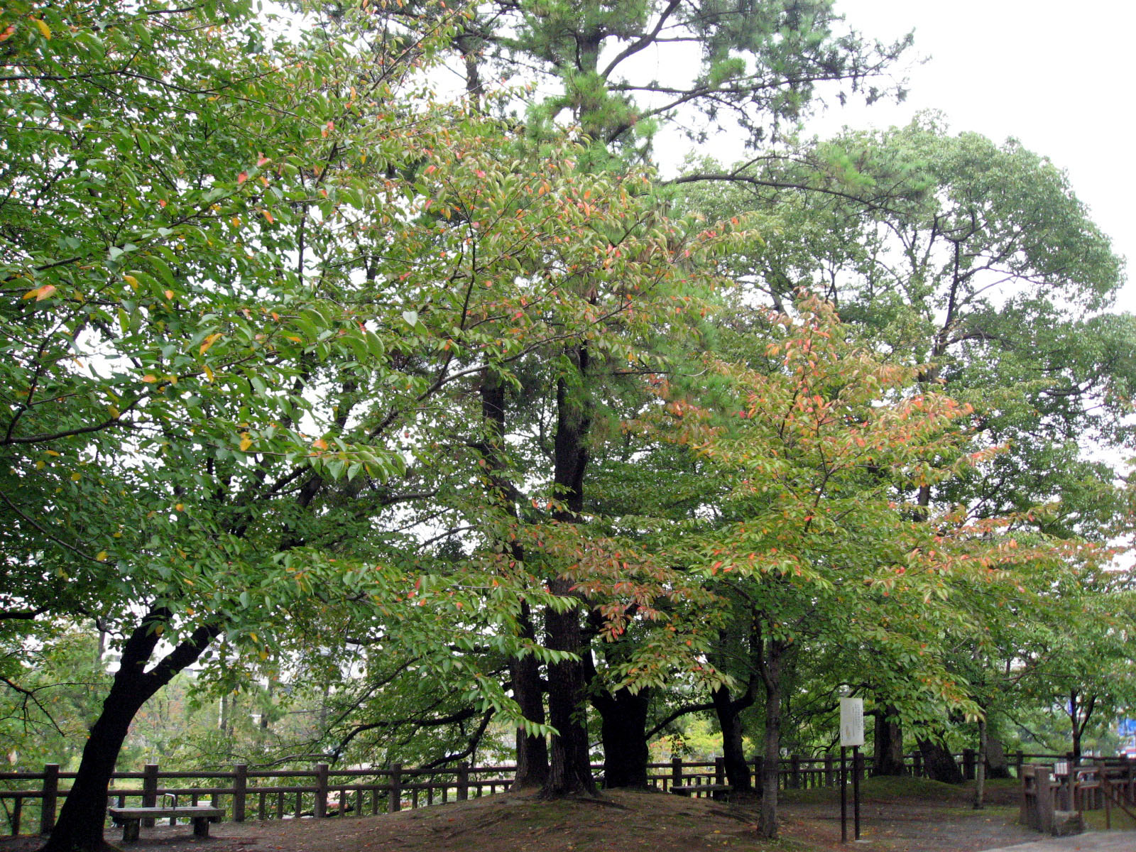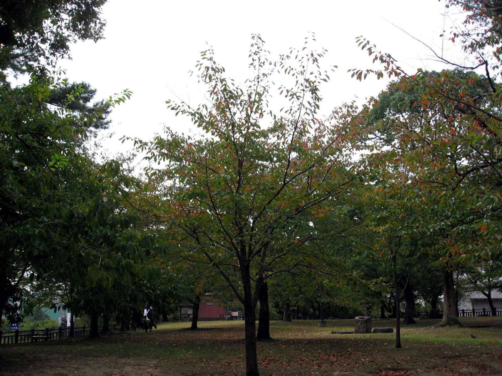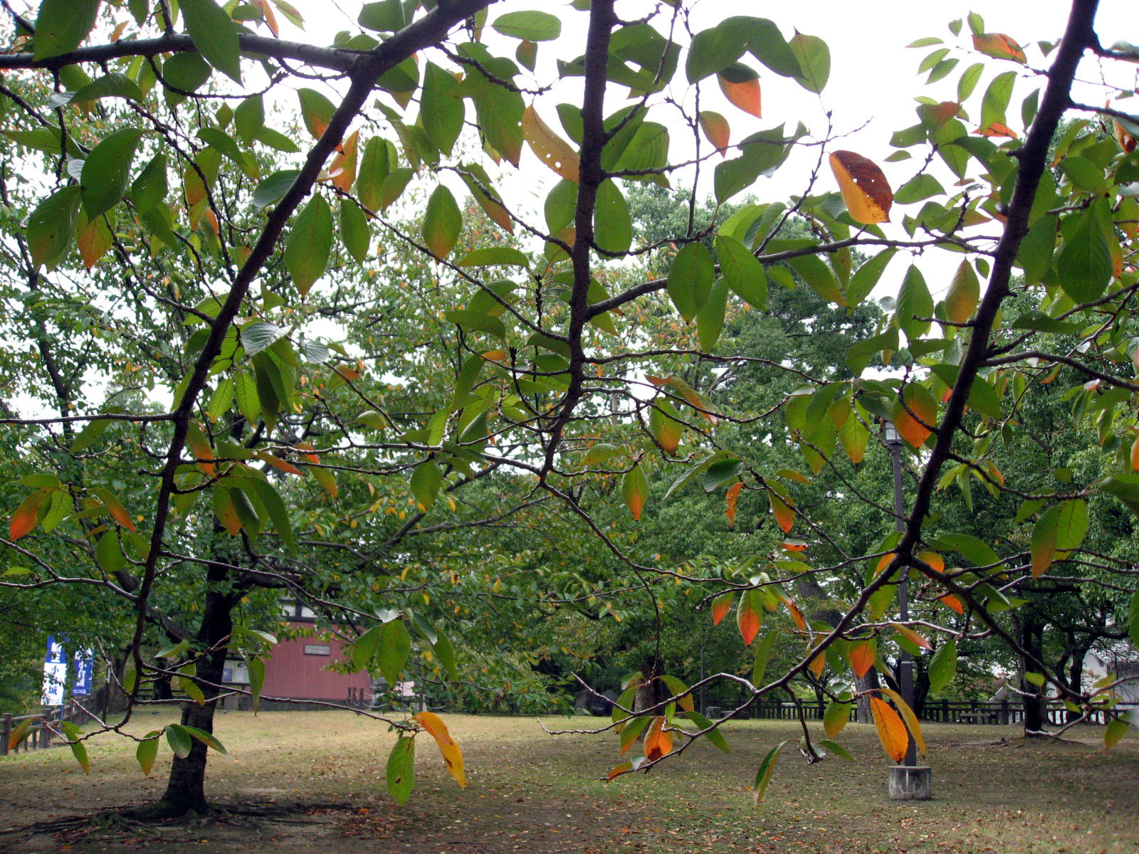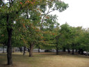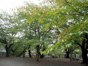 大槻の槻の字を使って・・・「けやき門」です・・・そうですね,槻の字は,ケヤキの一種を表す意味なのですよね・・。さて,南側の広場ですが・・・・・。少し秋色が浮かんでいました。