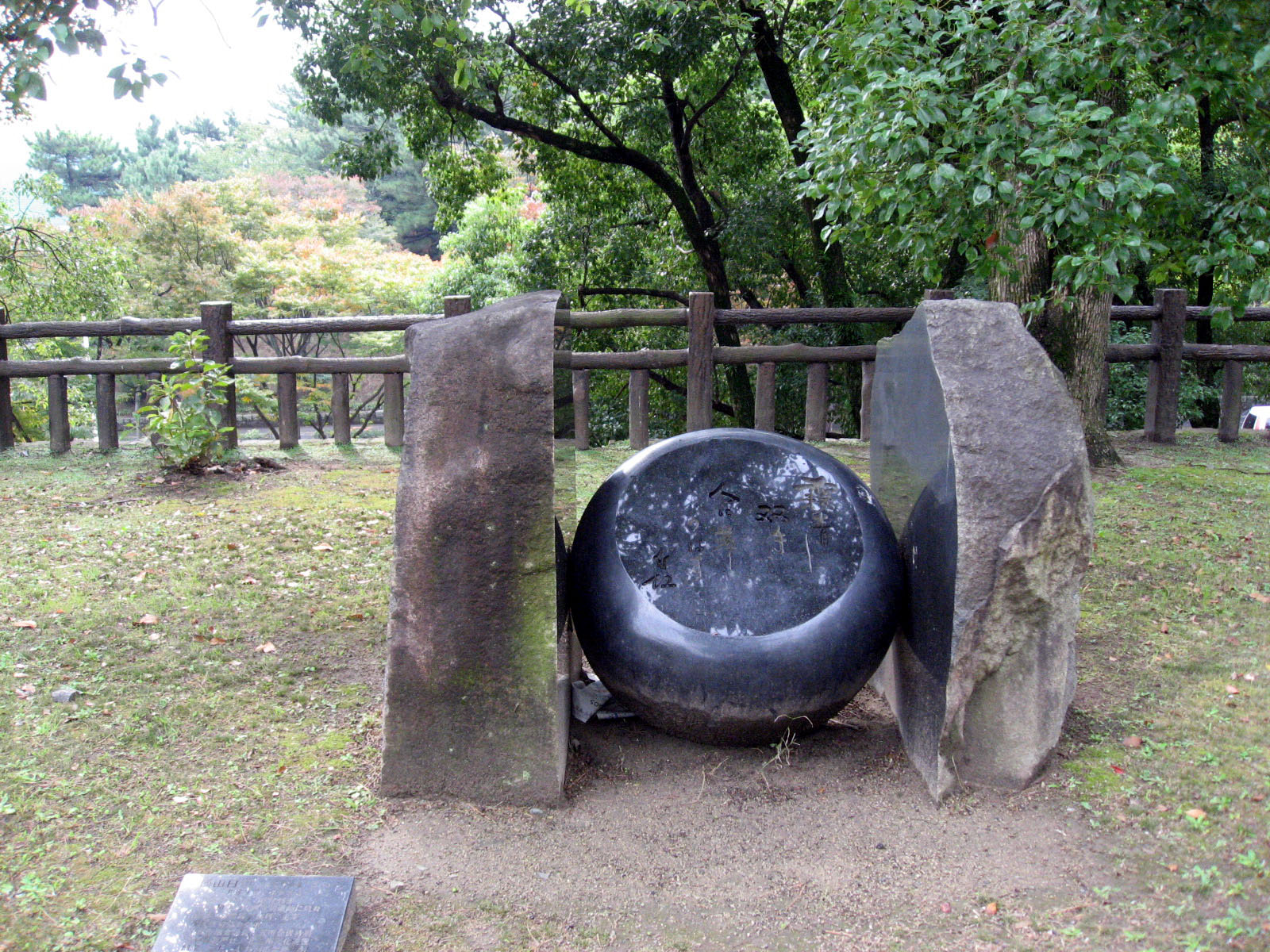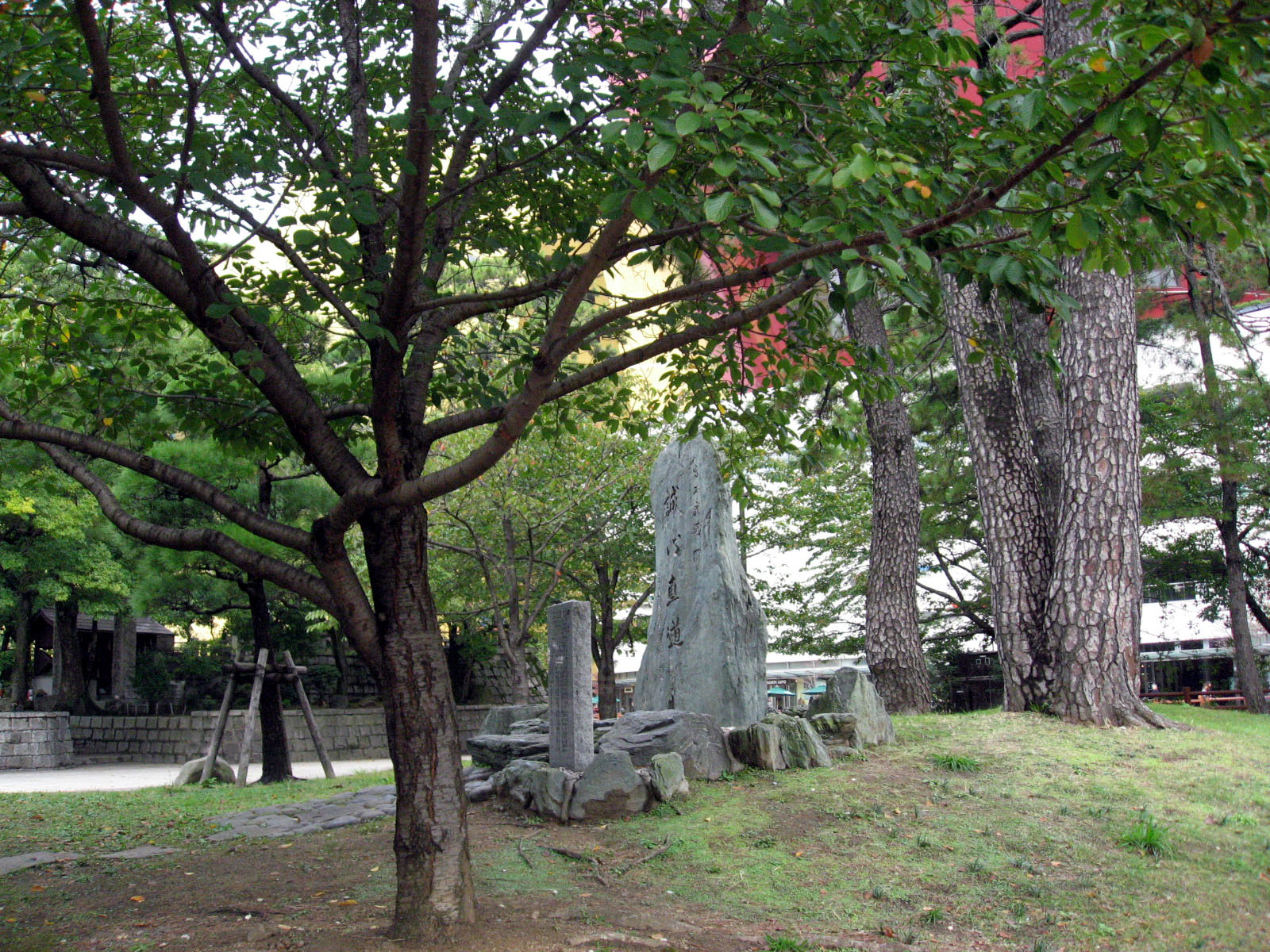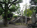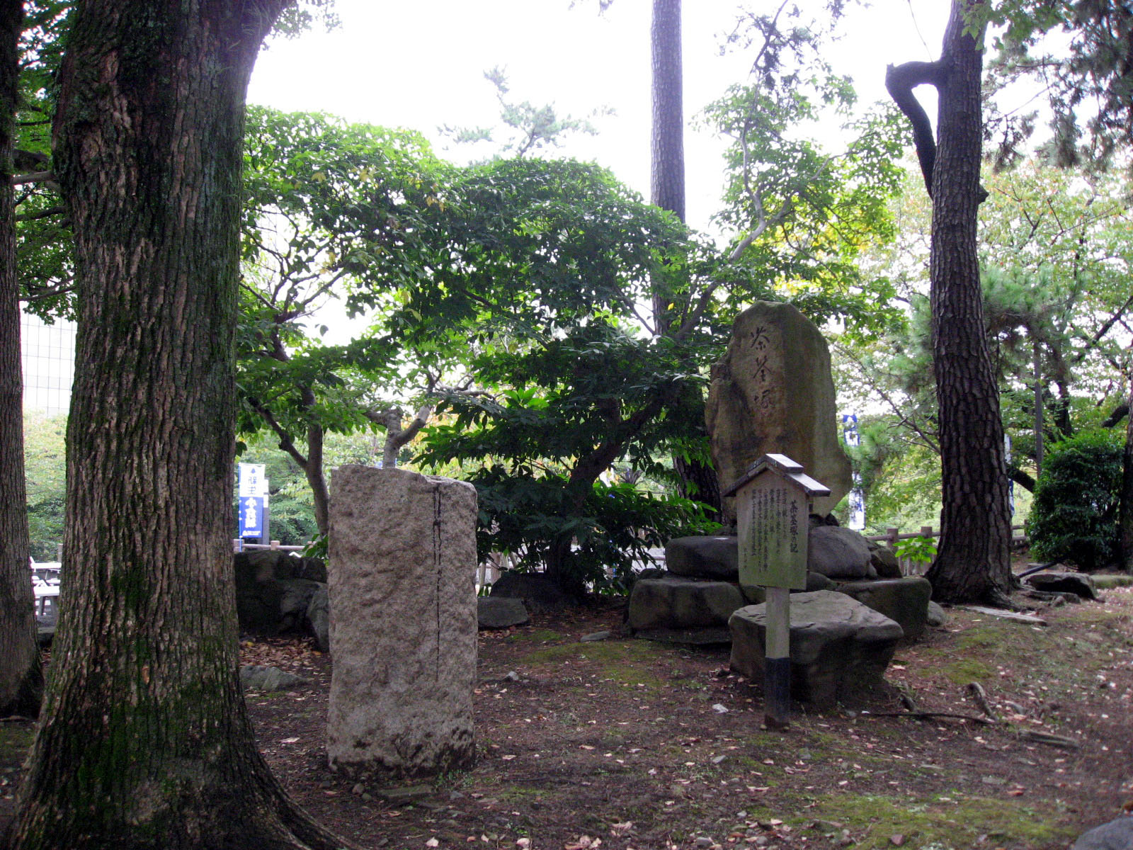 さて,東側の山門をくぐると,そちらもお堀端で,いくつかの碑などがある方面へ,そして,庭園のある方向へ出て行きます。