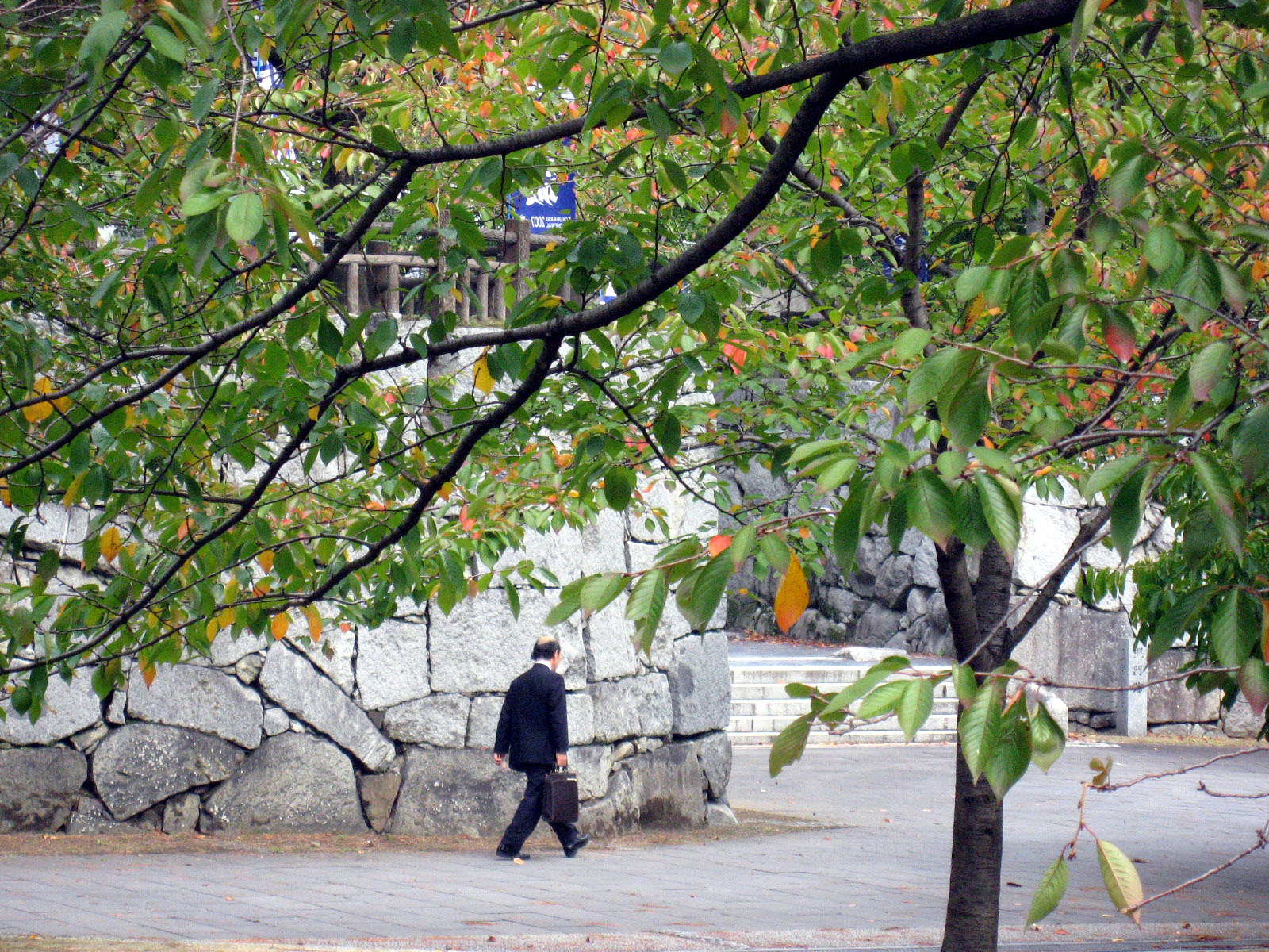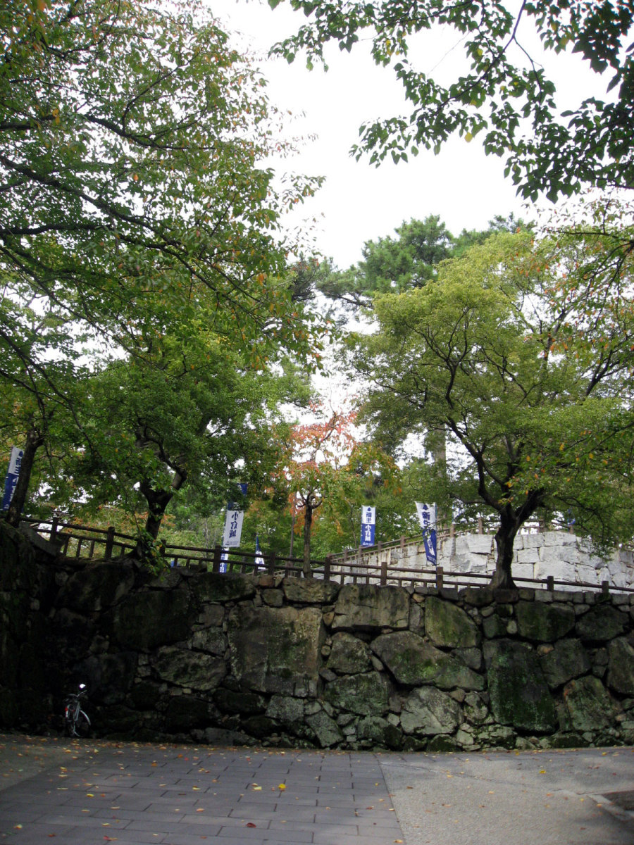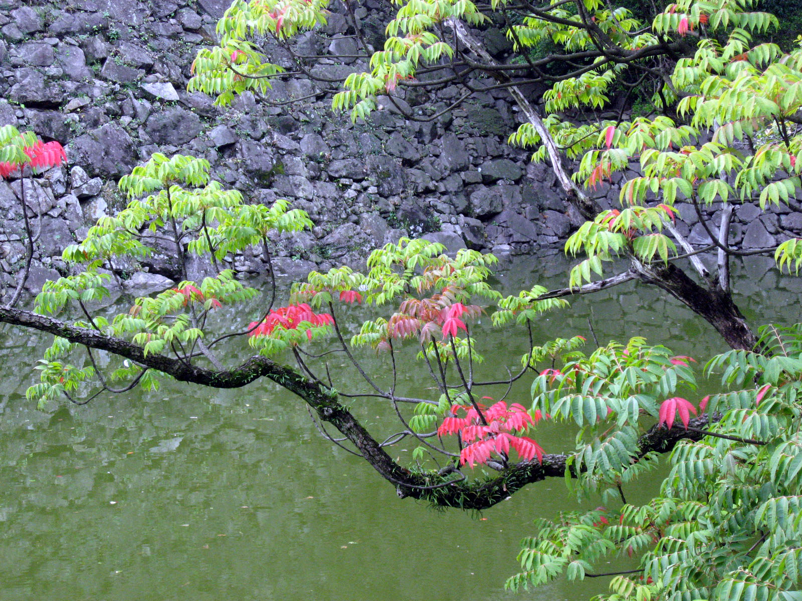 少し曇り勝ちでしたが,色づき始めた葉とお堀の水と石垣と・・・石垣が組まれた頃から,毎年の様に繰り返されてきている彩なのでしょうね・・・・。
