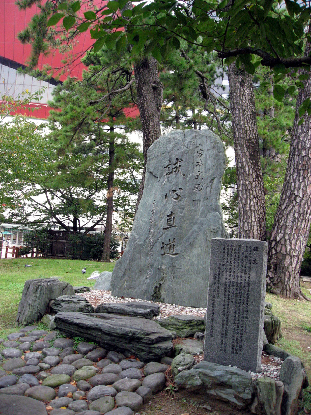 そして,宮本武蔵(これも美作ですよね・・お城の造との関連と一緒で)に縁の石碑もありました。
