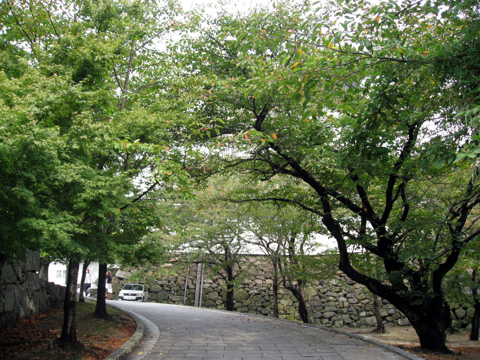 そして,天守閣を北東の方角から木々越しに眺めやる,という,様子です。