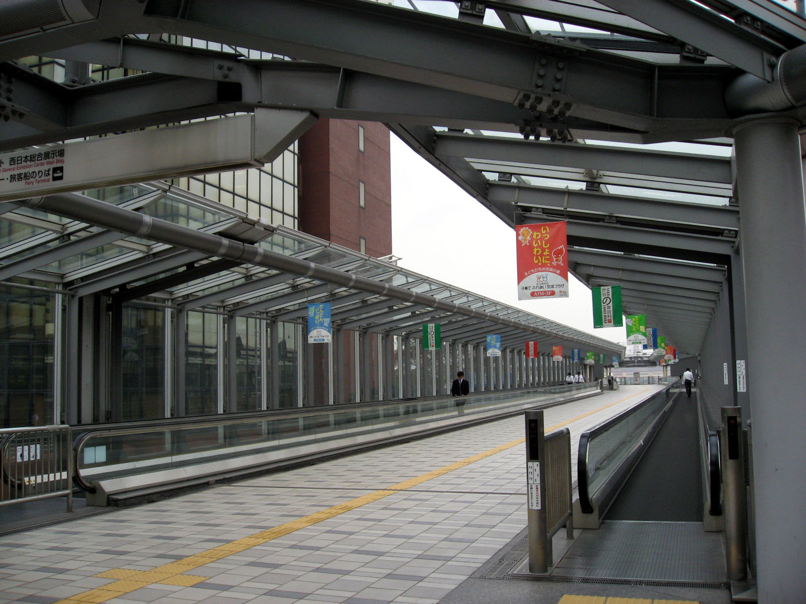 小倉駅からはスカイウォーク(動く歩道付き)を進んで行きます。