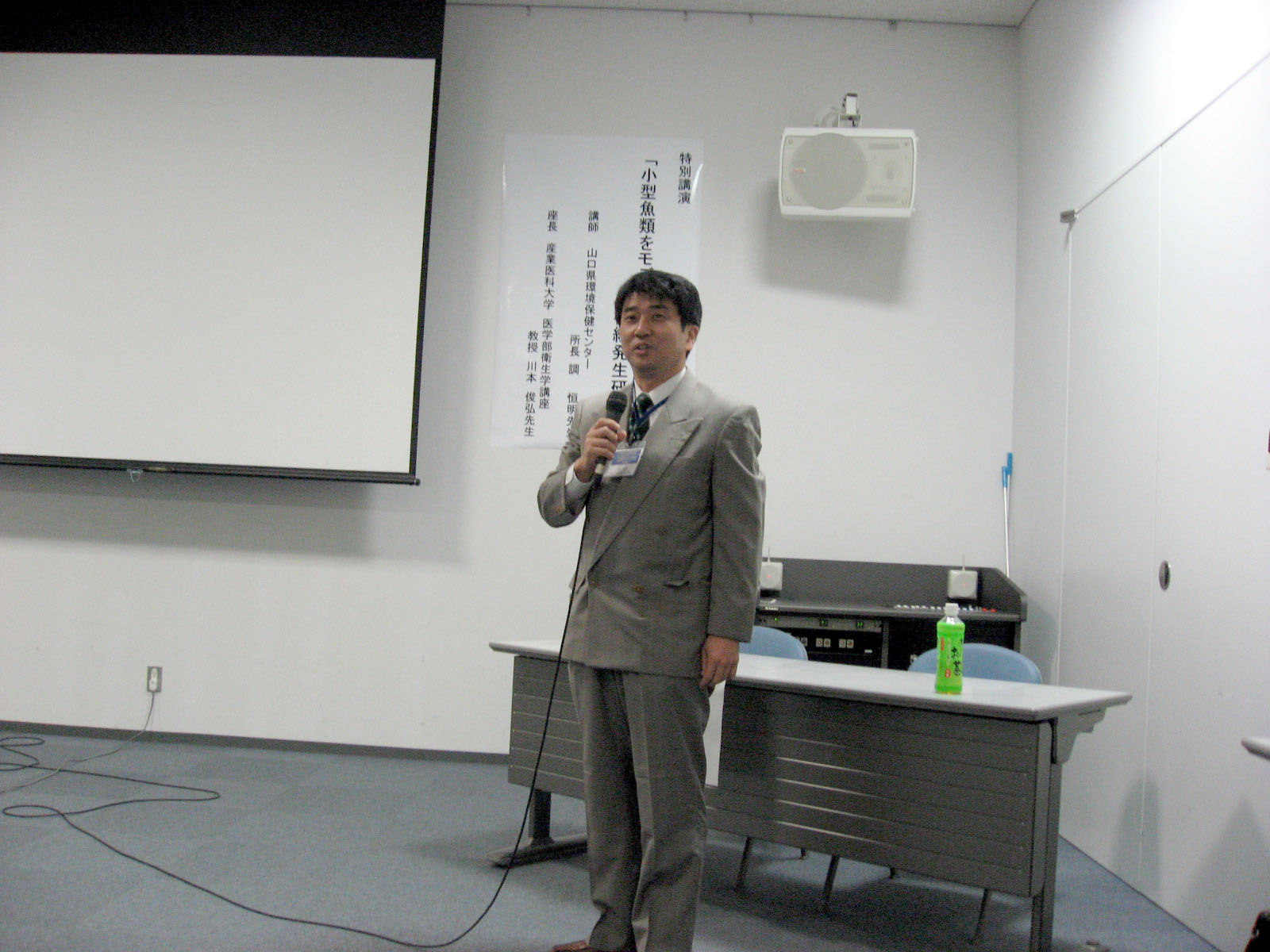 今回は,5つの学会/研究会の合同開催で,会長/世話人は産医大の川本教授でした。上は,開会のご挨拶をされる川本教授です。