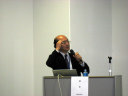 総会で報告される・・そして,実は西村先生の発表に質問されている松島先生! |