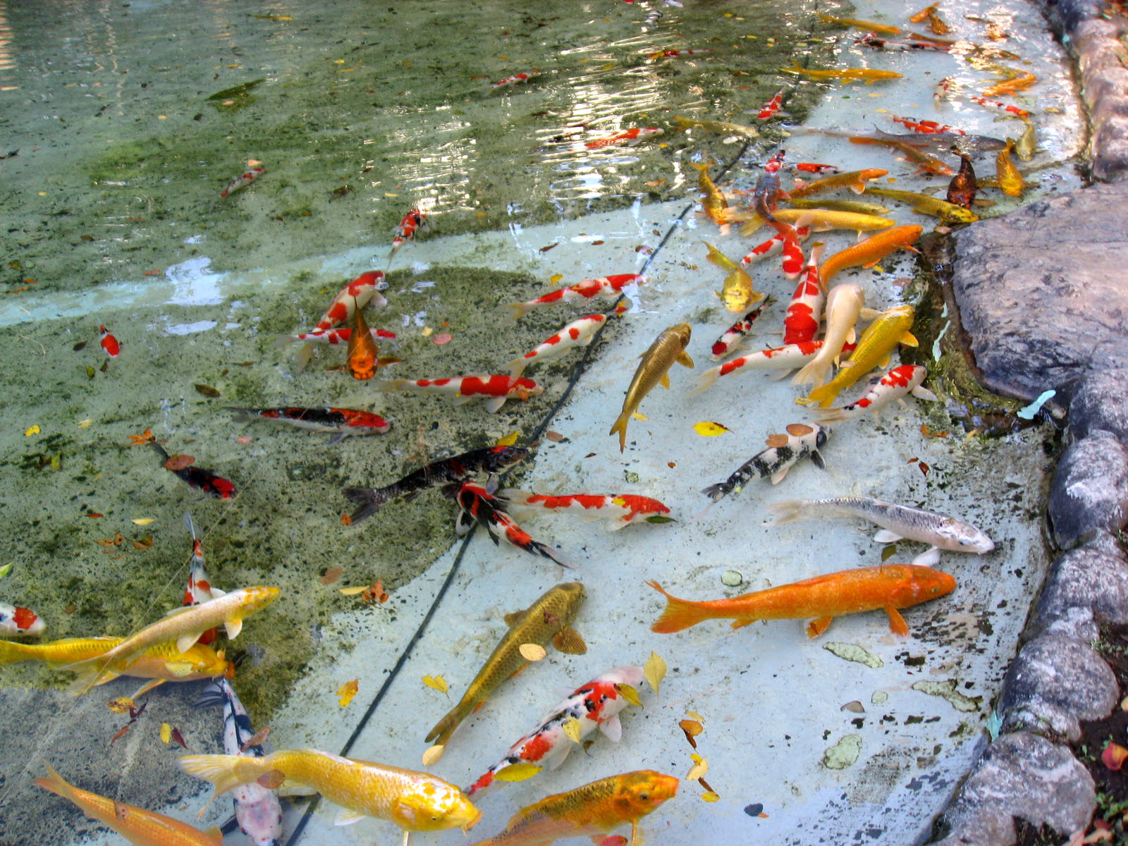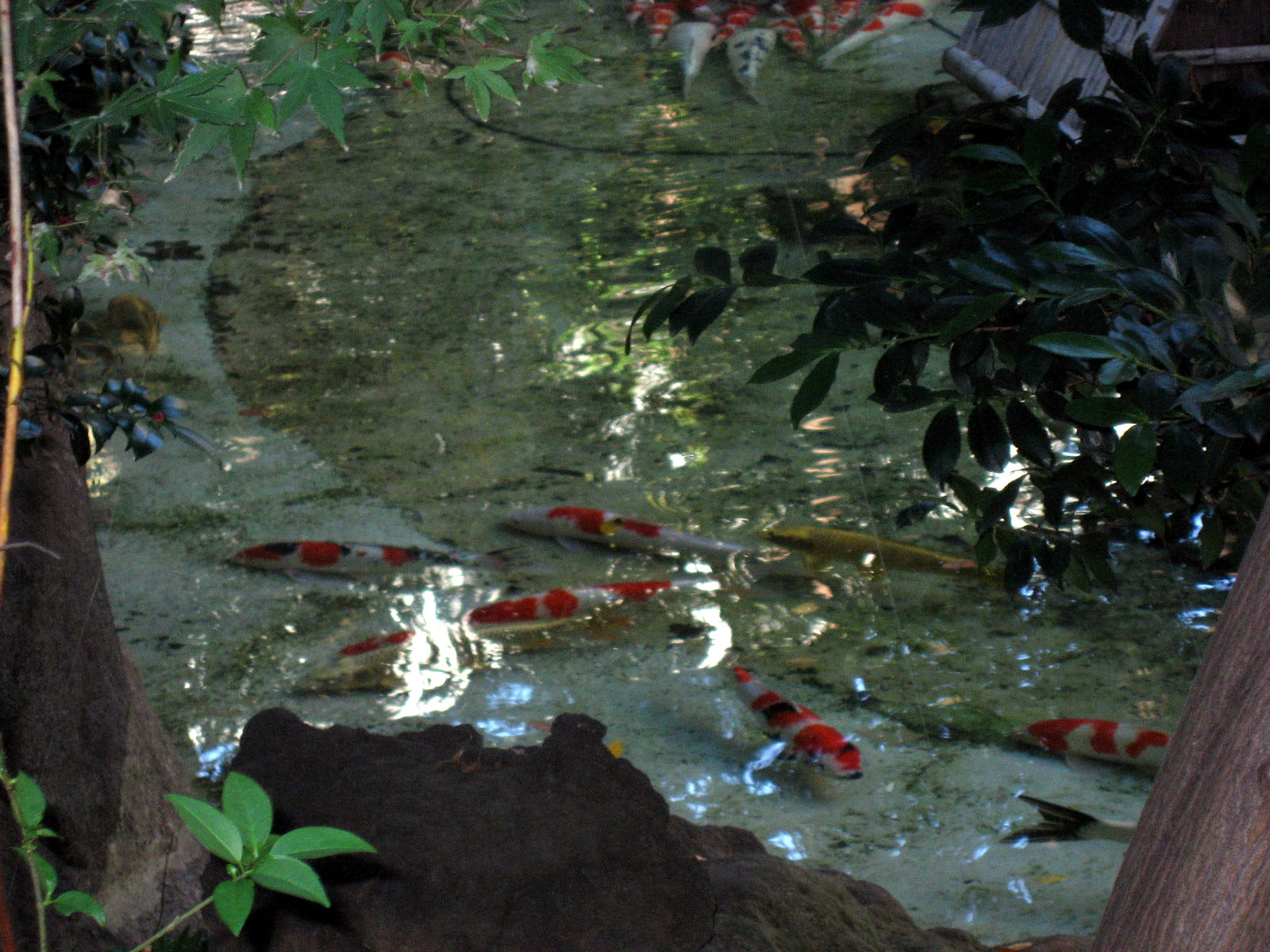 池には鯉が・・・黄金色の鯉も居ましたよ。