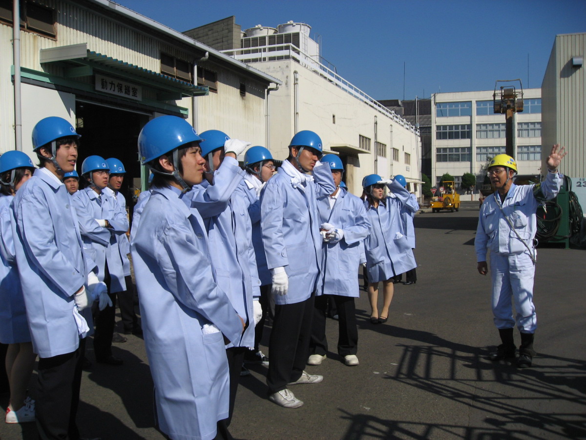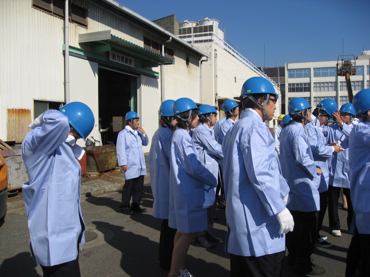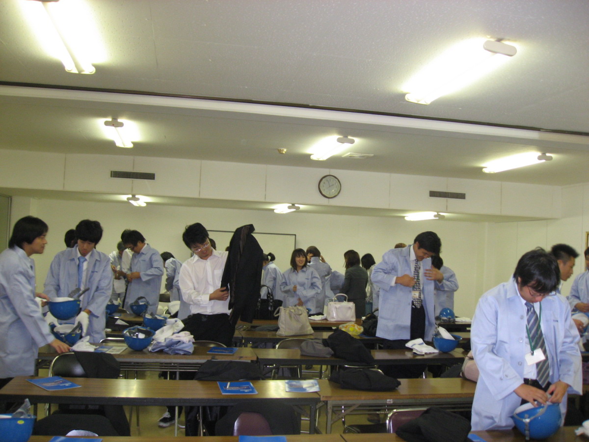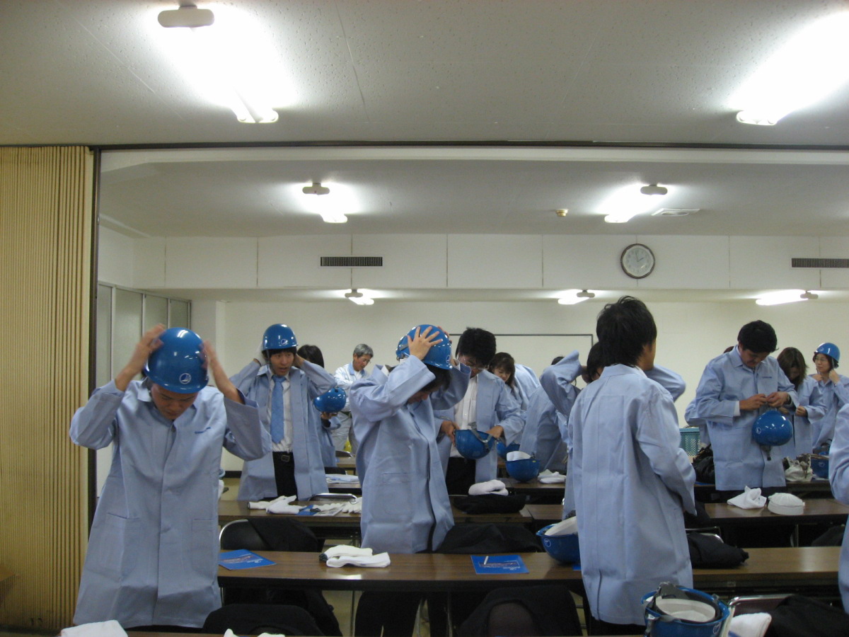 そして,服を羽織って・・・・ヘルメットをつけて,工場見学です。