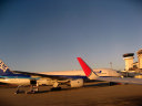 岡山空港,10分違いで,JALもANAも飛び立ちます。