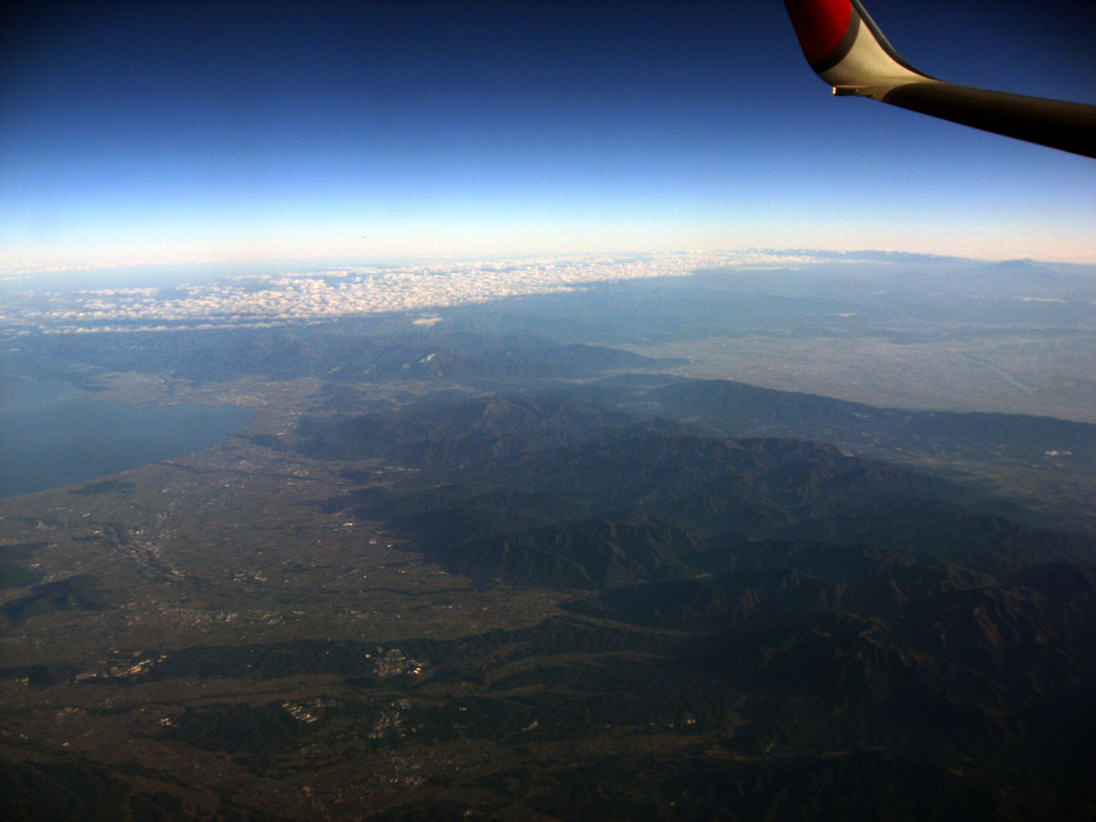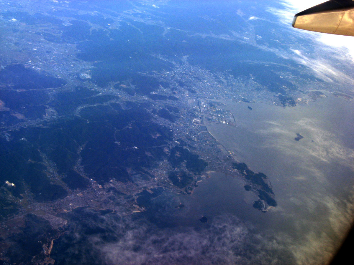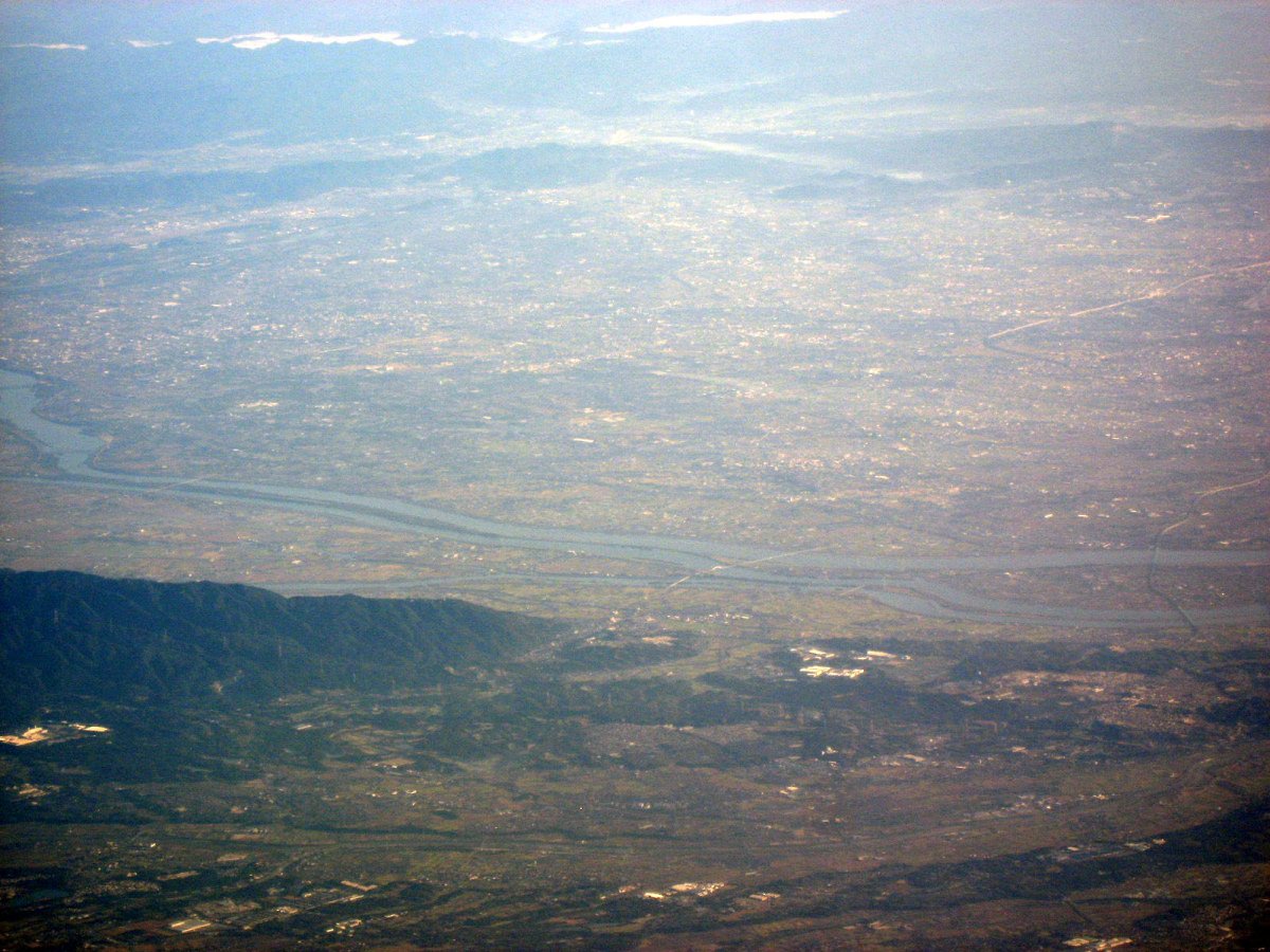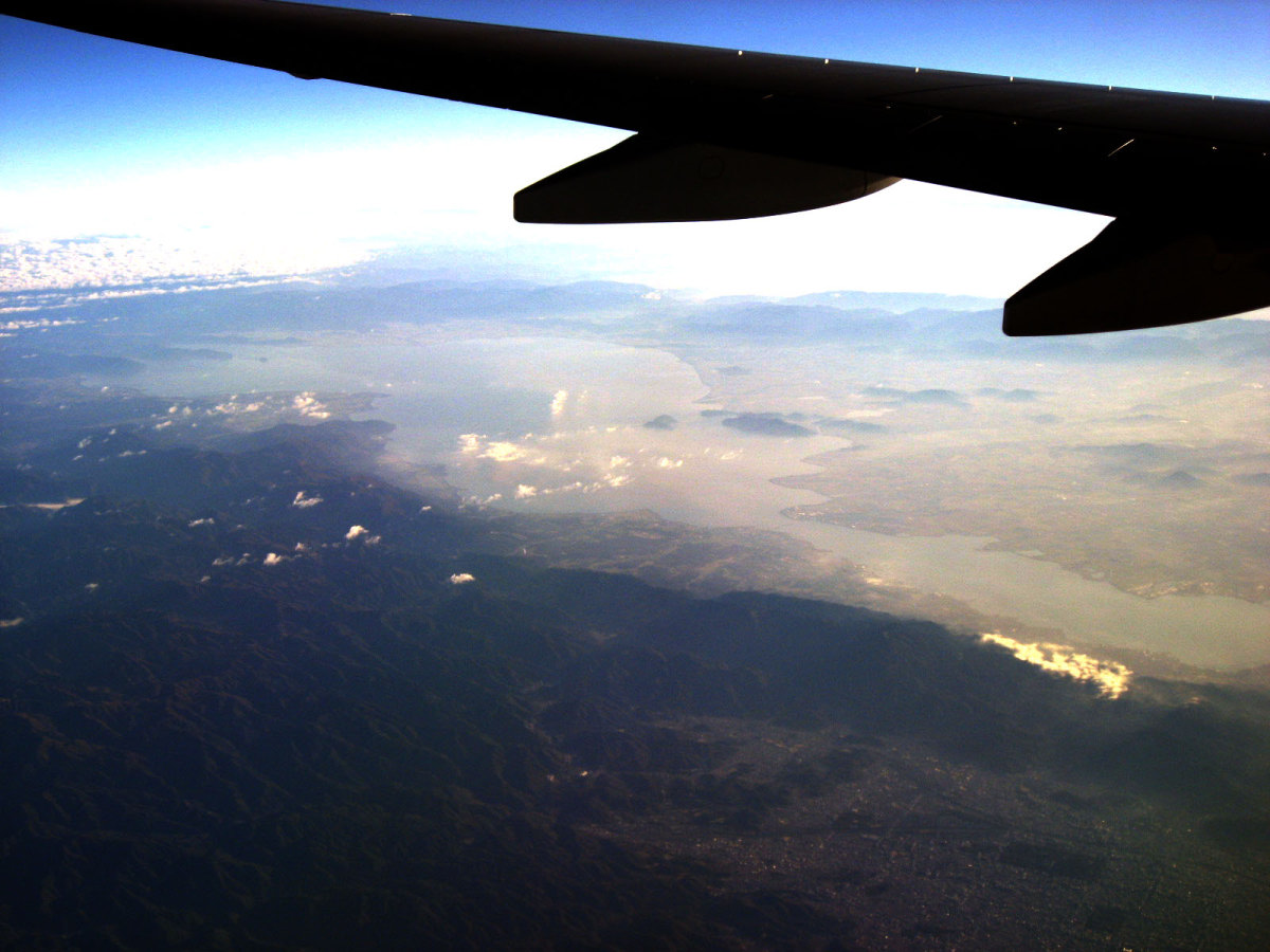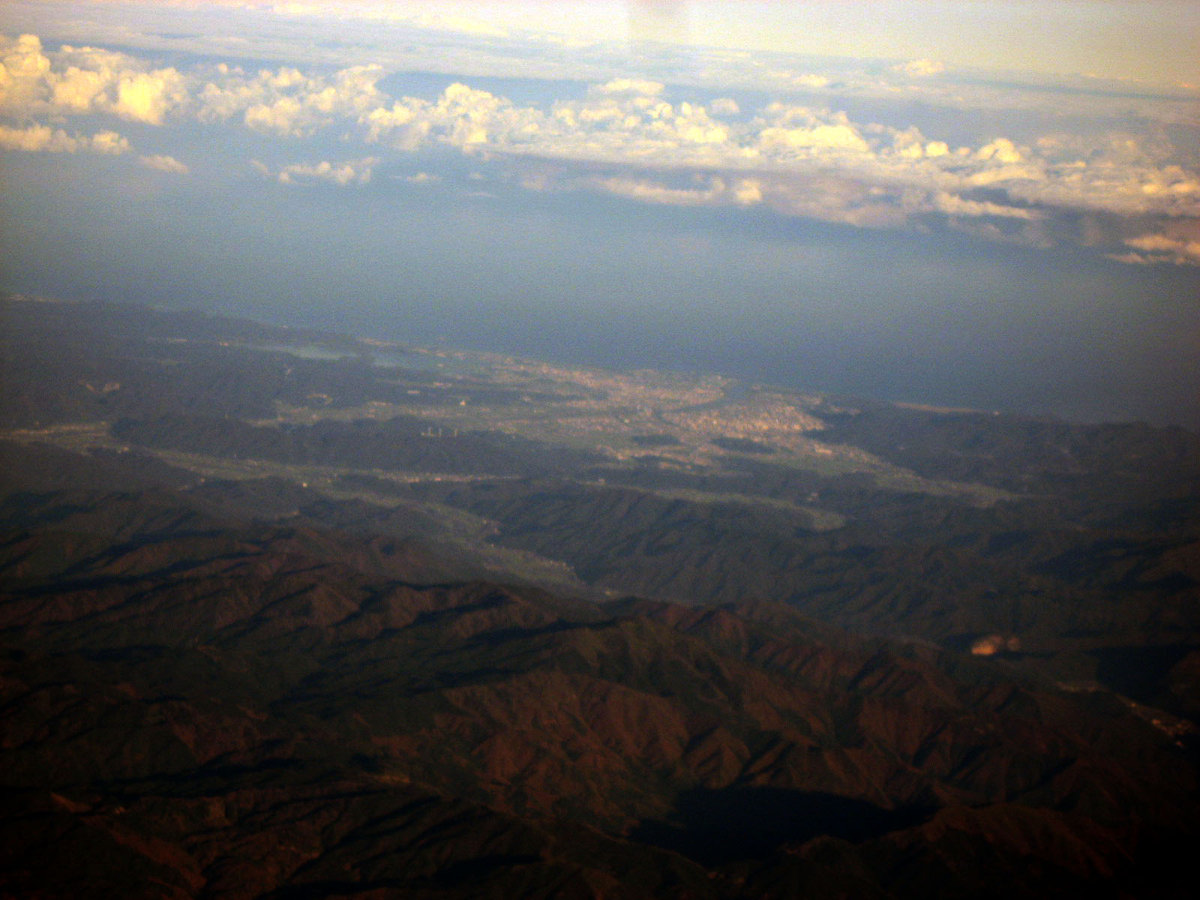 さて,飛んで暫く・・・鳥取平野が見えました。千代川が真ん中を流れて,左(西)には,湖山池が臨めます。
