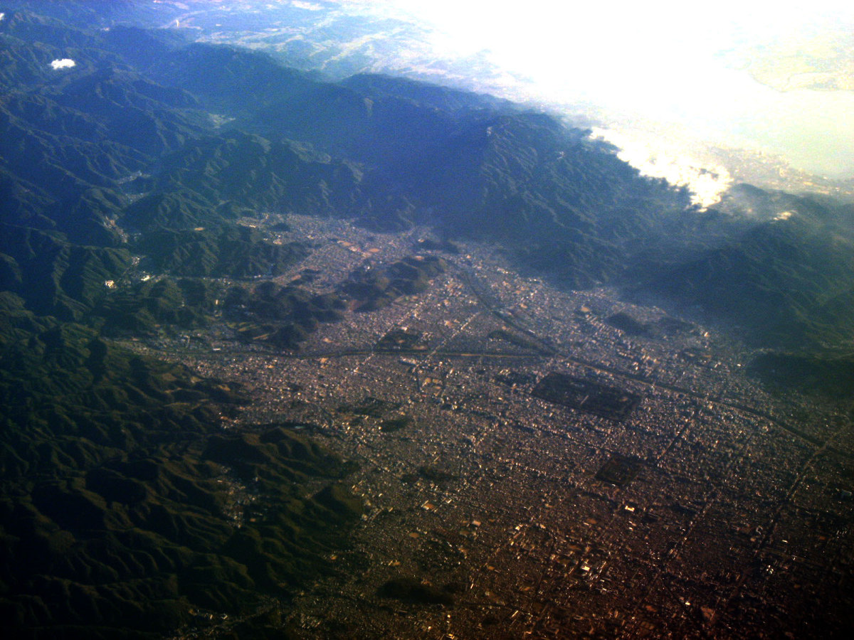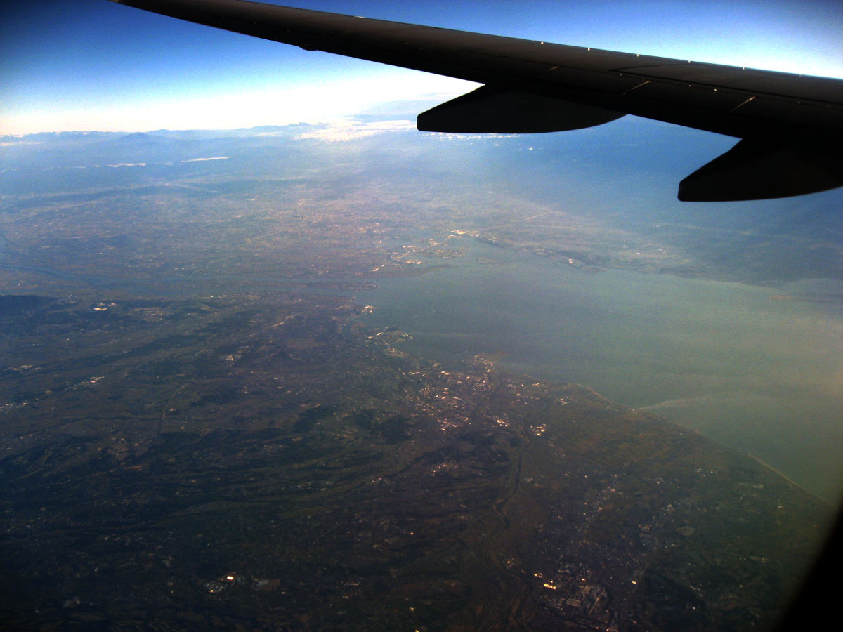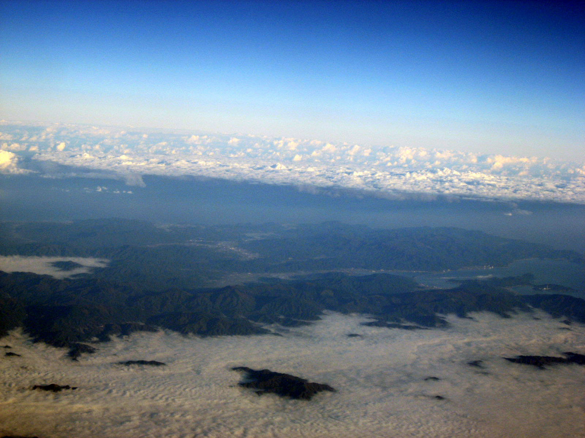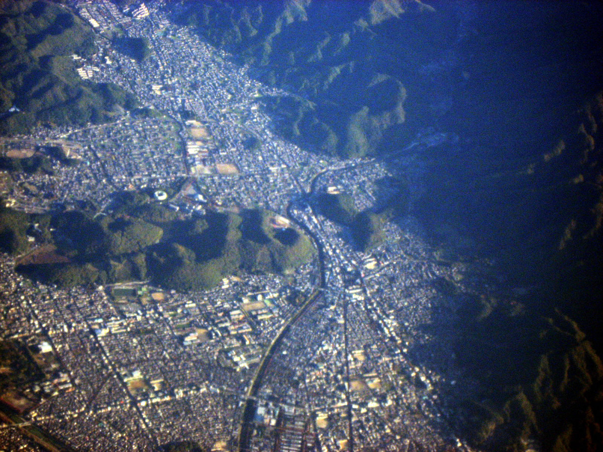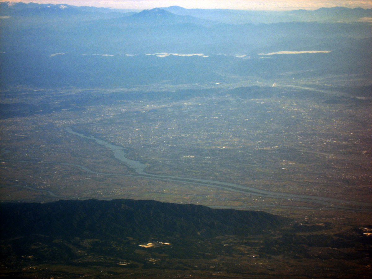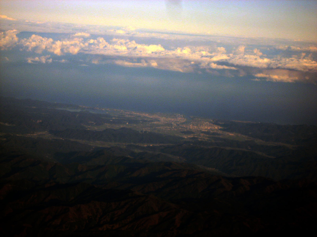 さて,飛んで暫く・・・鳥取平野が見えました。千代川が真ん中を流れて,左(西)には,湖山池が臨めます。
