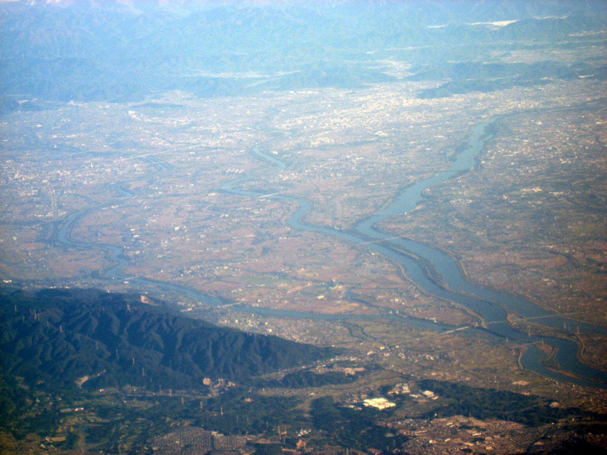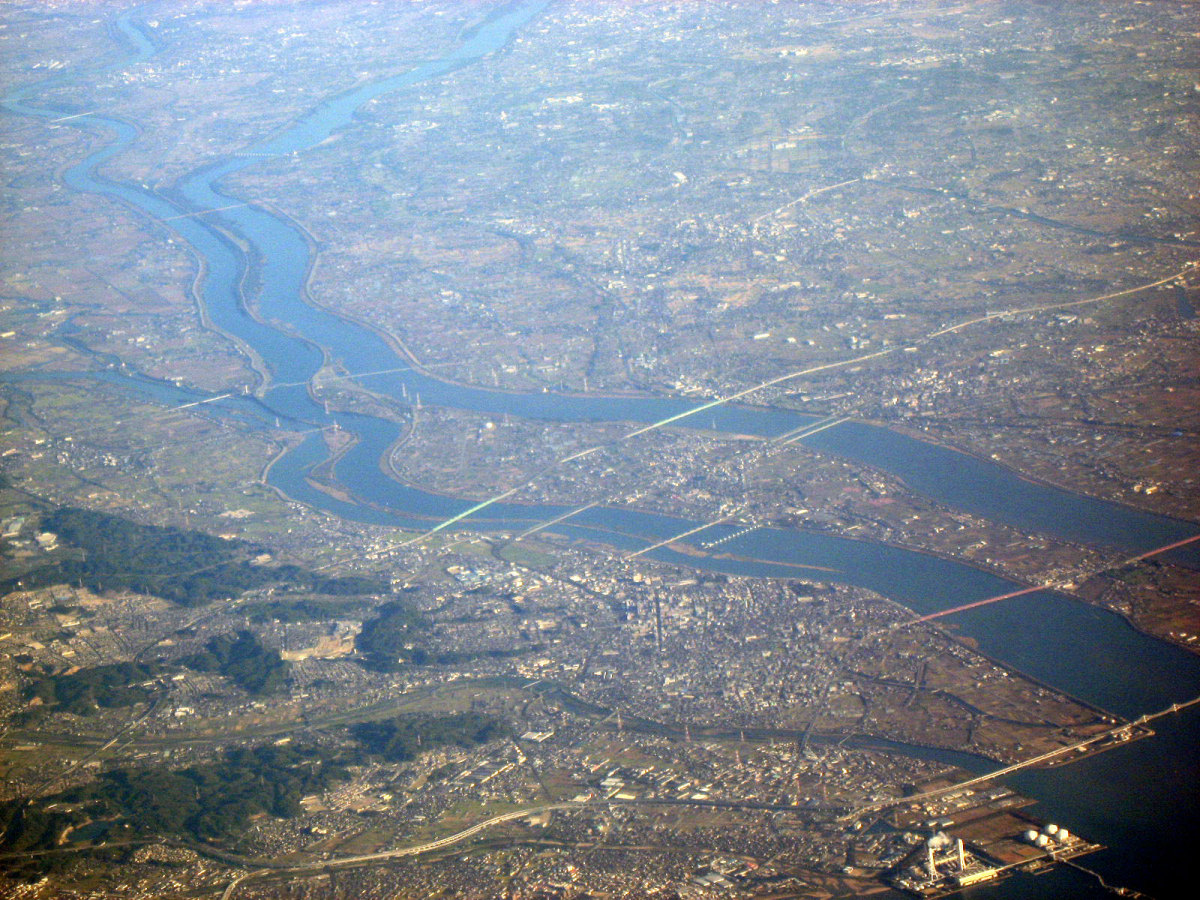 手前から揖斐川,長良川,木曽川ですが,本当にこの辺りで接していますね・・・河口手前で,揖斐川と長良川が一緒になっています。