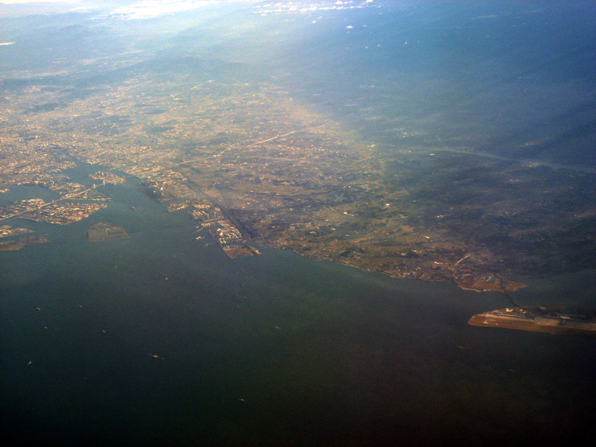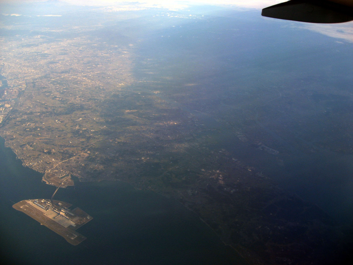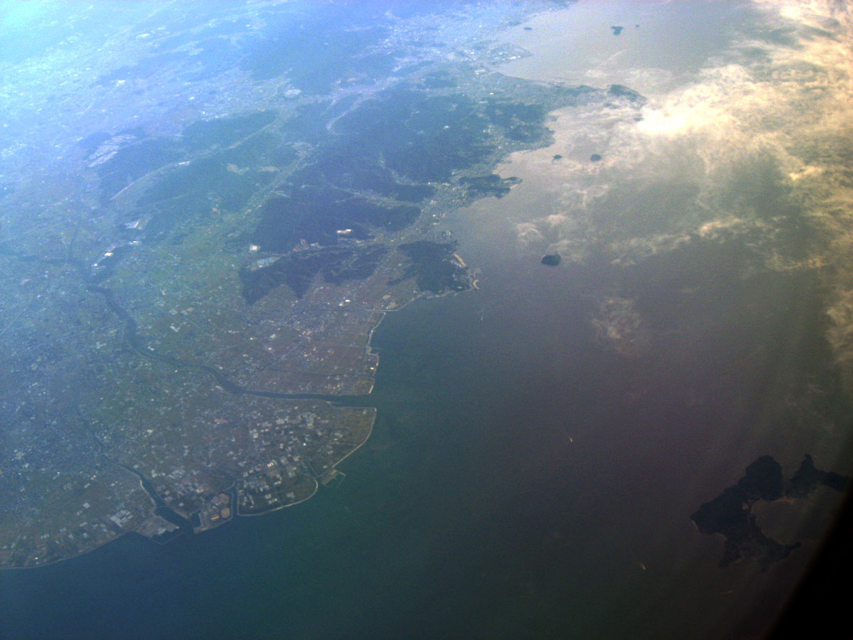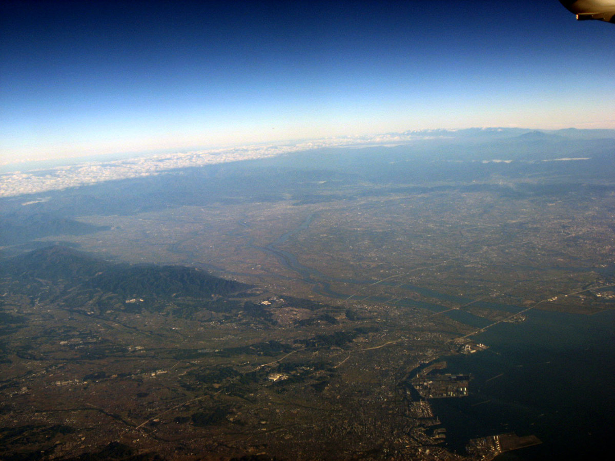 名古屋港の辺りで,中部国際空港もはっきりと見えます。名古屋は大都会ですね,やっぱり。