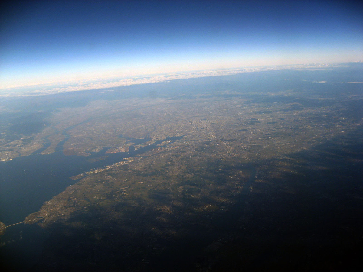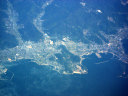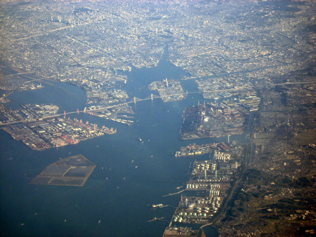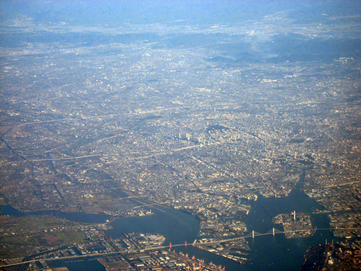 名古屋港の辺りで,中部国際空港もはっきりと見えます。名古屋は大都会ですね,やっぱり。