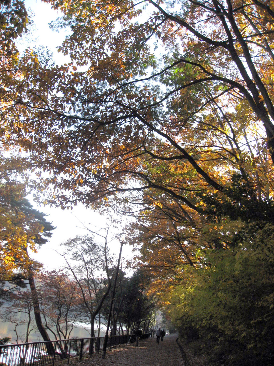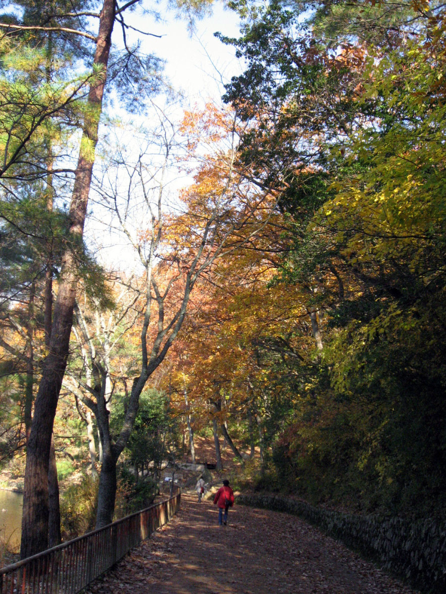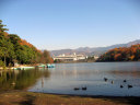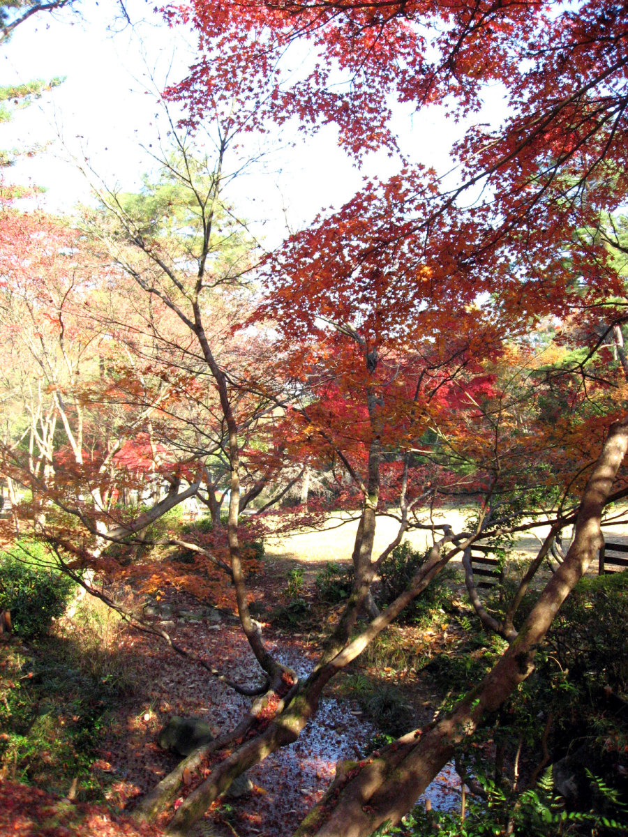 国際会館,中庭でも紅葉が燃えていました。 紅葉は,やはり美しく感じます・・・そして,これから寒くなっていくなぁ・・っていう想いと共に・・。 そして,2日目・・一番,冬晴れだった日・・・総会とかを少し抜け出して,周囲の宝ヶ池を散策しました。 冬枯れの公園も素敵です。 宝ヶ池周囲を,文字通り「紅葉狩り」で・・・色づく木々を狩って行く感じでした・・・。 真紅の紅葉です・・・。 一点の鮮やかさです。 水辺には水鳥や白鳥や・・・。動画です。 グアダラハラ市(where?)との姉妹都市記念の像もあります。 そこから少しずつ,山の頂の方へ向かいました。 どんどん,奥へ!! 頂付近に来ました。叡山も,少し近付いた印象です。 そして,山裾模様も,美しく・・・ 降りていくのは・・けものみち・・・いきなり,下まで落ち葉を踏み分けて辿り着きました。 まだまだ,丁度,宝ヶ池の周りを,反時計方向で散策です。 それぞれの水面に,山肌に,木々に・・・別々の表情が宿っています。 中ほどには,猫も・・・ 木々は唯,自らの営みを尽くしているだけだろうに,こんなにも美しい それはまた,水鳥も,思いのままに羽を広げます。 山間を東へ抜け出して・・・また,青空,冬晴れの空に叡山が,浮かんでいます。 地下鉄駅に続く広場があって----冬の晴れ間のまどろむ時間・・結構,暖かな陽光でした。 ここでも,燃える晩秋です。 さて,午後のセッションに参加して,勉強してきましょう!! |