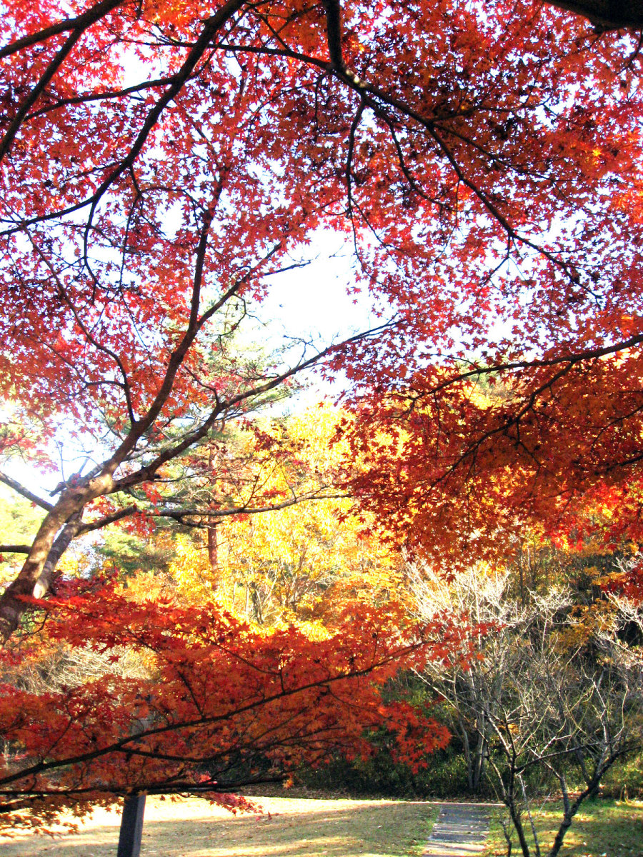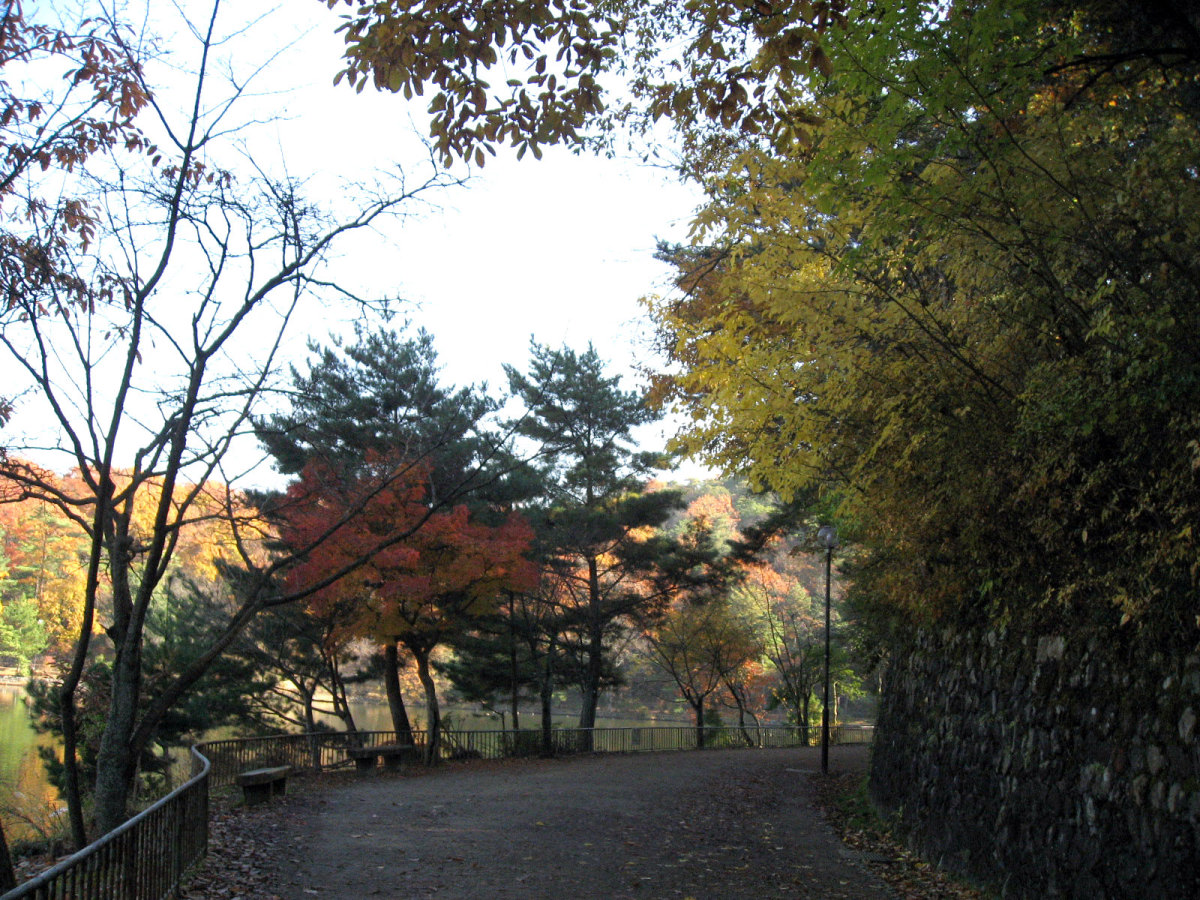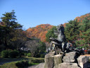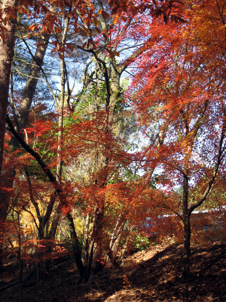 国際会館,中庭でも紅葉が燃えていました。 紅葉は,やはり美しく感じます・・・そして,これから寒くなっていくなぁ・・っていう想いと共に・・。 そして,2日目・・一番,冬晴れだった日・・・総会とかを少し抜け出して,周囲の宝ヶ池を散策しました。 冬枯れの公園も素敵です。 宝ヶ池周囲を,文字通り「紅葉狩り」で・・・色づく木々を狩って行く感じでした・・・。 真紅の紅葉です・・・。 一点の鮮やかさです。 水辺には水鳥や白鳥や・・・。動画です。 グアダラハラ市(where?)との姉妹都市記念の像もあります。 そこから少しずつ,山の頂の方へ向かいました。 どんどん,奥へ!! 頂付近に来ました。叡山も,少し近付いた印象です。 そして,山裾模様も,美しく・・・ 降りていくのは・・けものみち・・・いきなり,下まで落ち葉を踏み分けて辿り着きました。 まだまだ,丁度,宝ヶ池の周りを,反時計方向で散策です。 それぞれの水面に,山肌に,木々に・・・別々の表情が宿っています。 中ほどには,猫も・・・ 木々は唯,自らの営みを尽くしているだけだろうに,こんなにも美しい それはまた,水鳥も,思いのままに羽を広げます。 山間を東へ抜け出して・・・また,青空,冬晴れの空に叡山が,浮かんでいます。 地下鉄駅に続く広場があって----冬の晴れ間のまどろむ時間・・結構,暖かな陽光でした。 ここでも,燃える晩秋です。 さて,午後のセッションに参加して,勉強してきましょう!! |