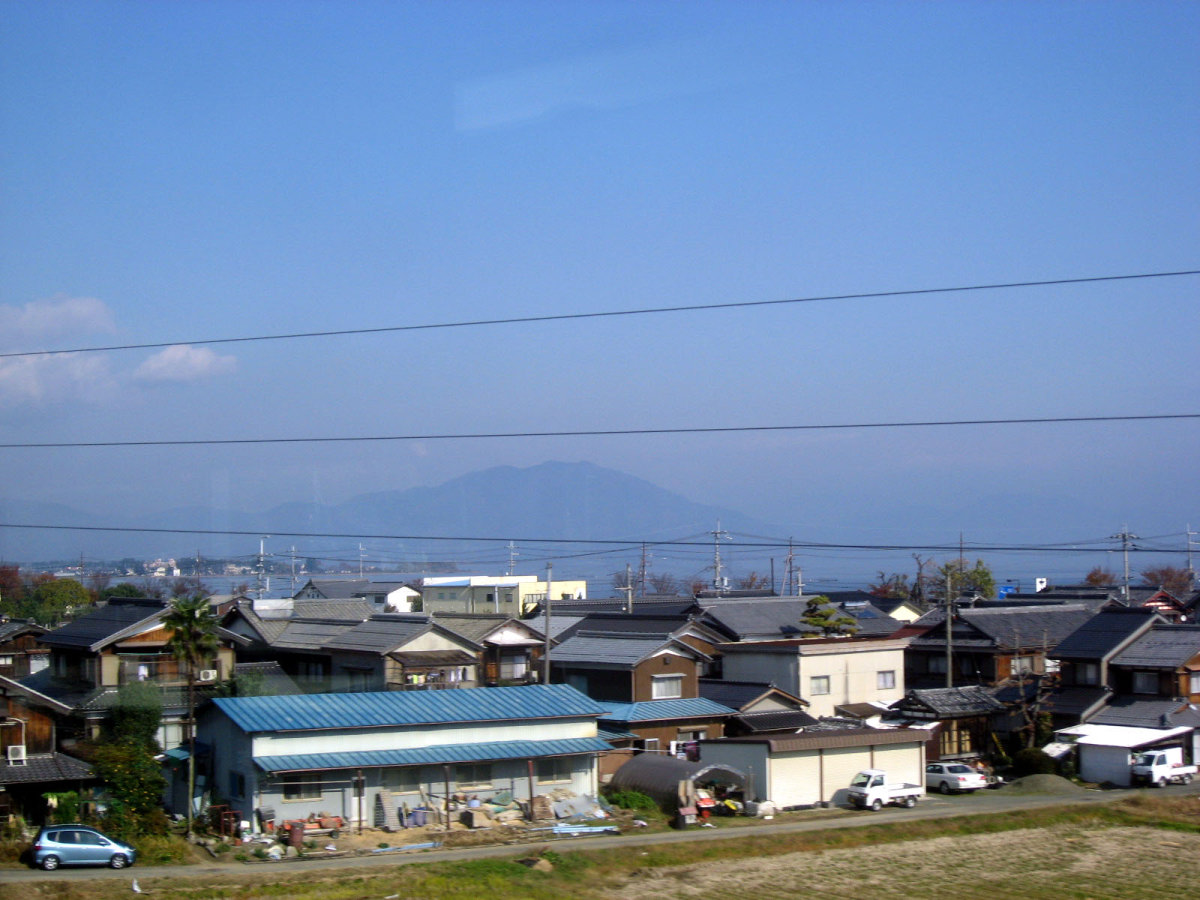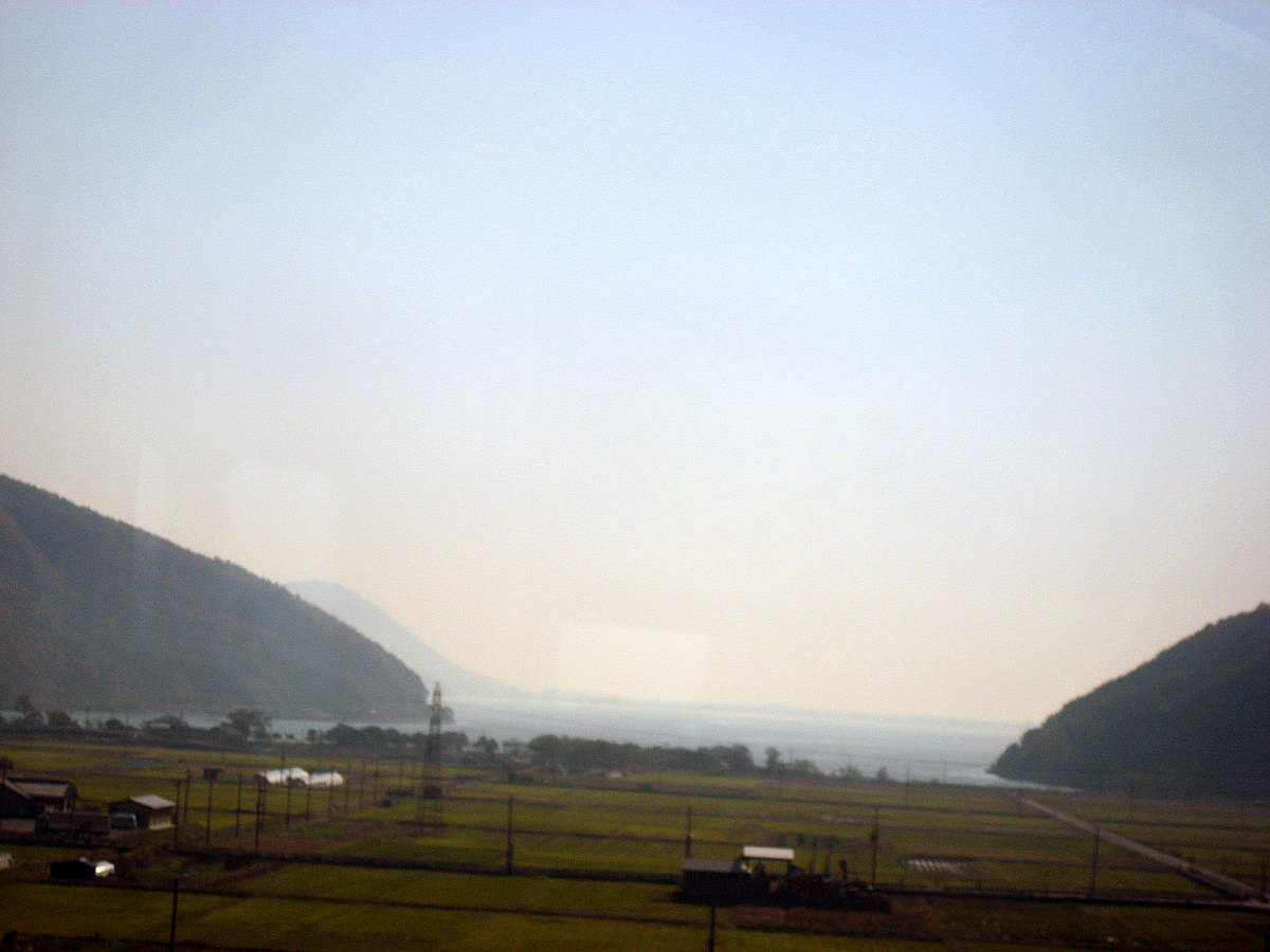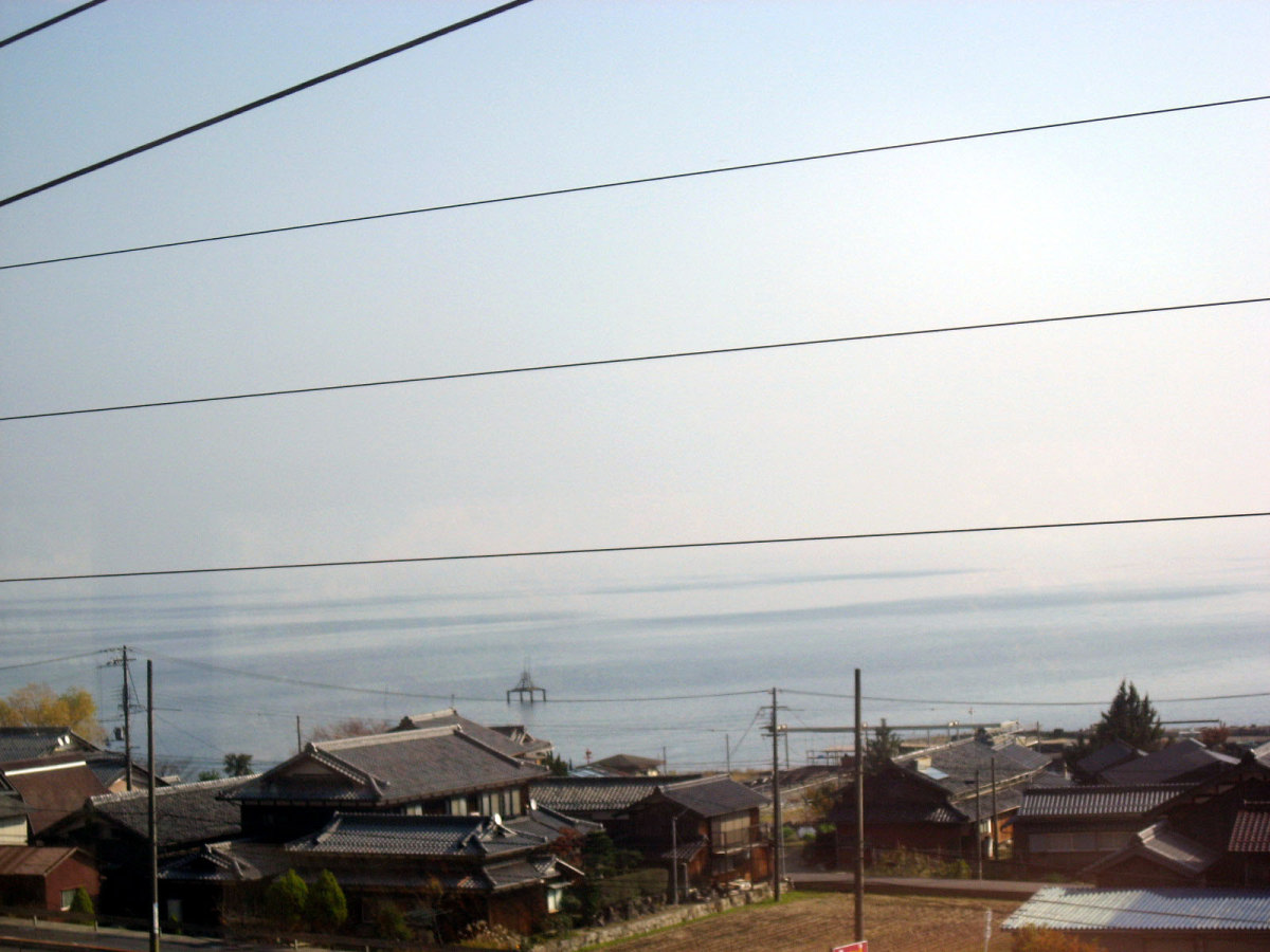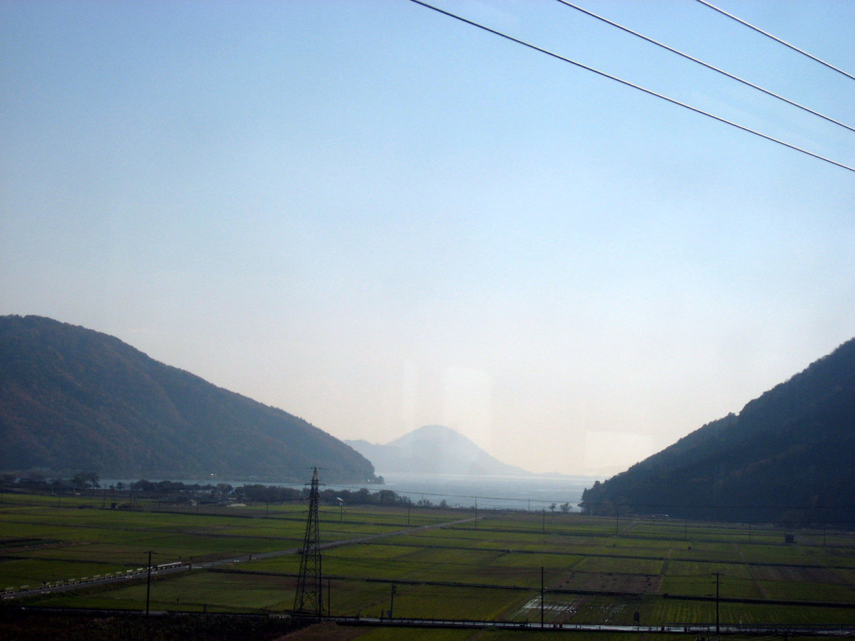 近江塩津で,湖西線と北陸本線が一緒になります。奥琵琶湖が見えます。