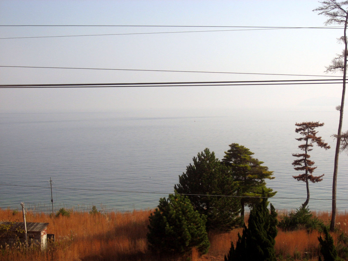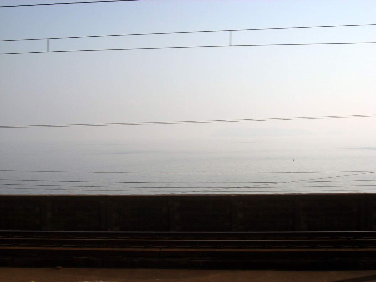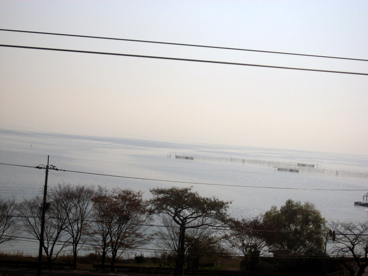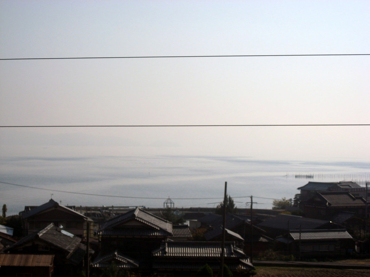 近江塩津で,湖西線と北陸本線が一緒になります。奥琵琶湖が見えます。