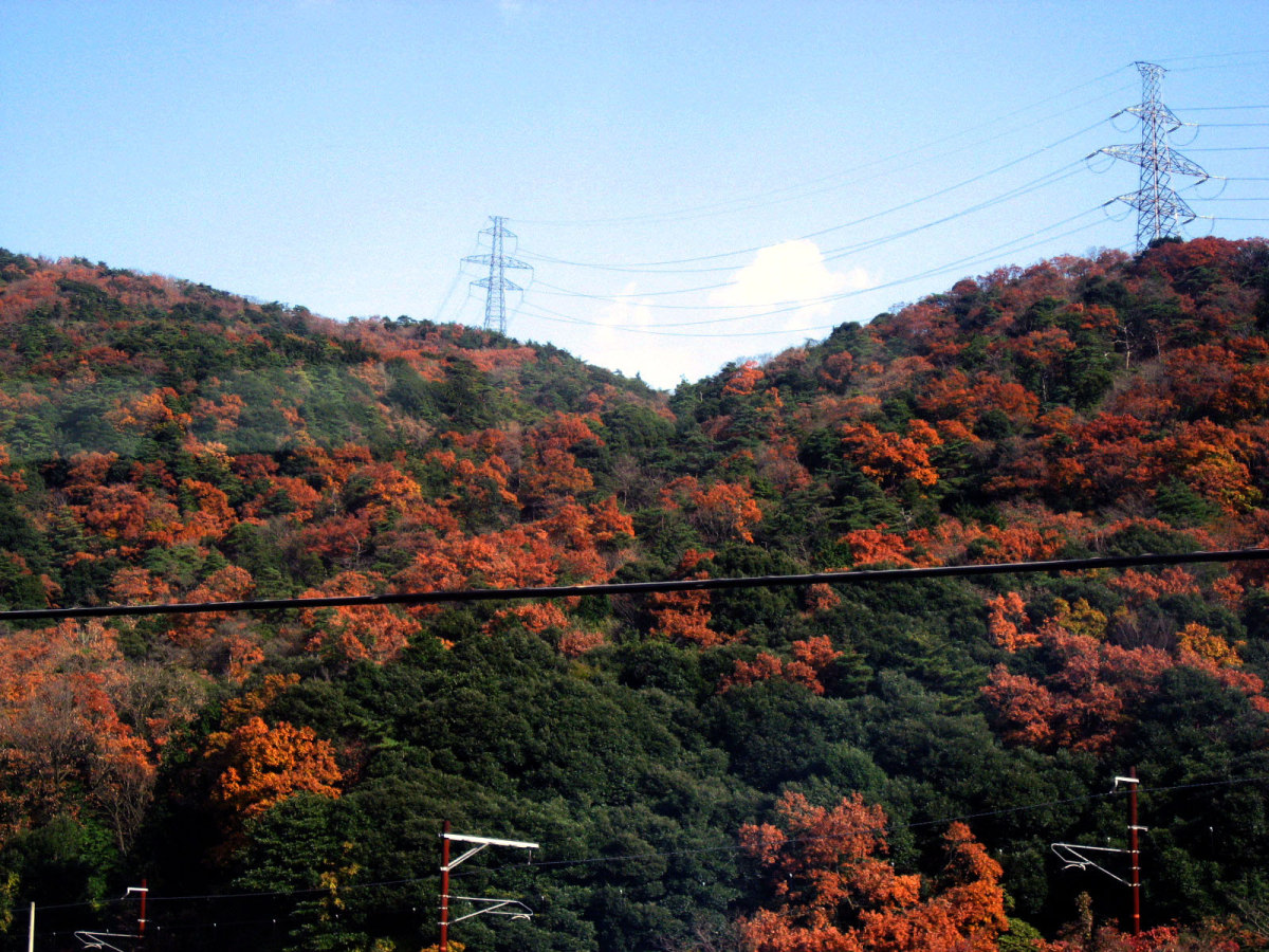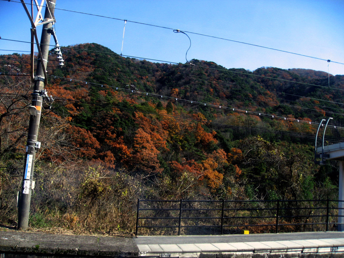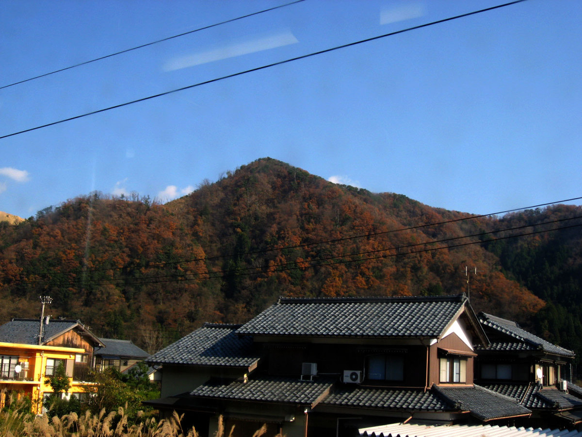 そこから野坂山地を超えて(北陸トンネルほどではないけど,長い隧道です。)そして,敦賀まで・・・晩秋の里山,それに山肌は綾錦です。