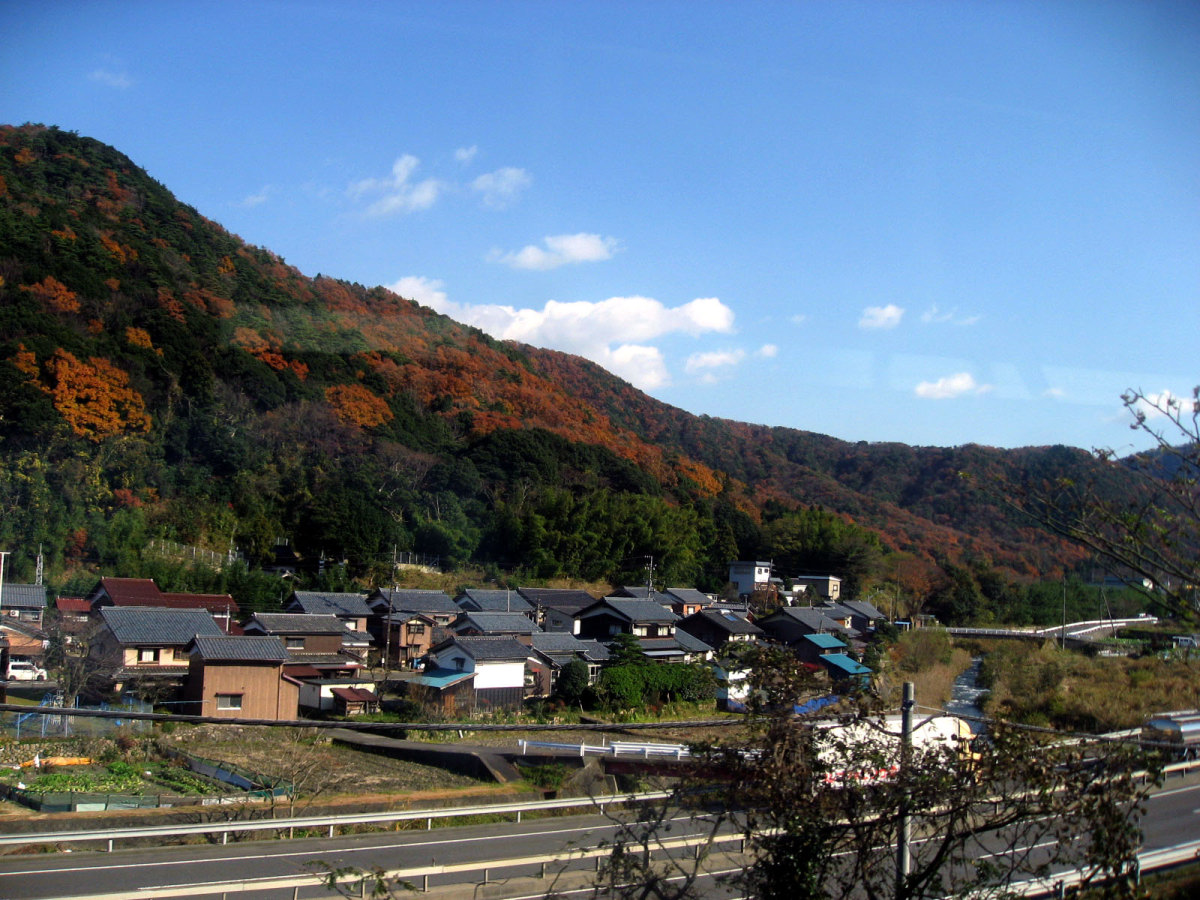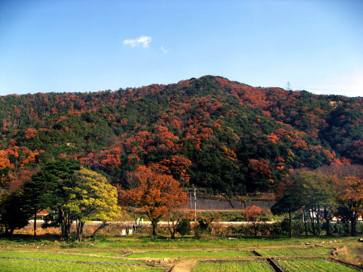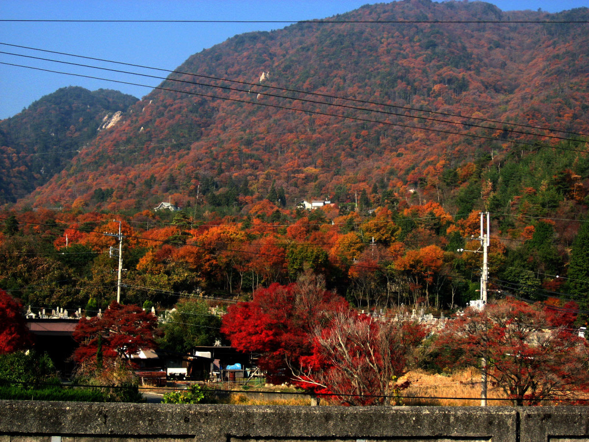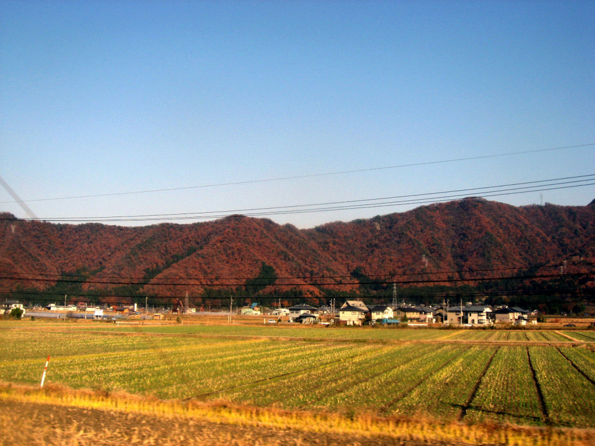 そこから野坂山地を超えて(北陸トンネルほどではないけど,長い隧道です。)そして,敦賀まで・・・晩秋の里山,それに山肌は綾錦です。