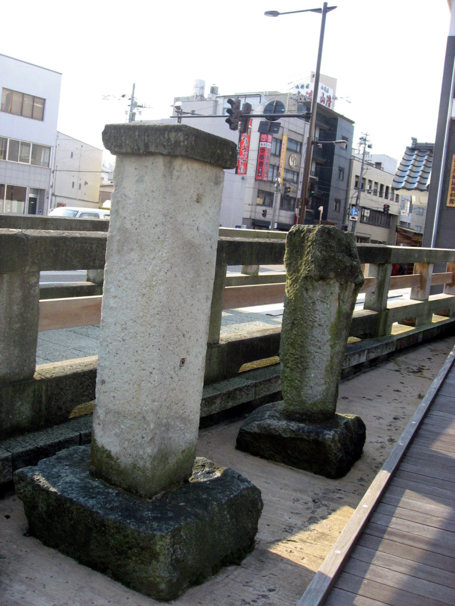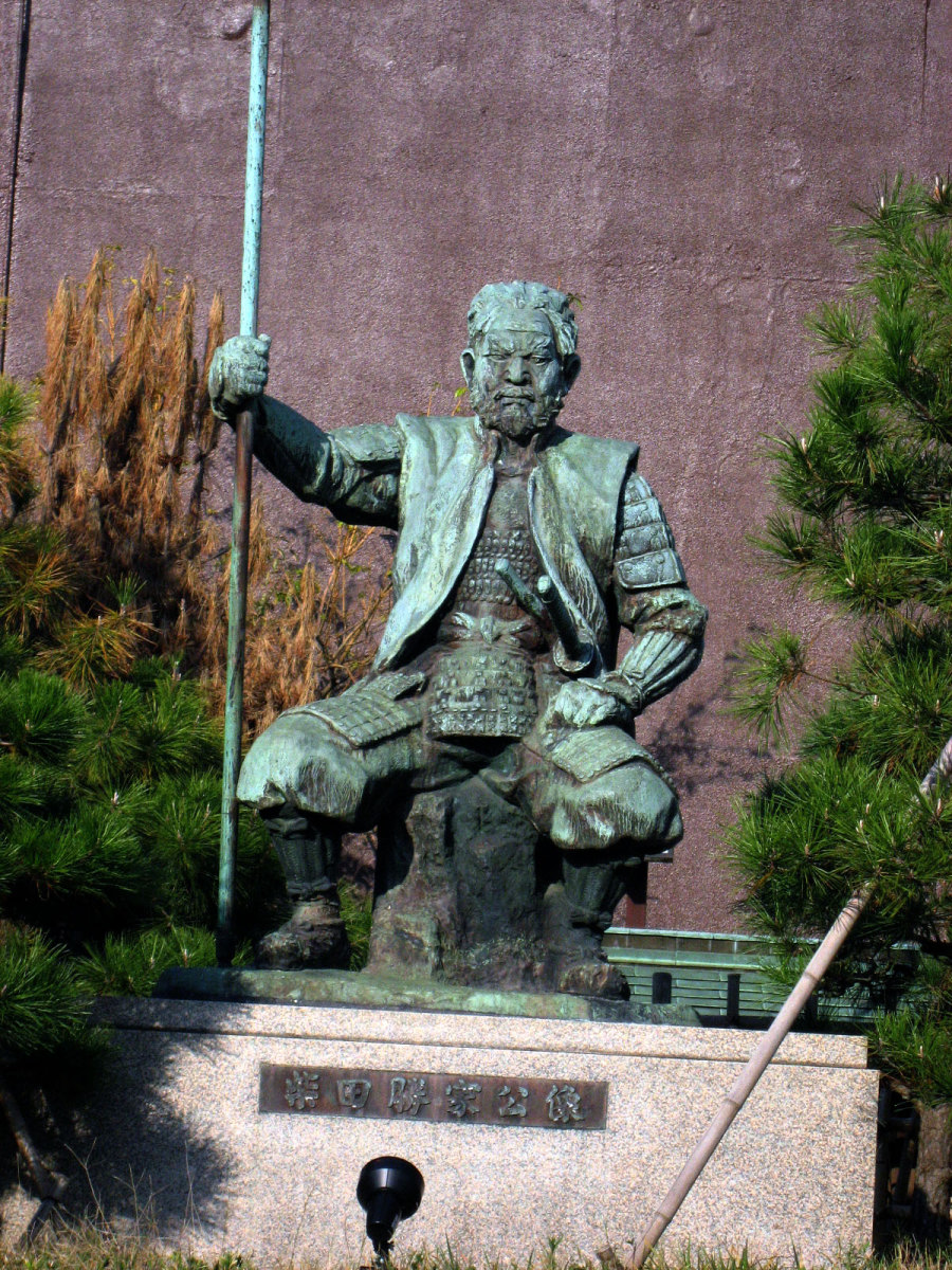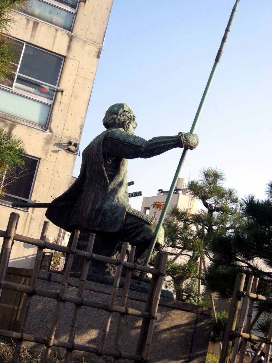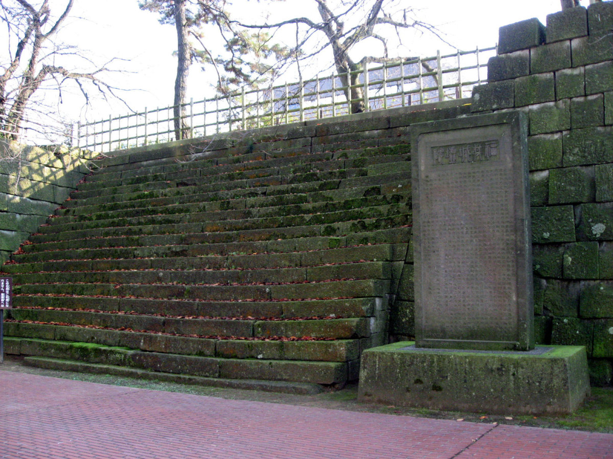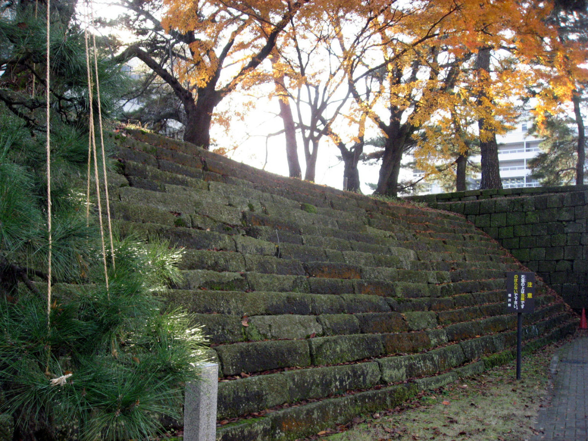 福井駅から500m南西にある柴田神社は、柴田勝家が4年の歳月をかけて築城した北の庄城の天守閣があった場所。天下の名城の誉れ高い安土城でさえ7層の天守閣であったのに対し、北の庄城はそれをしのぐ9層という日本最大級の天守閣を誇っていた。築城からわずか8年、秀吉軍に攻められた柴田勝家は自ら城に火を放ち、愛妻・お市の方や一族とともに壮絶な最期を遂げたことは有名。完全に消失したので詳細はわかっていないが、現在も発掘調査が続けられている。城の数少ない遺物、石垣や鬼瓦やなどが保存されている。勝家とお市の像もある。