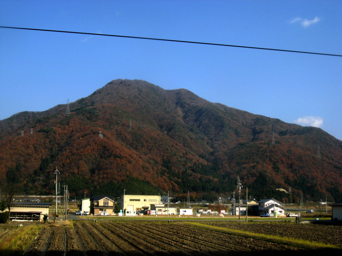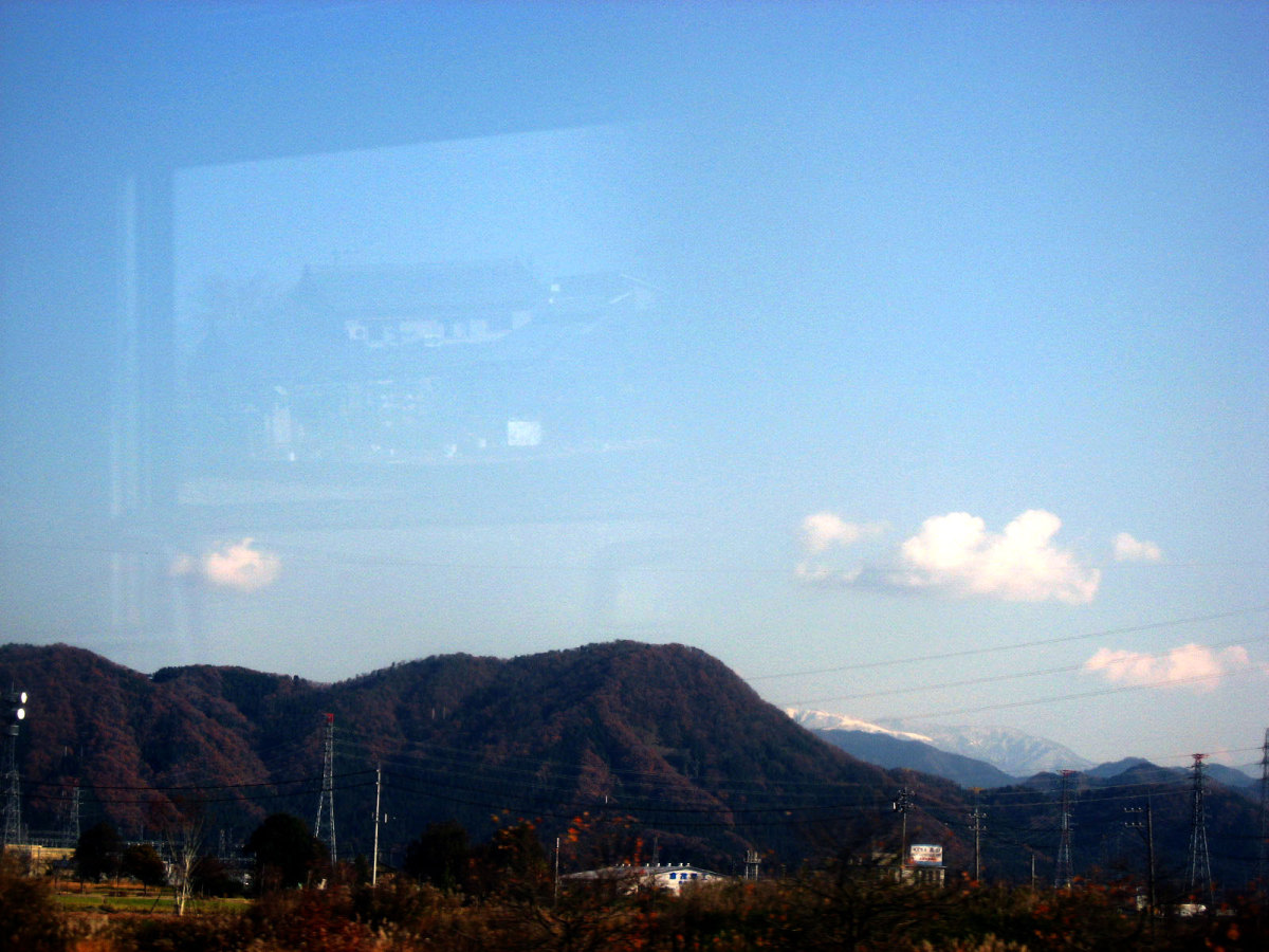 車窓から見え隠れするのは,白山と思いますが,冠雪していますし・・。