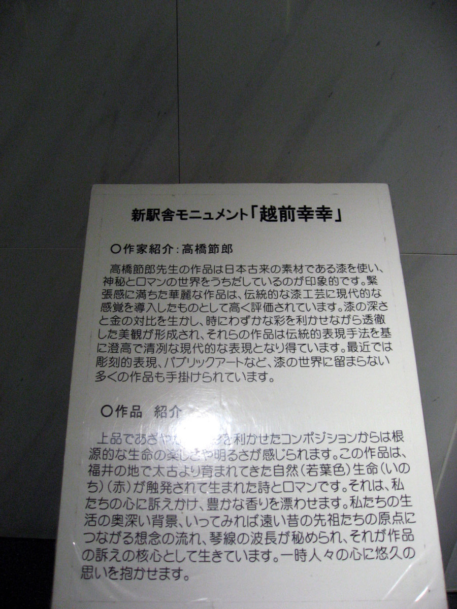 えっと,敦賀って---松本零士とは直接関係ないって思うけど,でも,27体の銀河鉄道やヤマト関連のモニュメントが商店街などにもあるそうです。
