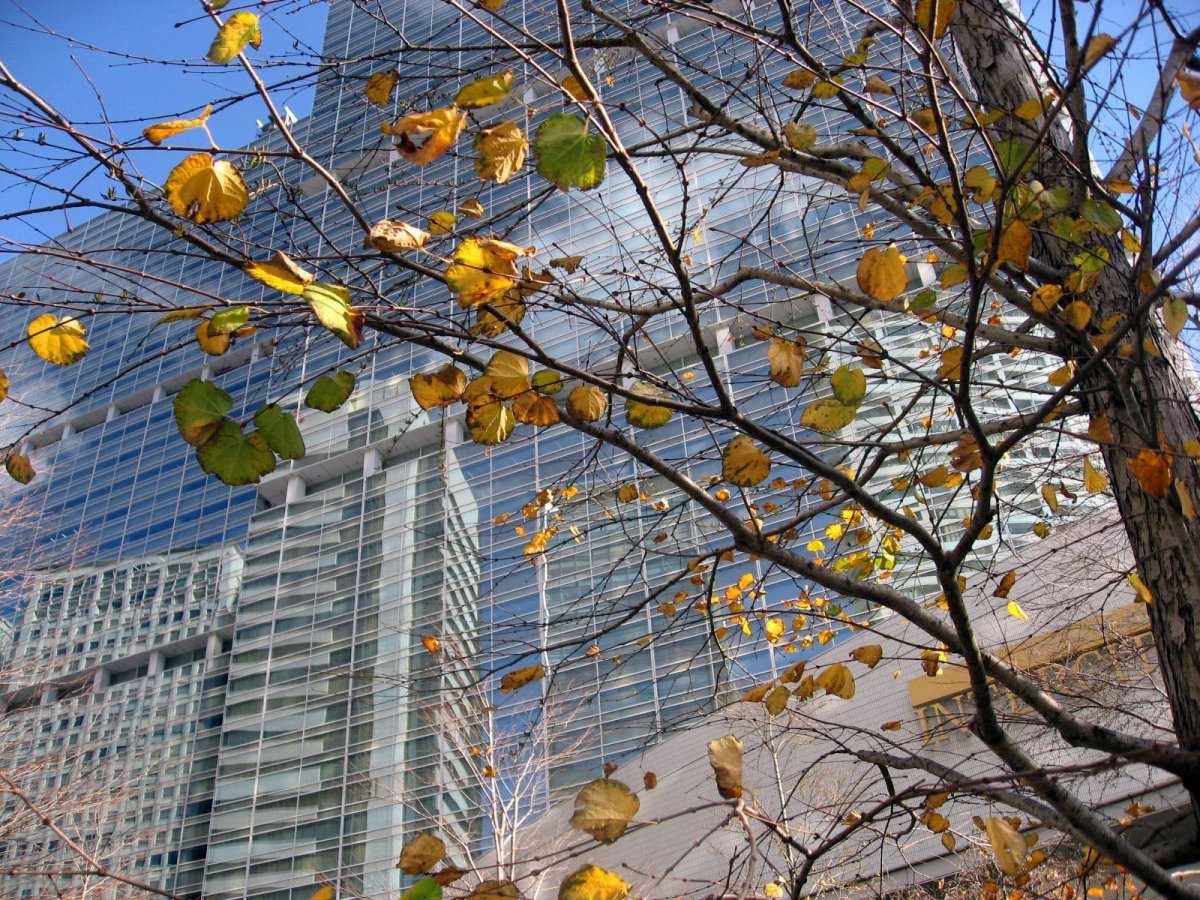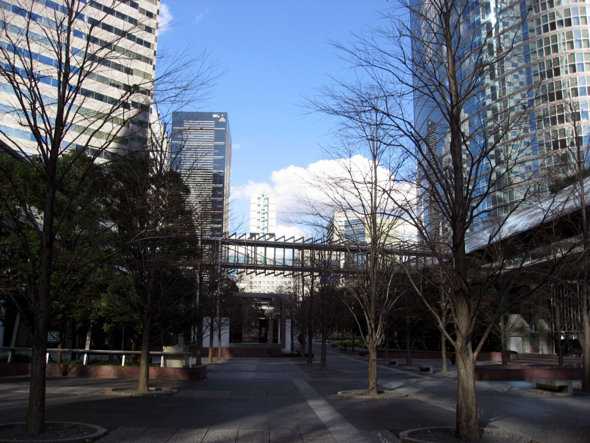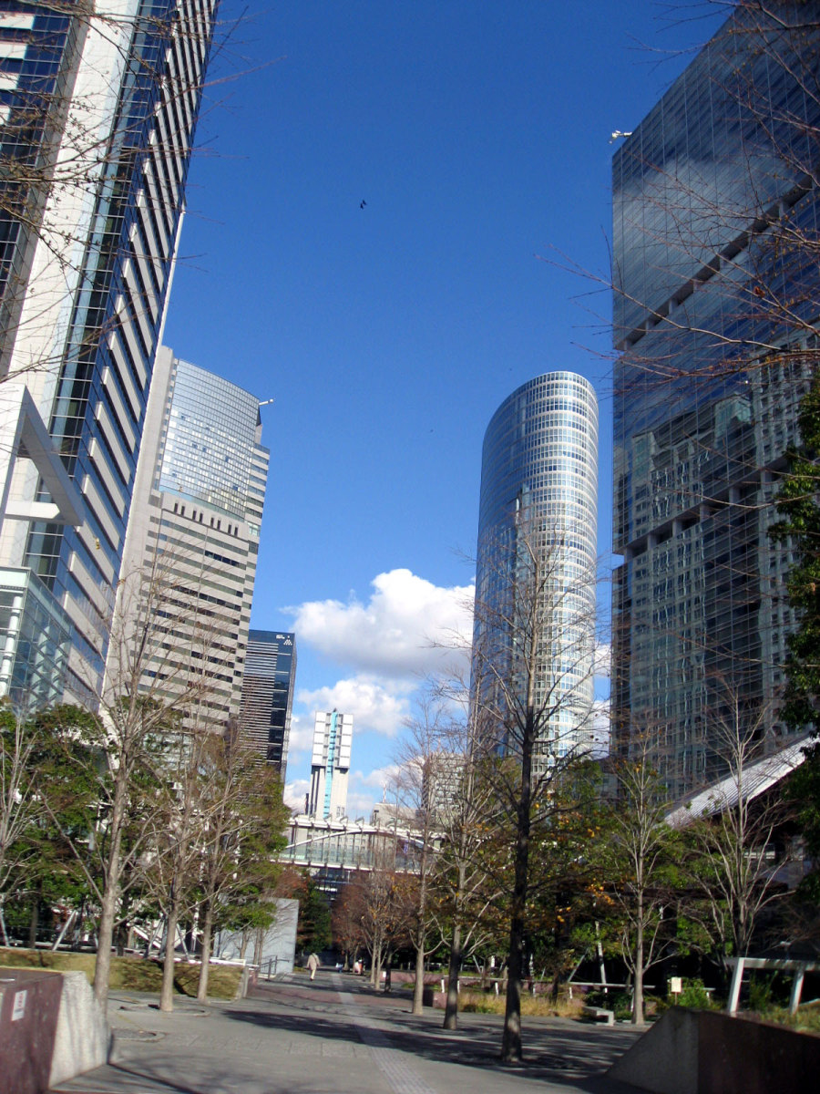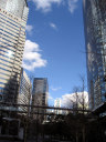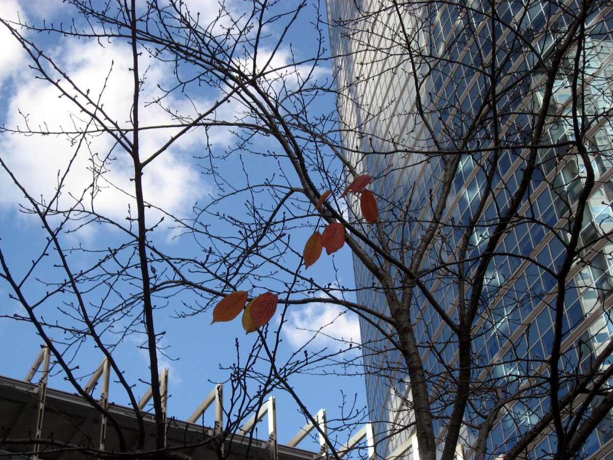 ビルの狭間から冬晴れの青空が・・覗きます。
