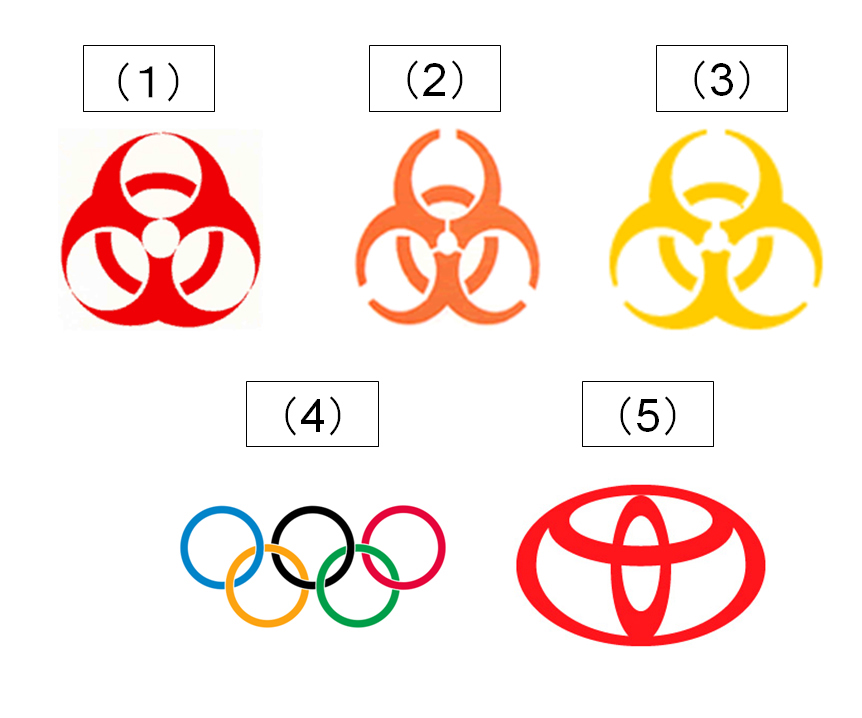 5 泥状の感染性廃棄物のマークはどれか。図中の番号を選べ。