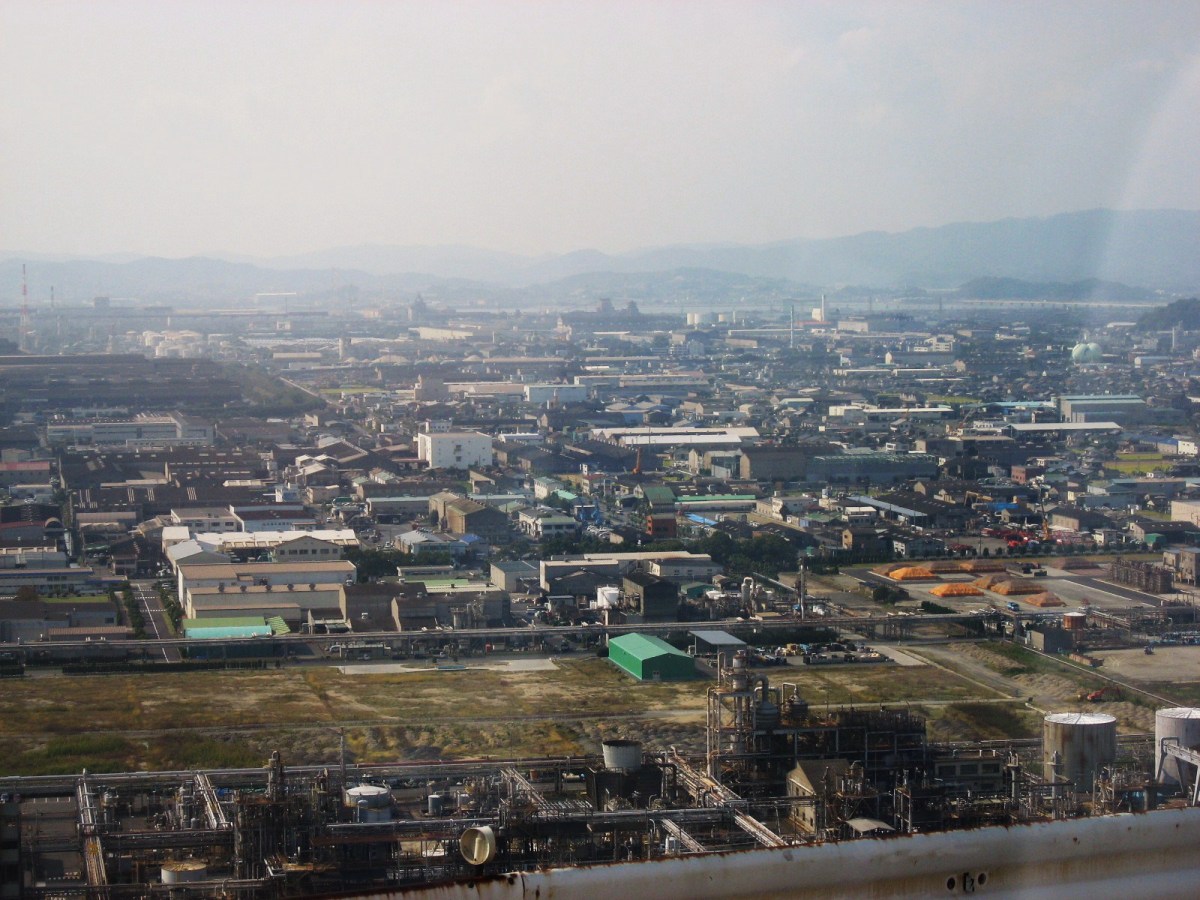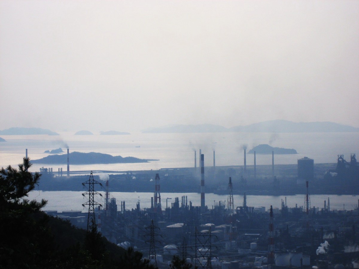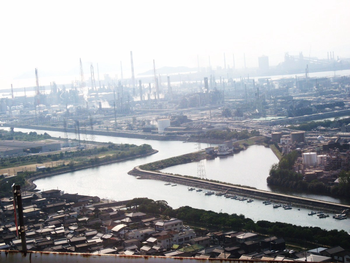 スカイランの途中から,結構,水島の街並みが展望できますが・・・やはり,工場が多い,