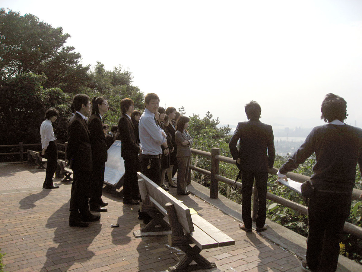 展望台で,もう一度,水島市街地を眺めながら,岸本さんと,難波田さんからの説明を聞きました。