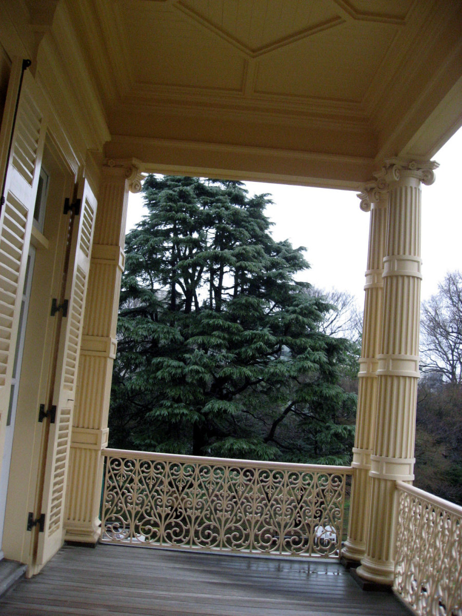 2階のバルコニーからは,芝生庭園や,撞球室(地下道で繋がっているそうな・・)も見えます。