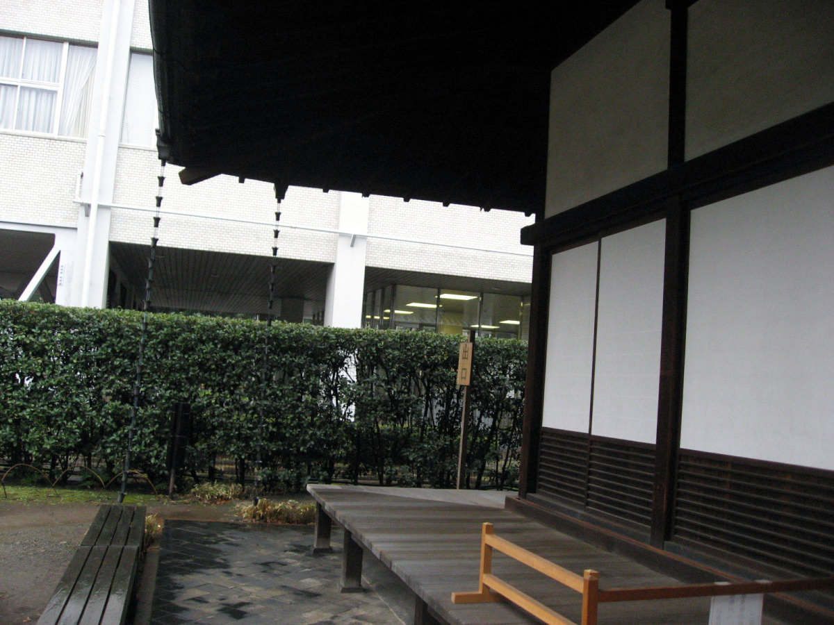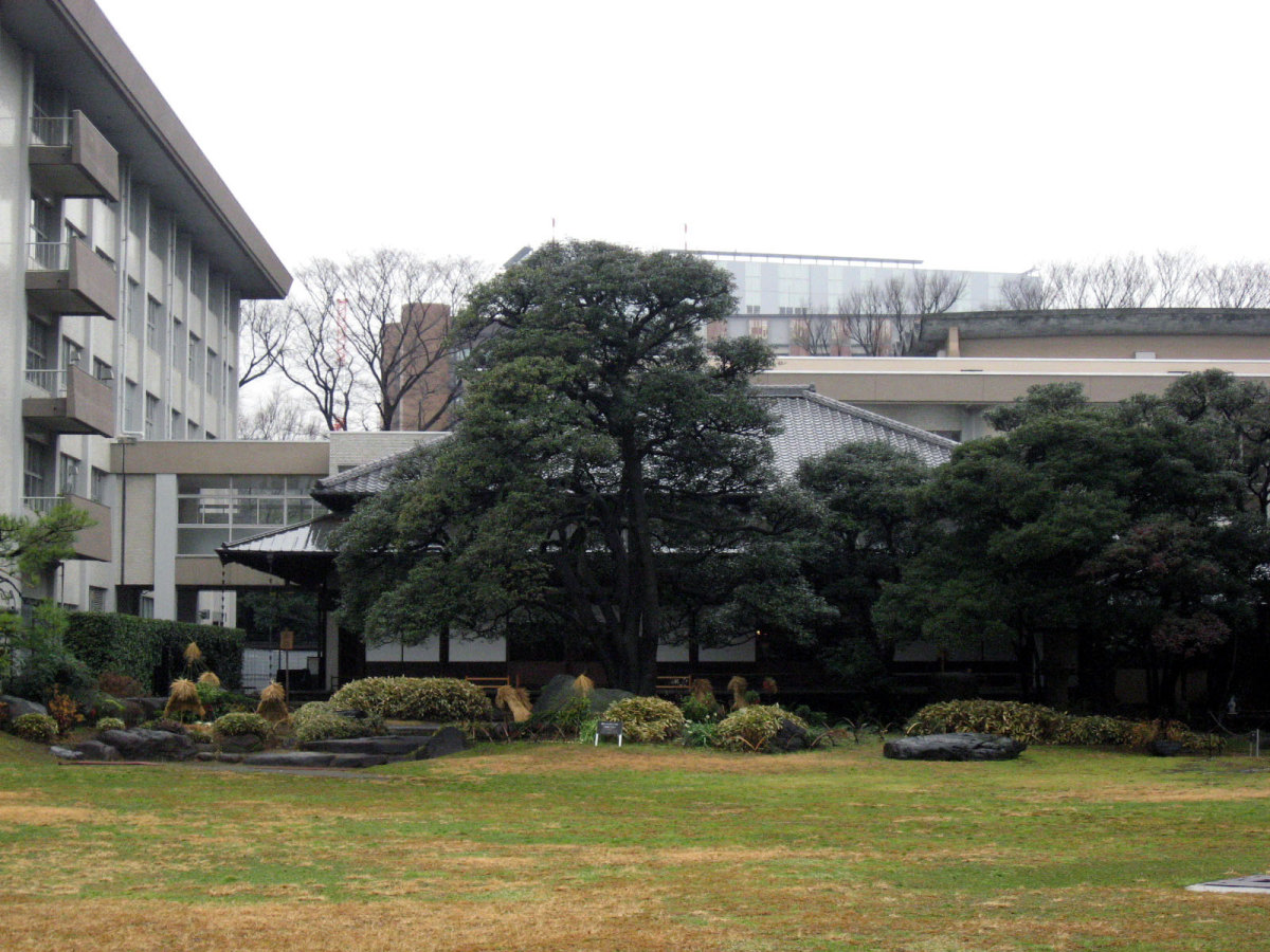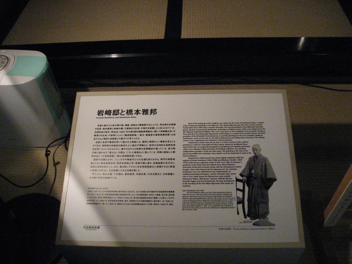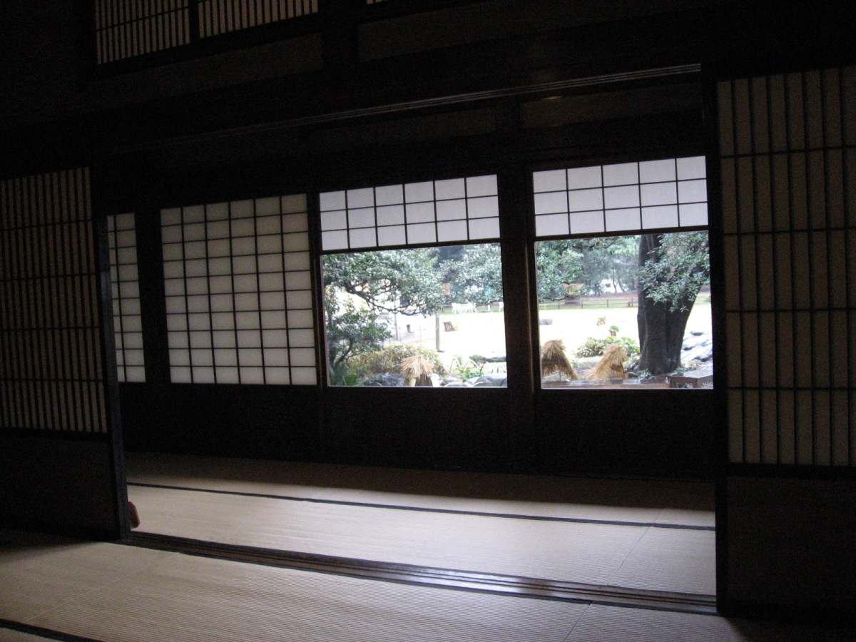 ちなみおに和館は【洋館と同時期に竣工した、書院造を基調とした和風建築である。迎賓館としての洋館に対し、生活の場としては和館が使用された。船底天井の渡り廊下で結ばれた和洋の屋敷は、和洋折衷館の初期のスタイルを伝えている。設計は大工棟梁の大河喜十郎と伝えられている。長大で良質な木材がふんだんに用いられている。釘隠しなど各所に岩崎家の家紋である三階菱の意匠が見られる。1969年(昭和44年)に大広間が重要文化財に指定されたが、同時期に和館の大部分が取り壊された。往時は550坪に達する大邸宅であったが、現存するのは大広間と茶室の周辺のみである。】とのことです。