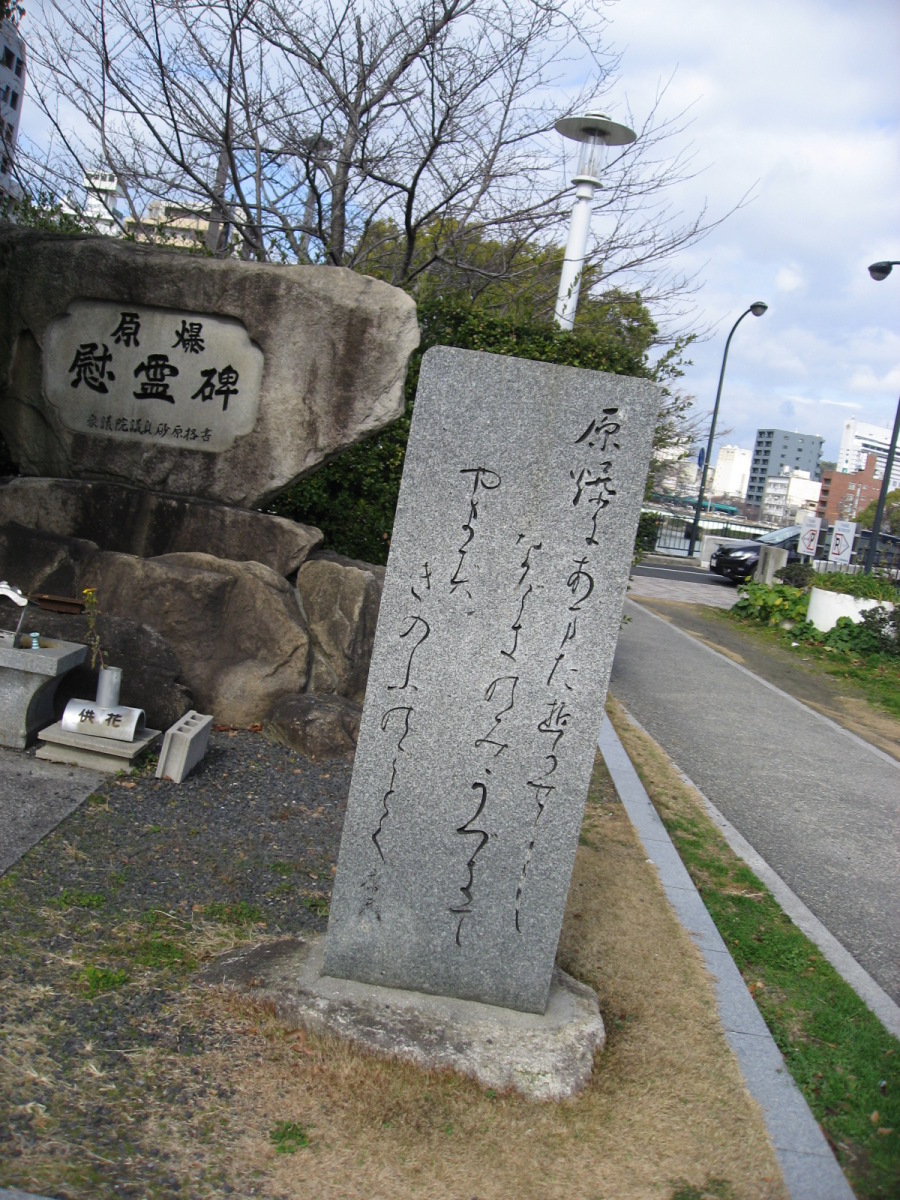 | 広島への道中・・・あるいは,縮景園から広島大学医学部への街の様子です。 尾道から三原に掛けて・・・尾道水道から因島と本州との間の海沿いを走ります。 雲が・・・なんだか,嵐の前後の様な・・・・ しまなみ街道の因島大橋も遠くに見えます。 まずは,尾道と向島の間に・・・尾道大橋です・・。吉和漁港です。 そして,海沿い・・・。 こんな感じの車窓です。 縮景園の近くに幟町中学校には,像と・・折り鶴の碑がありました。 広島は結構,川の町です。 栄橋から・・・猿候皮と京橋川の分岐を眺めます・・。 川沿いにも緑があります。 土手のところに,秀玉稲荷神社です。 橋が沢山あり・・・原爆記念碑があり・・・平和の鳩が居て・・・。 今回は,原爆資料記念館や,ドームには行きませんでしたが。。。 10年近く前には,長男を連れて,皆で来たこともあります。 原爆の痕跡を見るにつけ,今,世界で起こっている戦争について・・特に,人の生命に縁のある仕事をしていると・・・いちどきに多くの人の命を奪うこと自体に・・・やはり頷けませんね! 平和への祈りは,欠かさないようにしないと・・・。 |