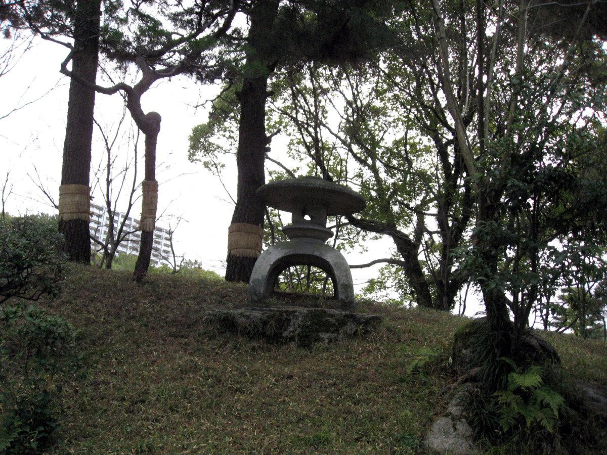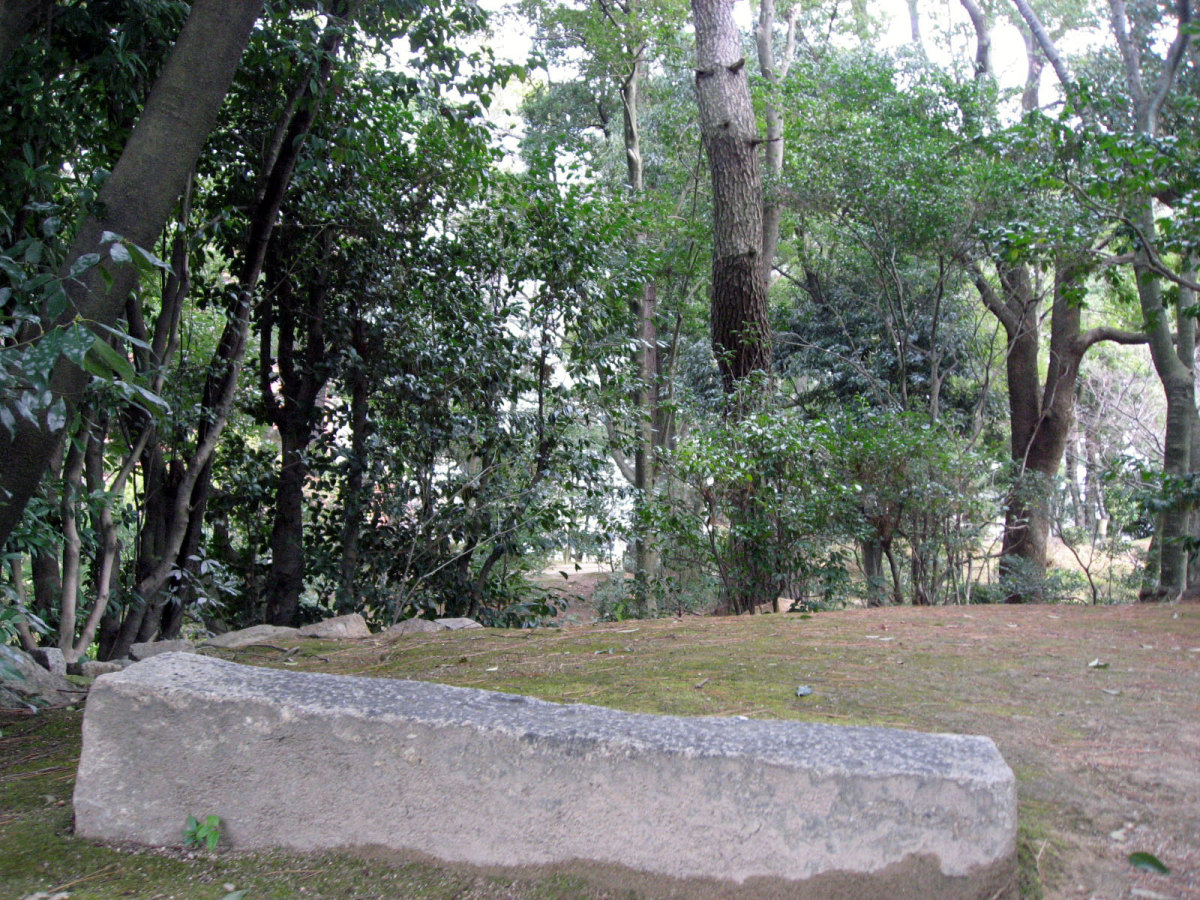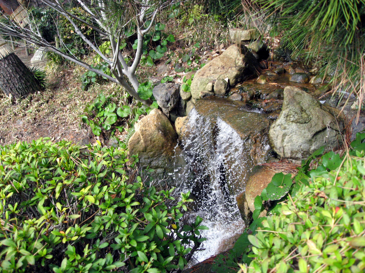 名月亭に向かう前に・・・少し,小川が設えてあり,石塔のある辺りを迂回しましょう。