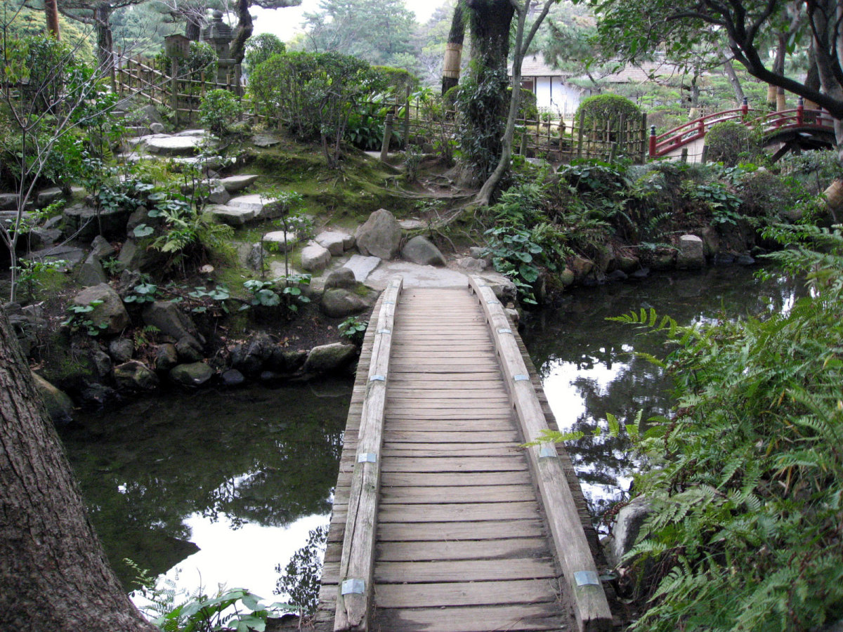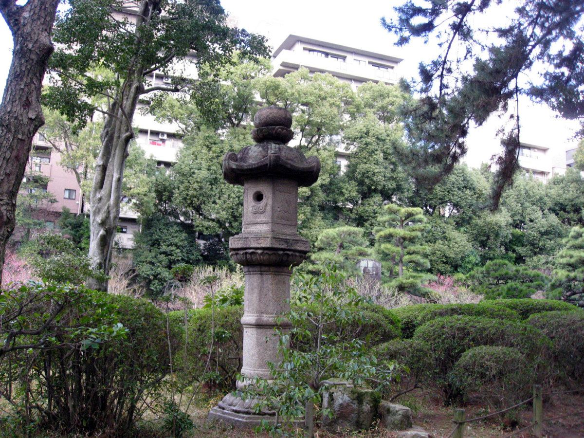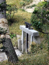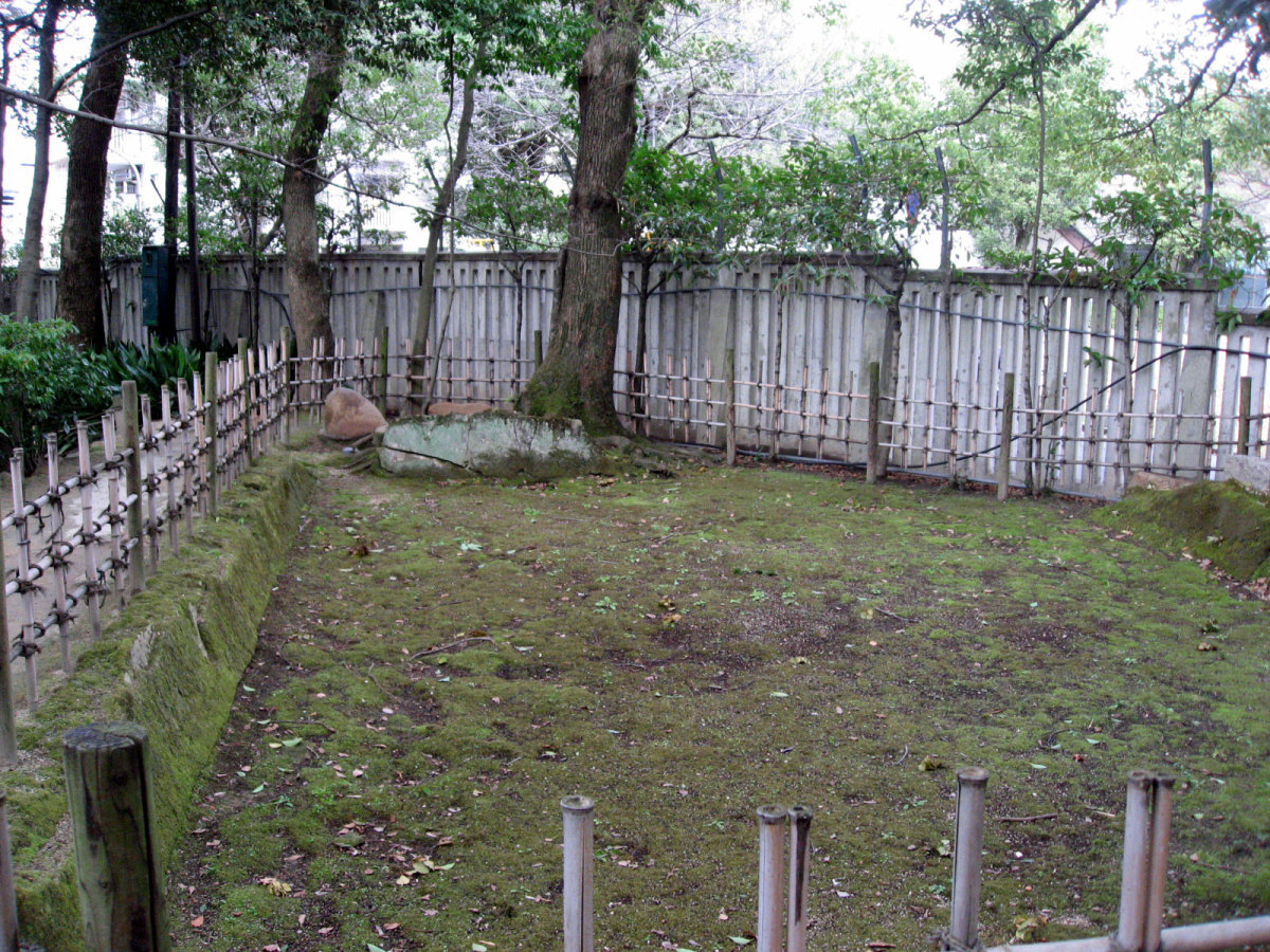 名月亭に向かう前に・・・少し,小川が設えてあり,石塔のある辺りを迂回しましょう。