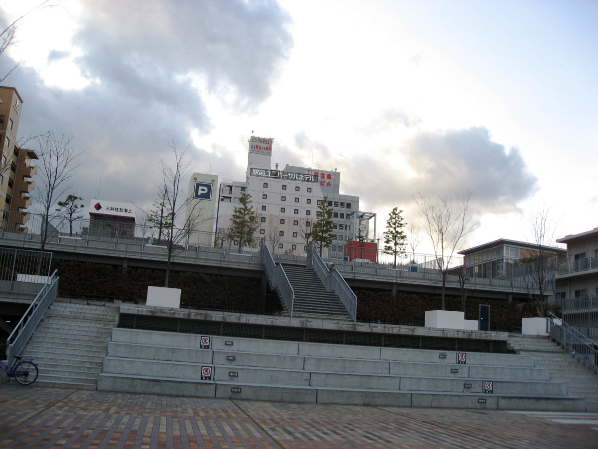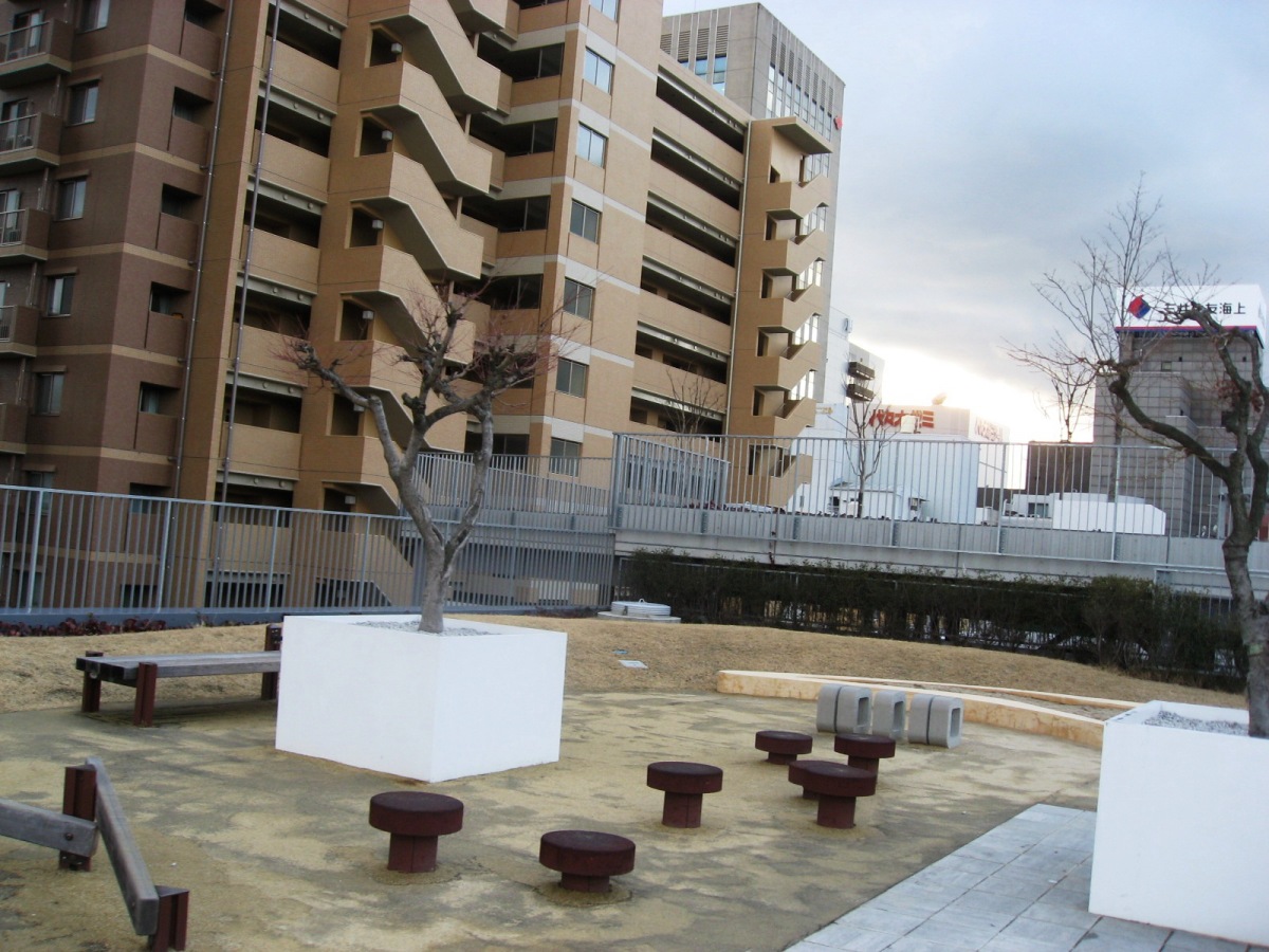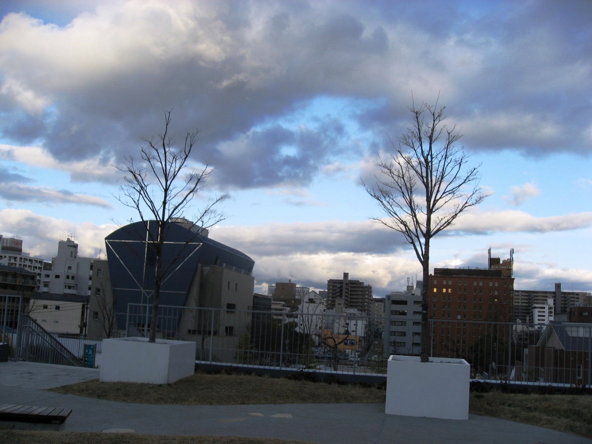 駐車場の上を階段状の公園にしています・・なかなか・・。