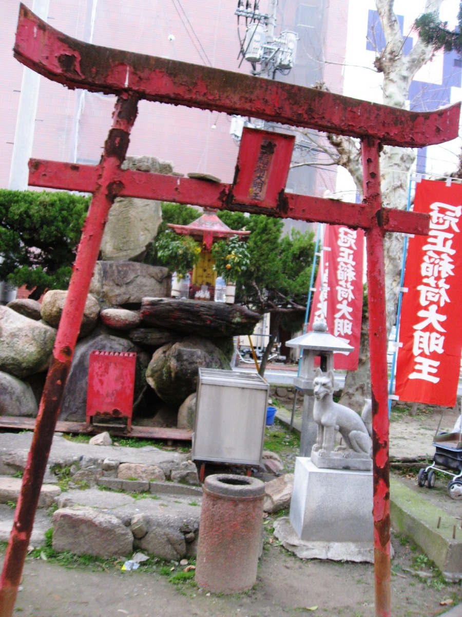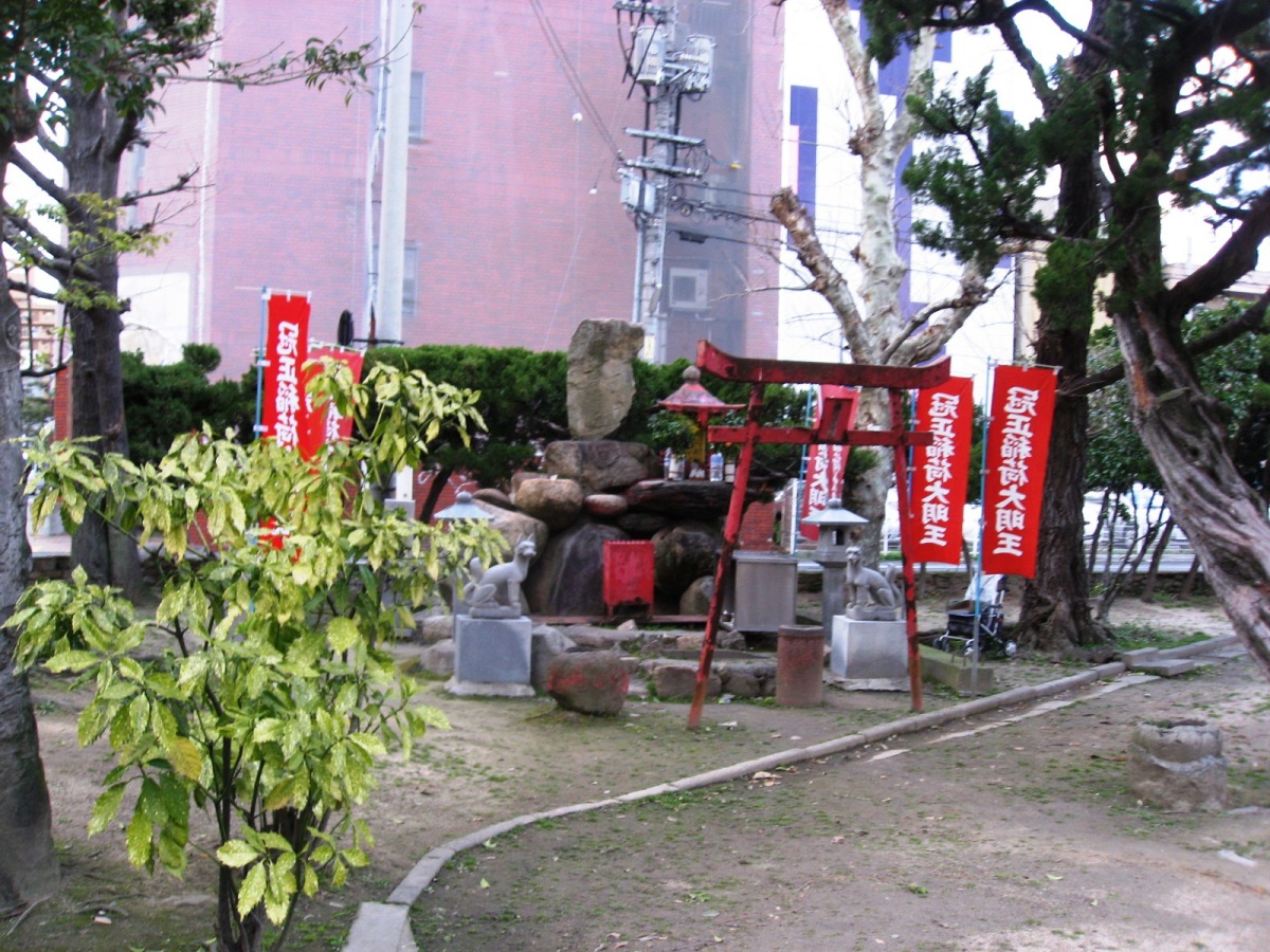 下田町公園には・・・お稲荷さんが・・・鳥居は,錆付いていますが・・。