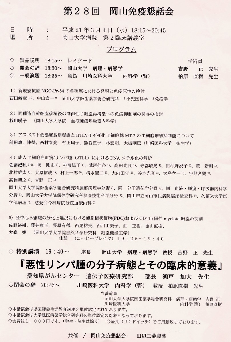 例年ですが,岡山免疫懇話会・・・昨年は西村先生が発表されましたが,今年は,前田先生です。