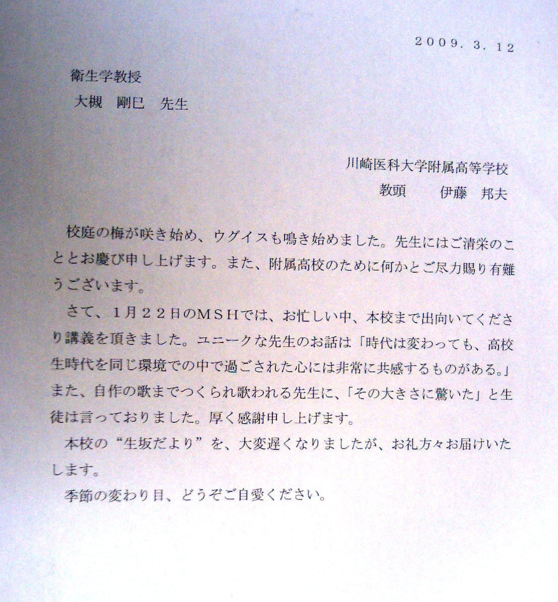 で,その関連の記事が「生坂だより」に掲載されていて,僕が高校の頃,生物を教えてくださった,現・・教頭先生でいらっしゃる伊藤邦夫先生から,届きました。