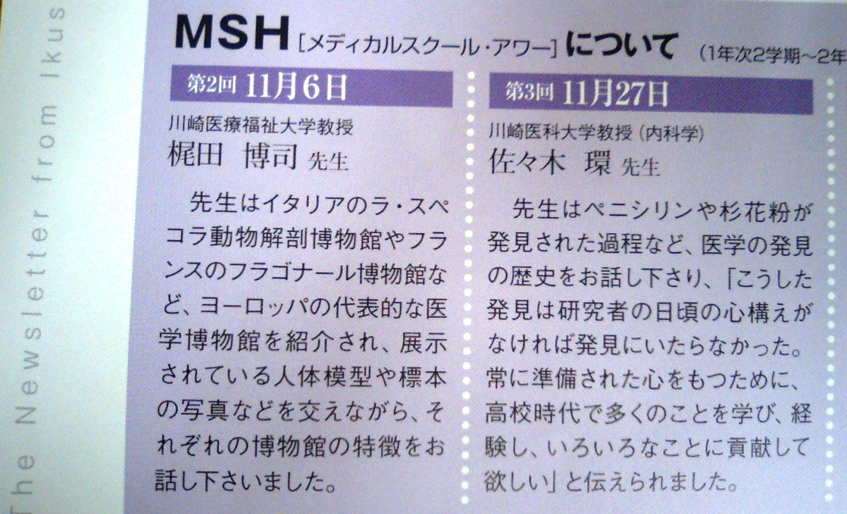 この間,附属高校で Medical School Hour で話をしました。